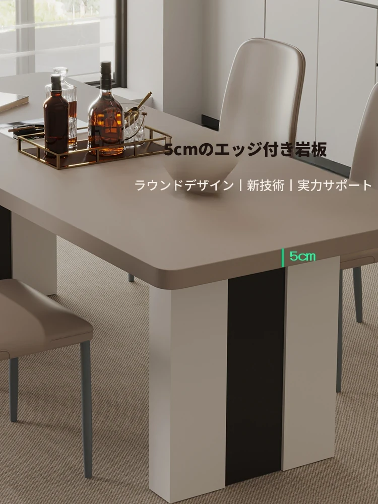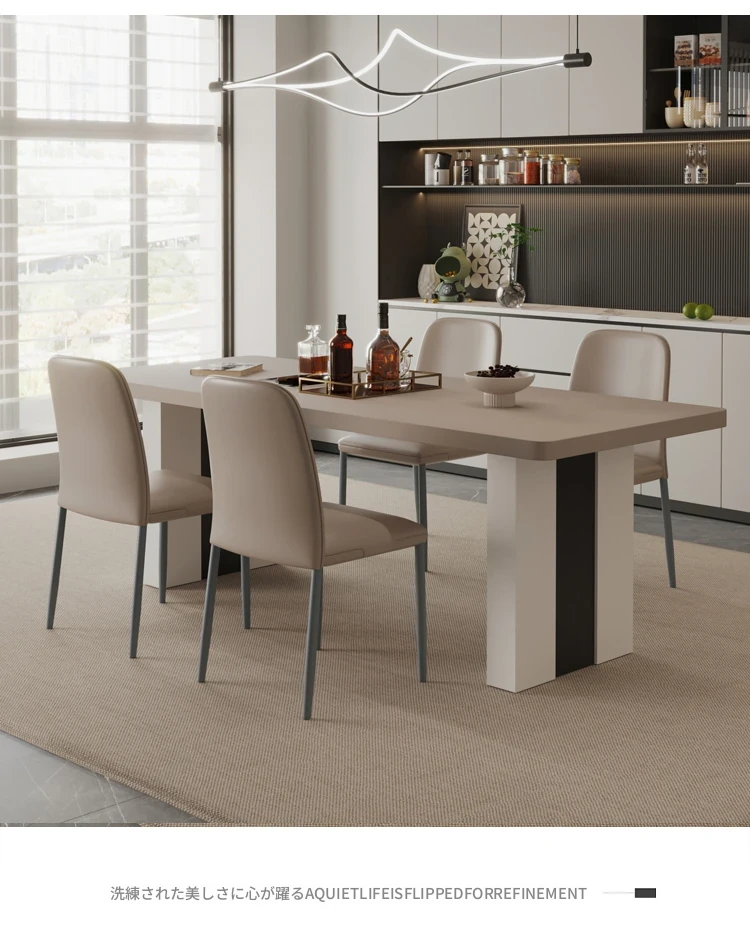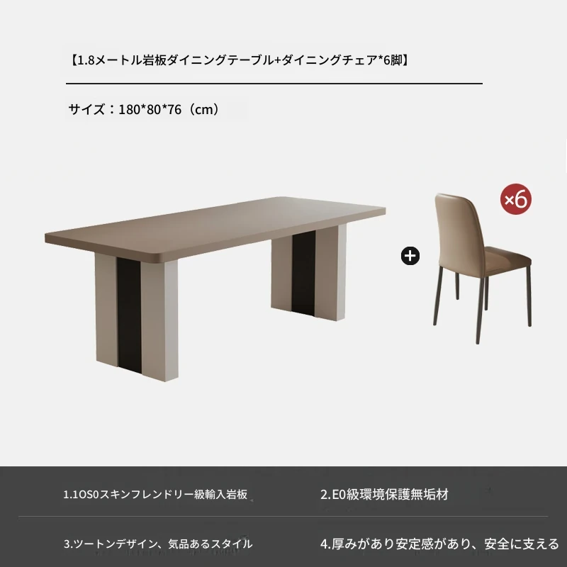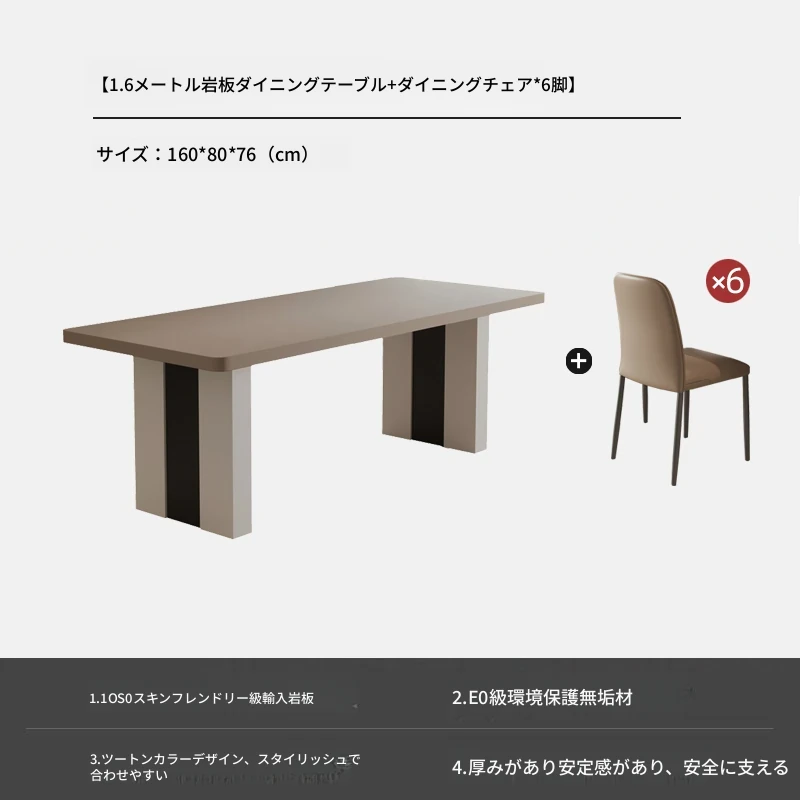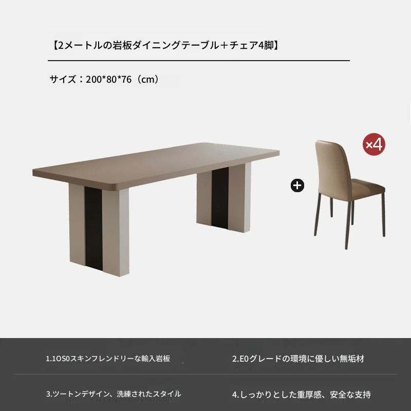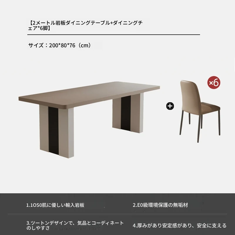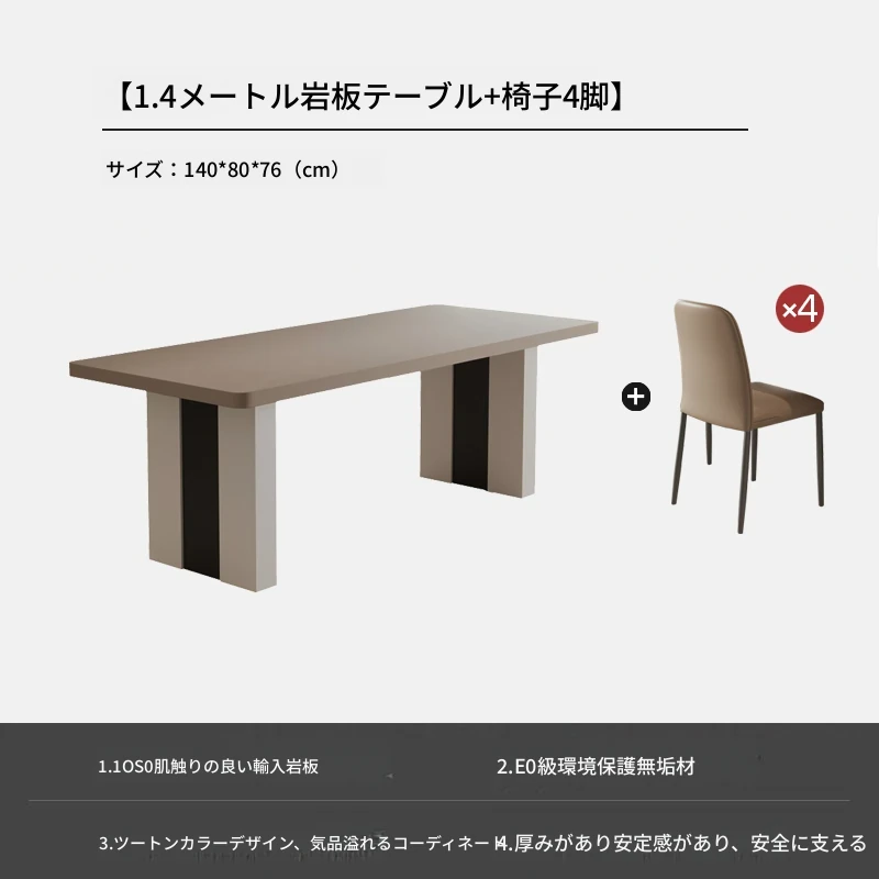 カフェ色のロック板ダイニングテーブル&チェアセット - スタイリッシュな長方形のイタリアンミニマルデザイン、狭いスペースに最適なモダンシンプルテーブル。あなたの家に洗練された雰囲気をプラス!
