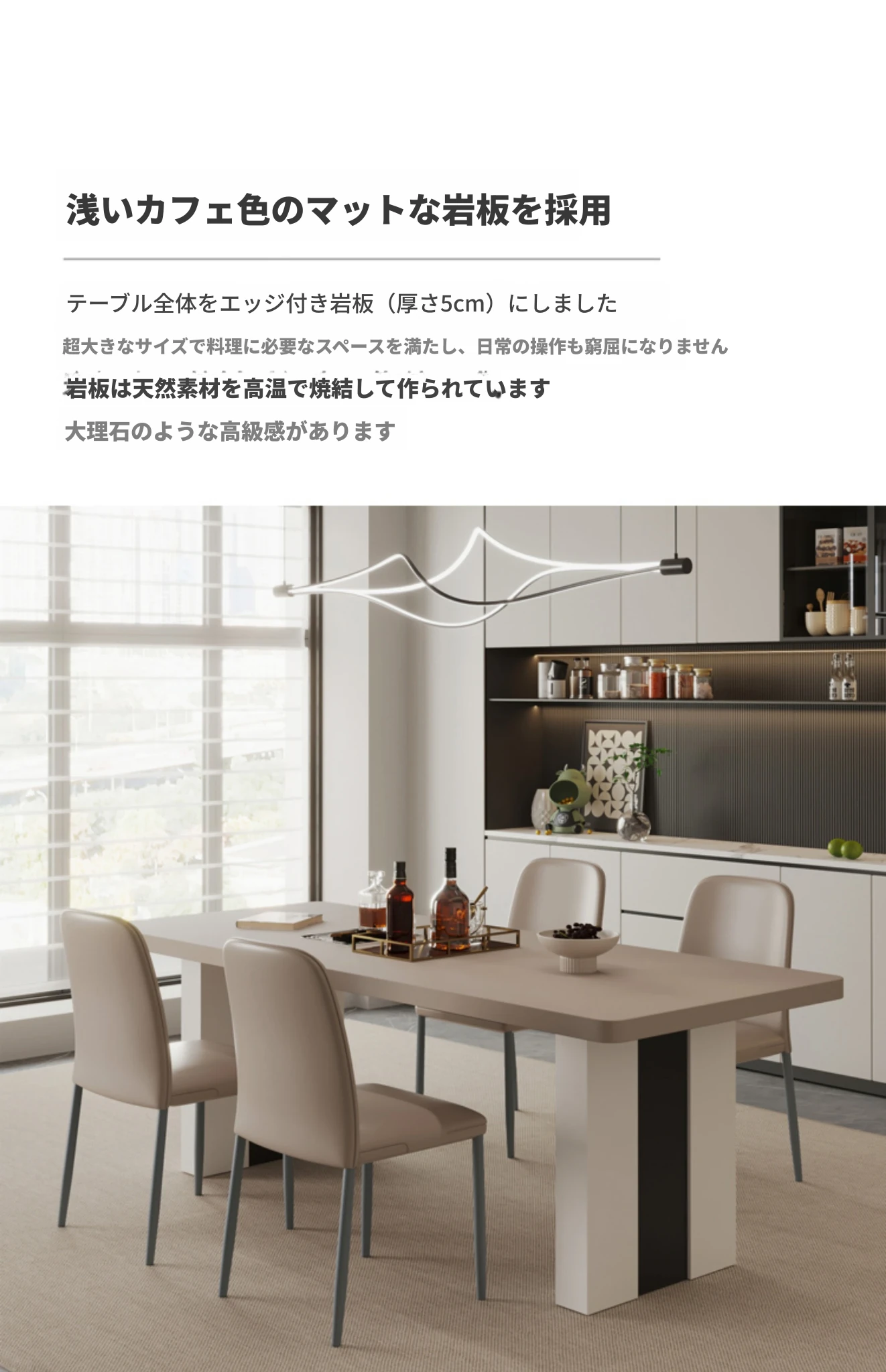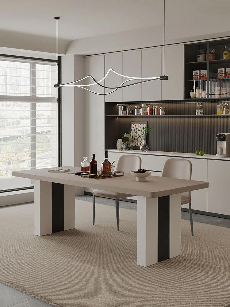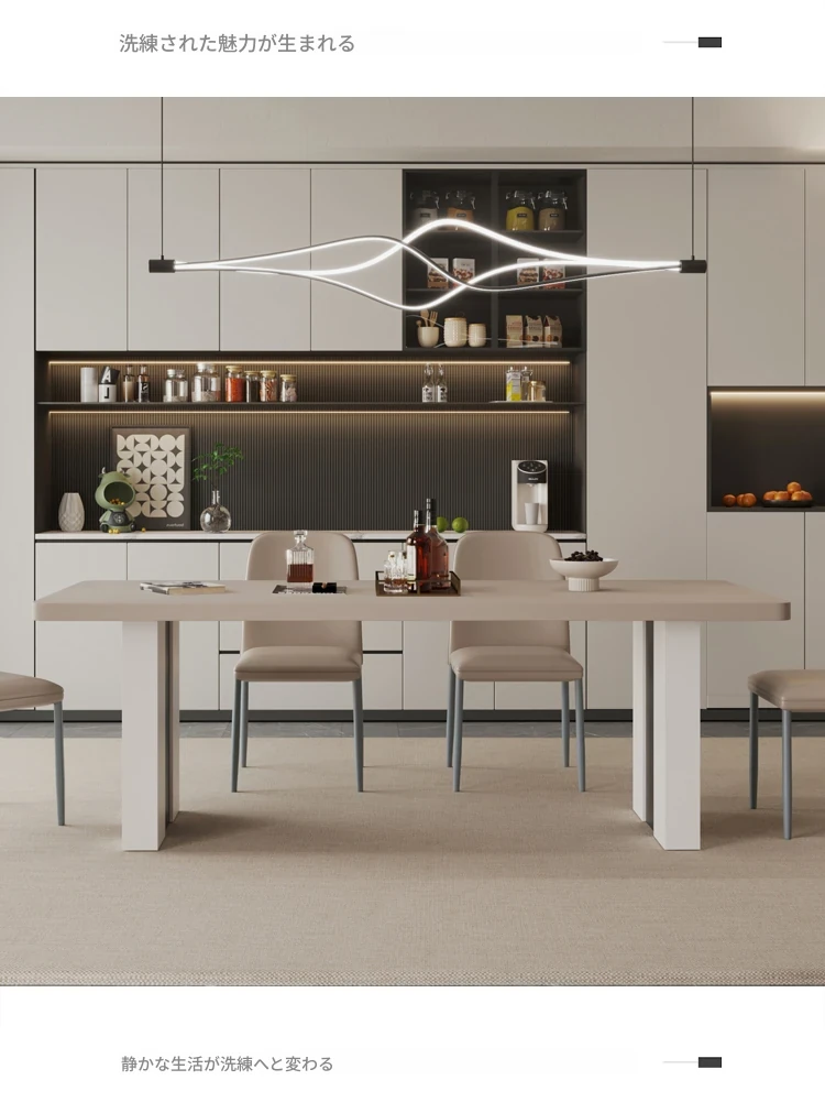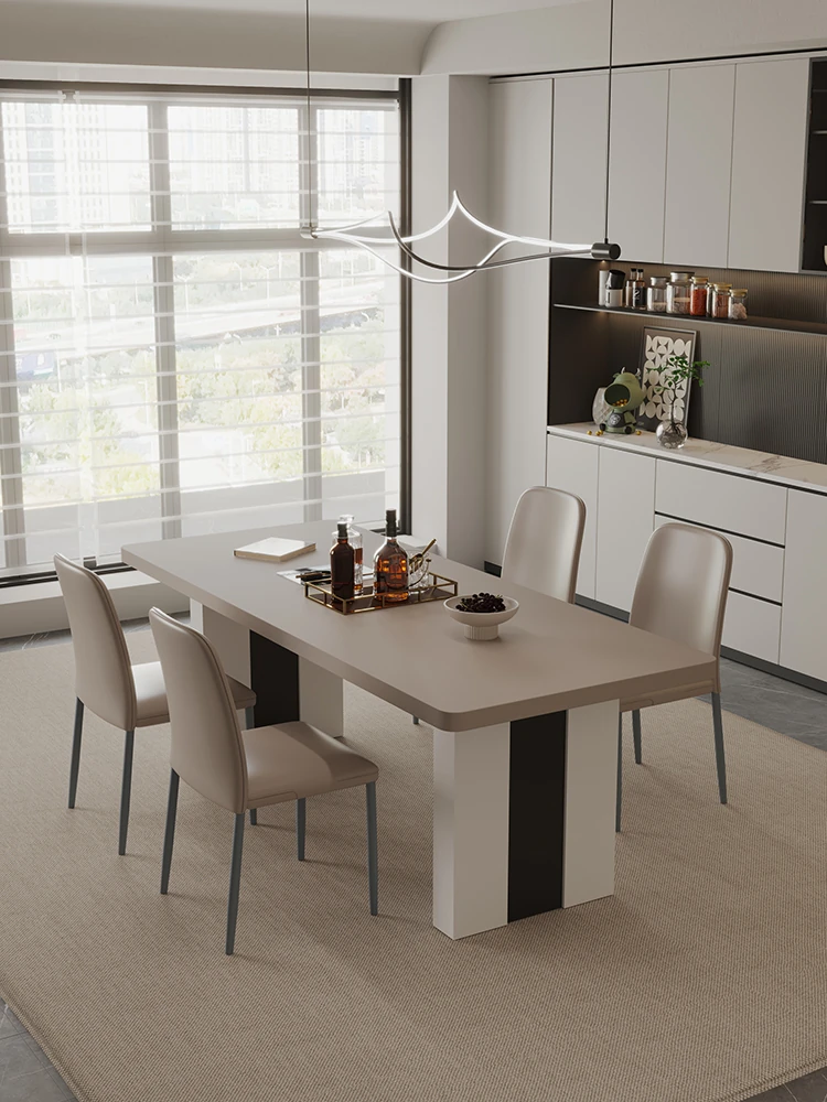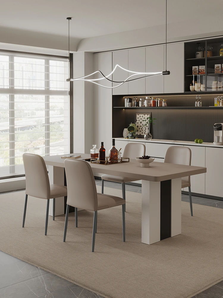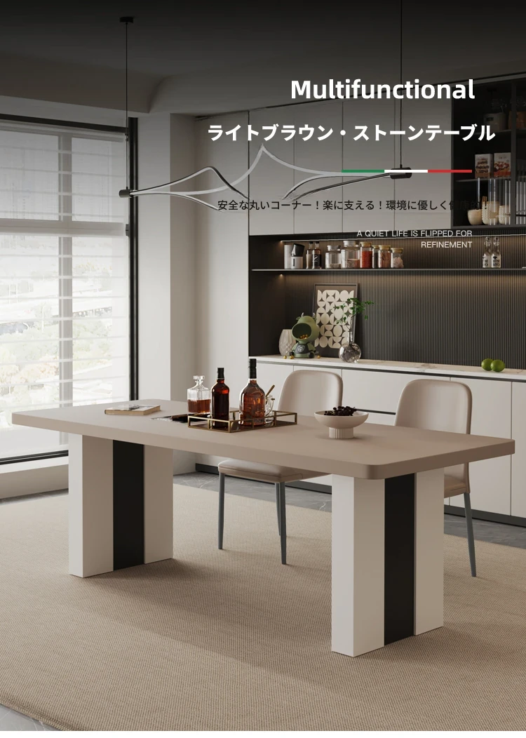 カフェ色のロック板ダイニングテーブル&チェアセット - スタイリッシュな長方形のイタリアンミニマルデザイン、狭いスペースに最適なモダンシンプルテーブル。あなたの家に洗練された雰囲気をプラス!
