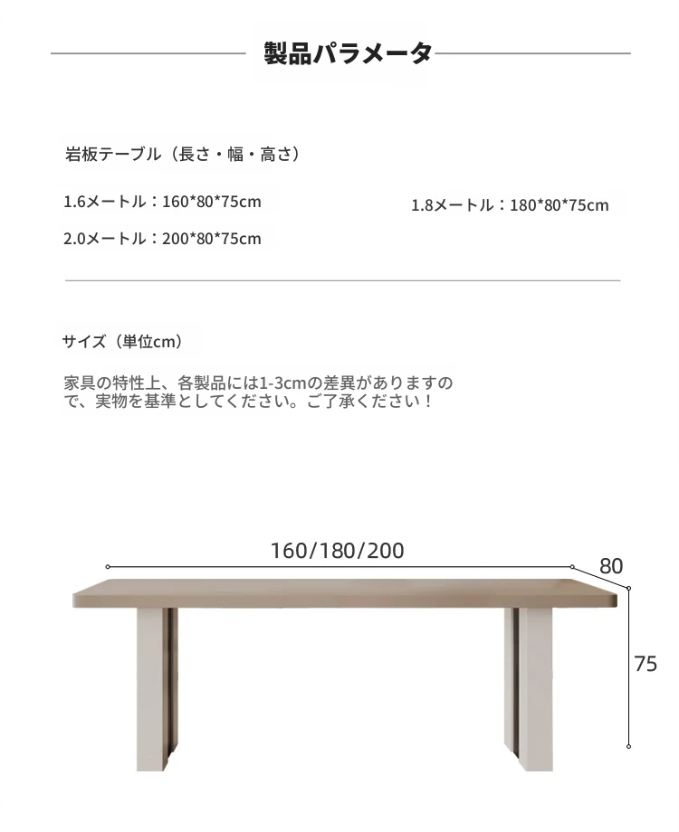 160*80【単一テーブル】肌感岩板
