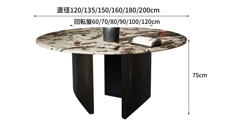 1.5メートル+80回転テーブル天然雪山飛狐豪華石製ダイニングテーブル(偽造品は罰金十倍)