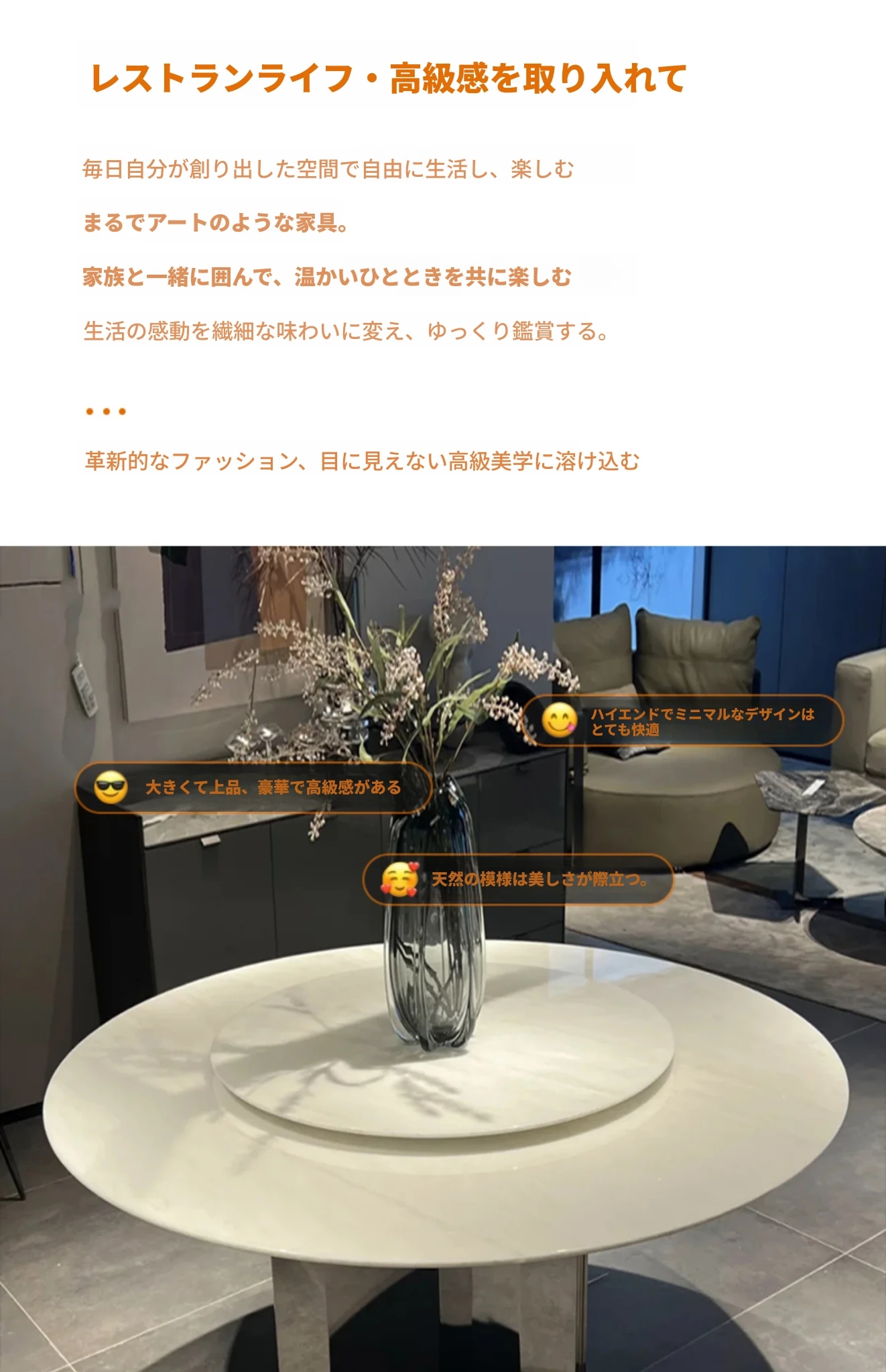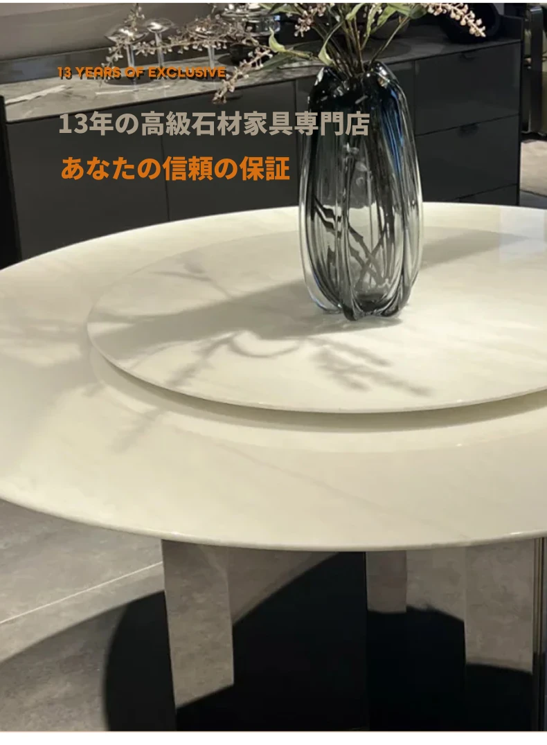 加澄カリーヴィンテージスタイルのラグジュアリー大理石円形ダイニングテーブル - イタリアンエレガンスの高級別荘向け、天然大理石を使用した贅沢な一品!