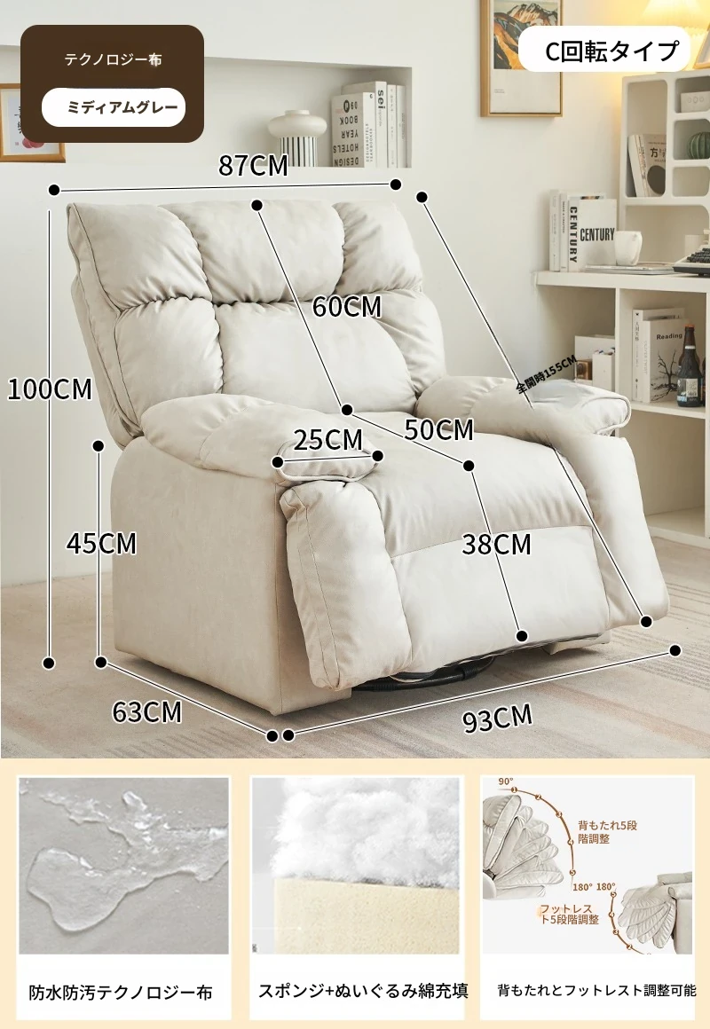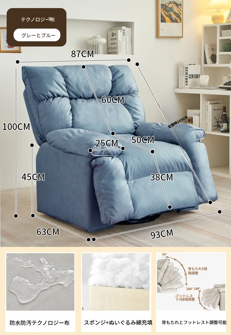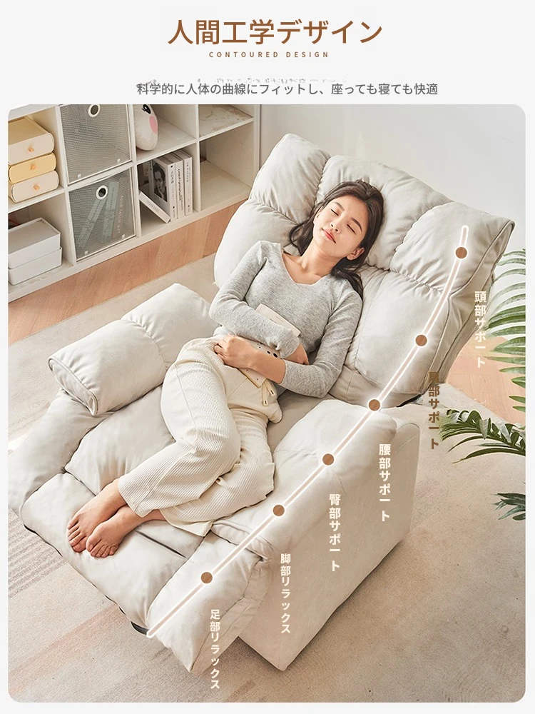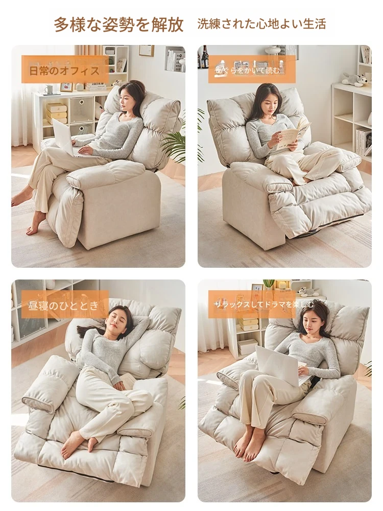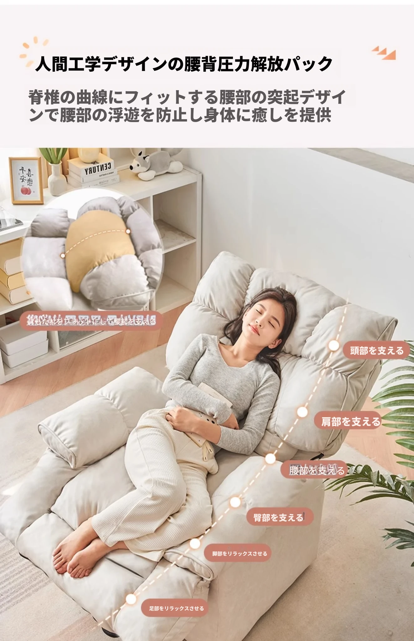 リラックスソファ|家庭用・寝室用・多機能シングルソファ|バルコニーでのくつろぎに最適なロッキングチェア|寝ても座っても使える快適な一人用椅子!