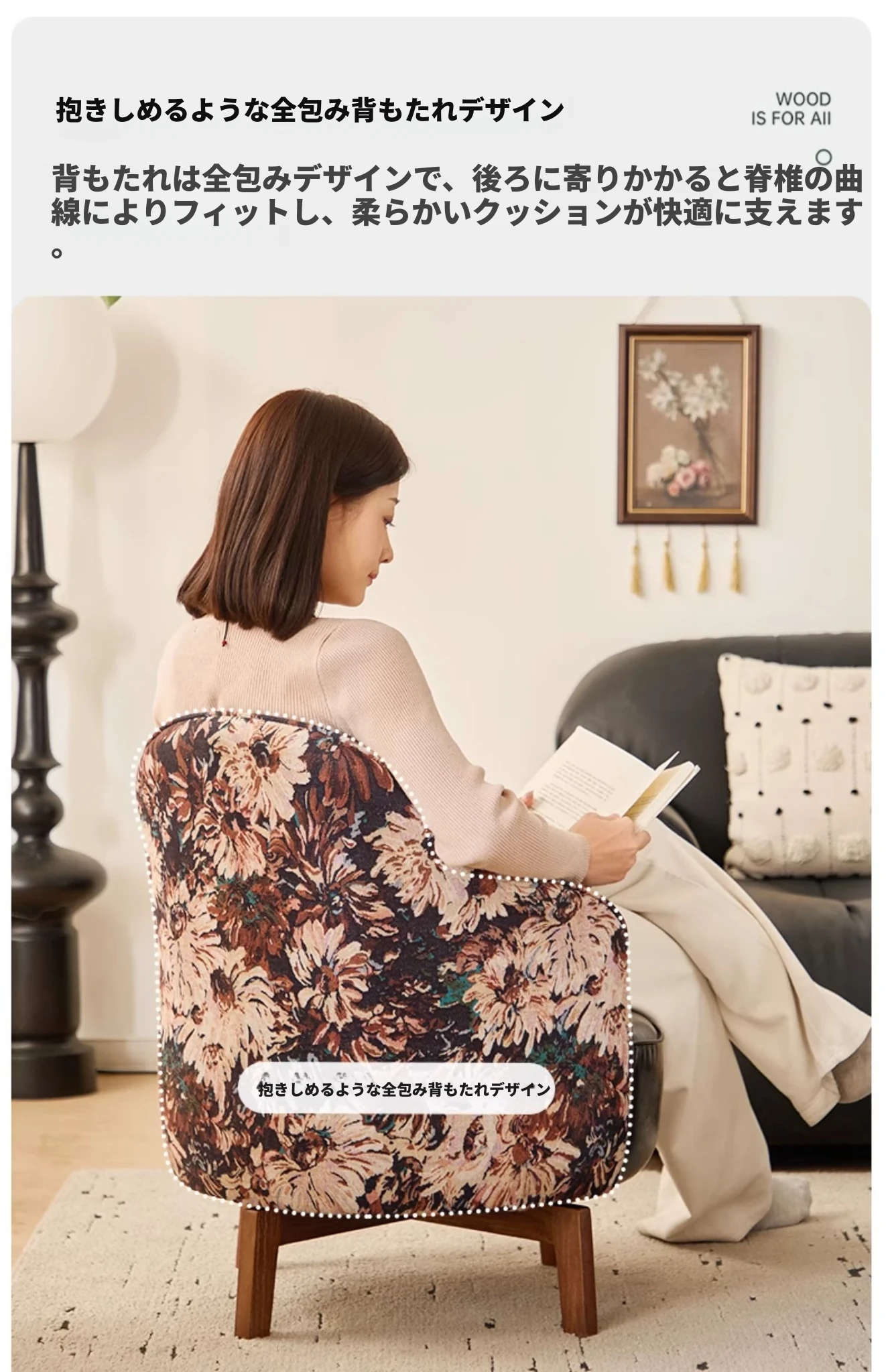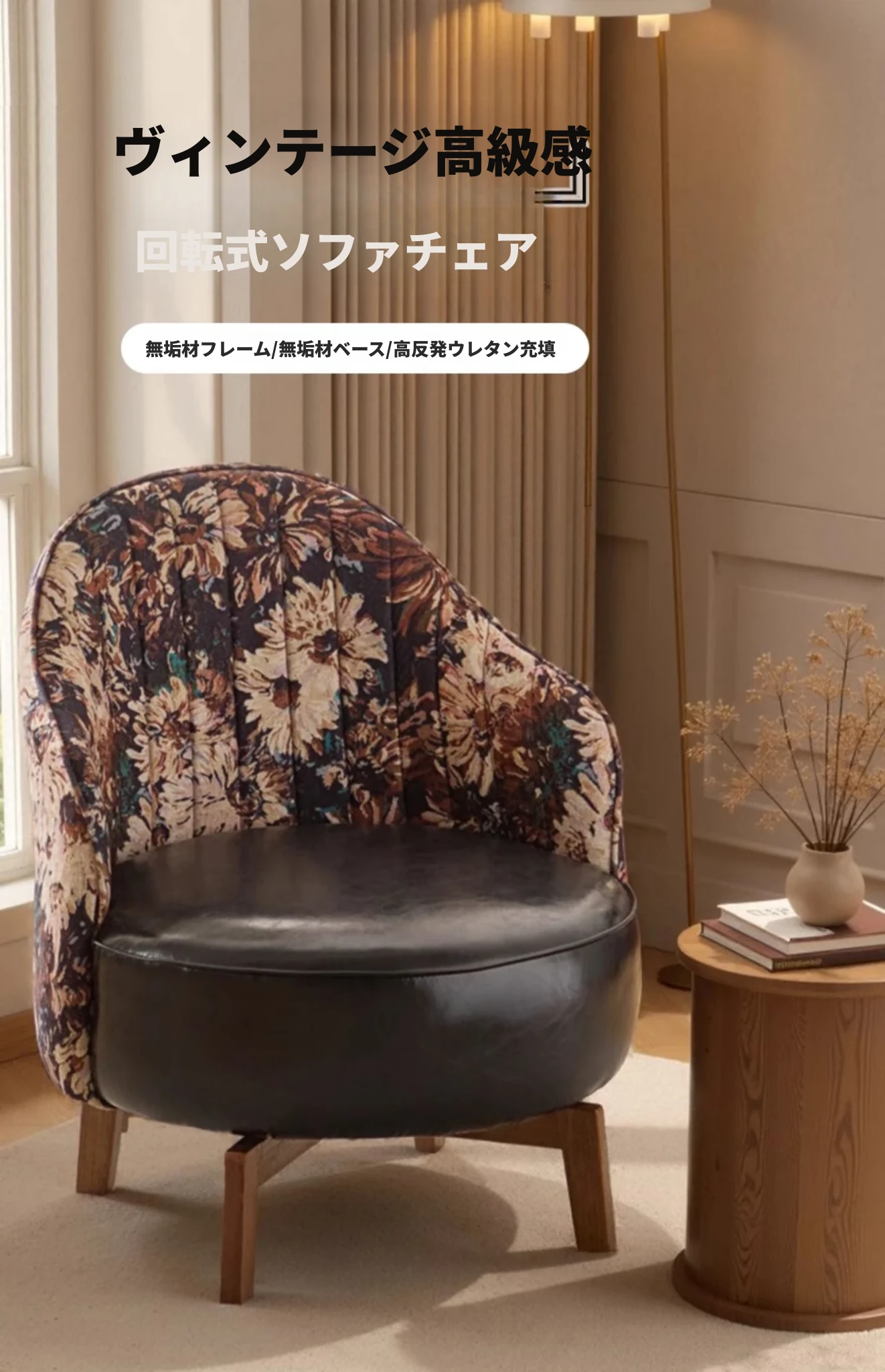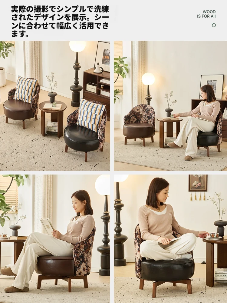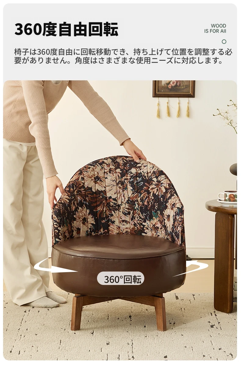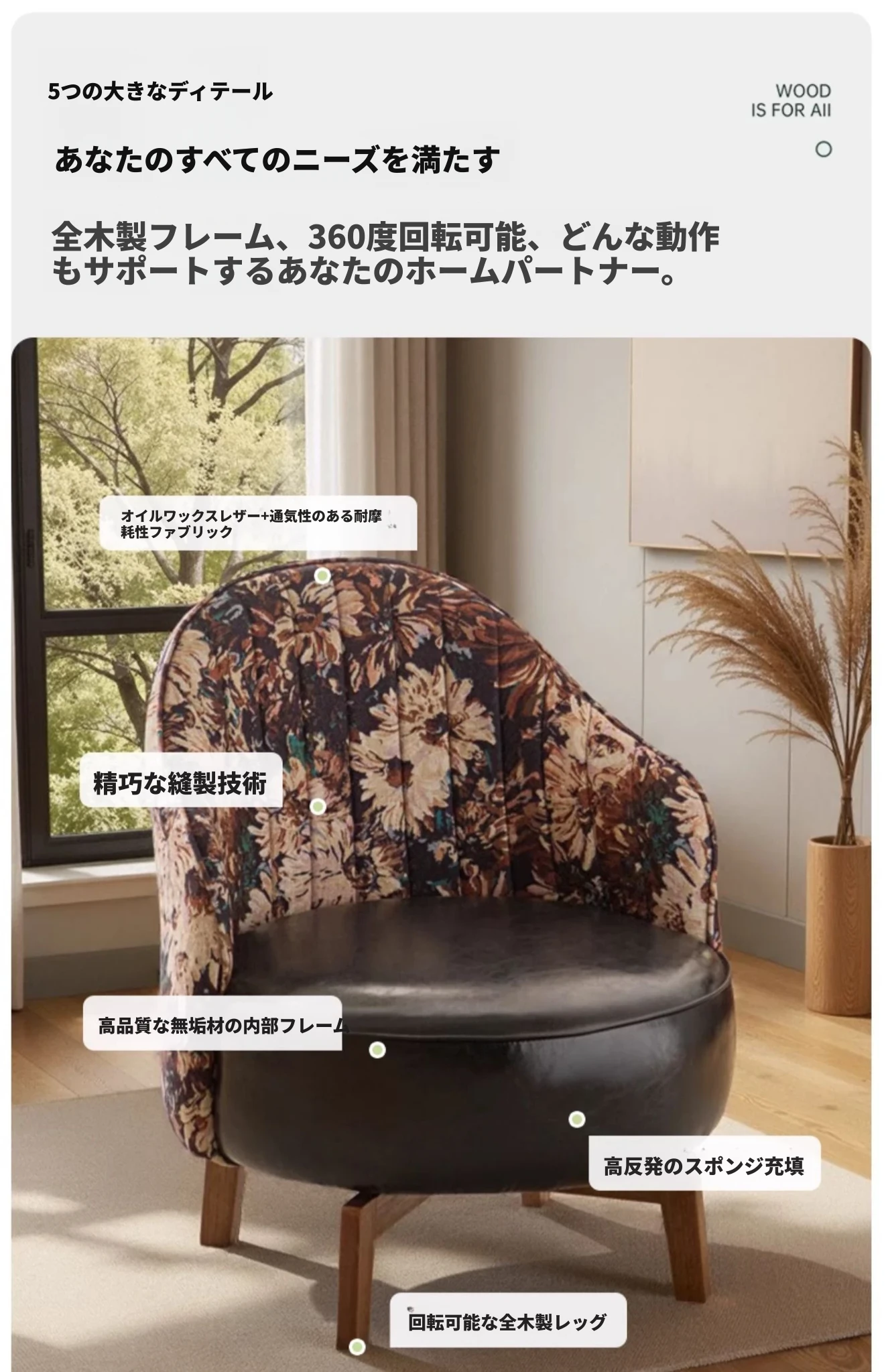快適な一人掛けソファ - 天然木製のリラックスチェア、回転機能付き、居心地の良いリビングや寝室に最適!長時間座っても疲れ知らずの理想の座椅子。