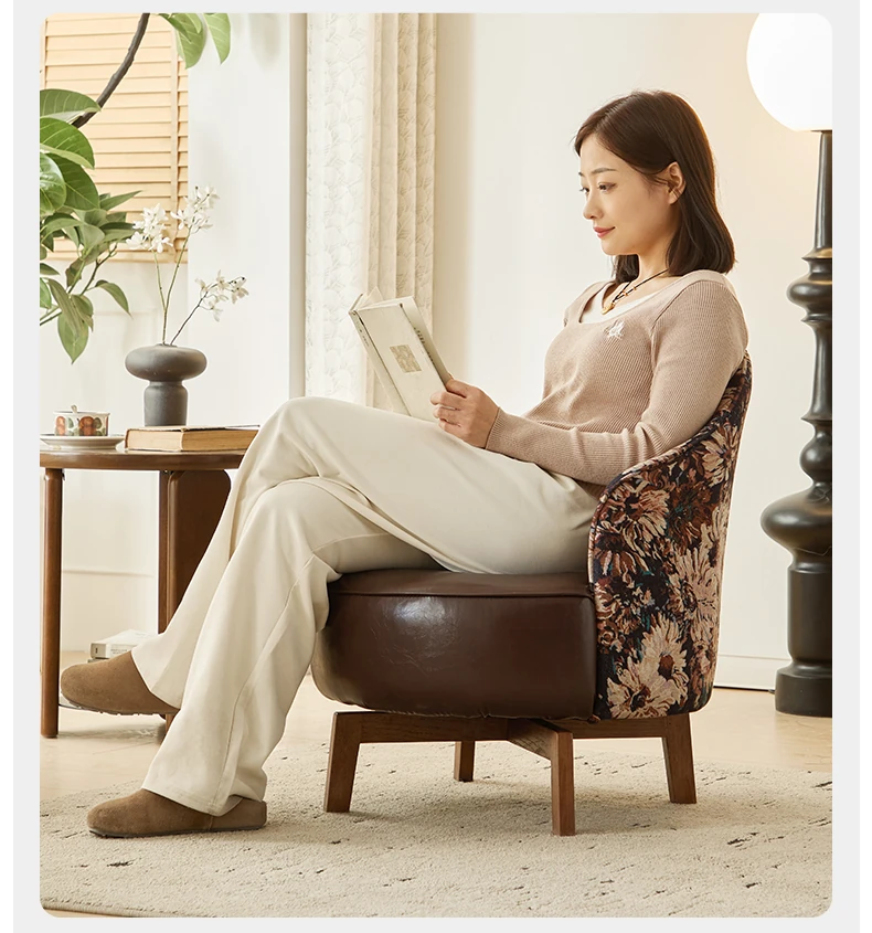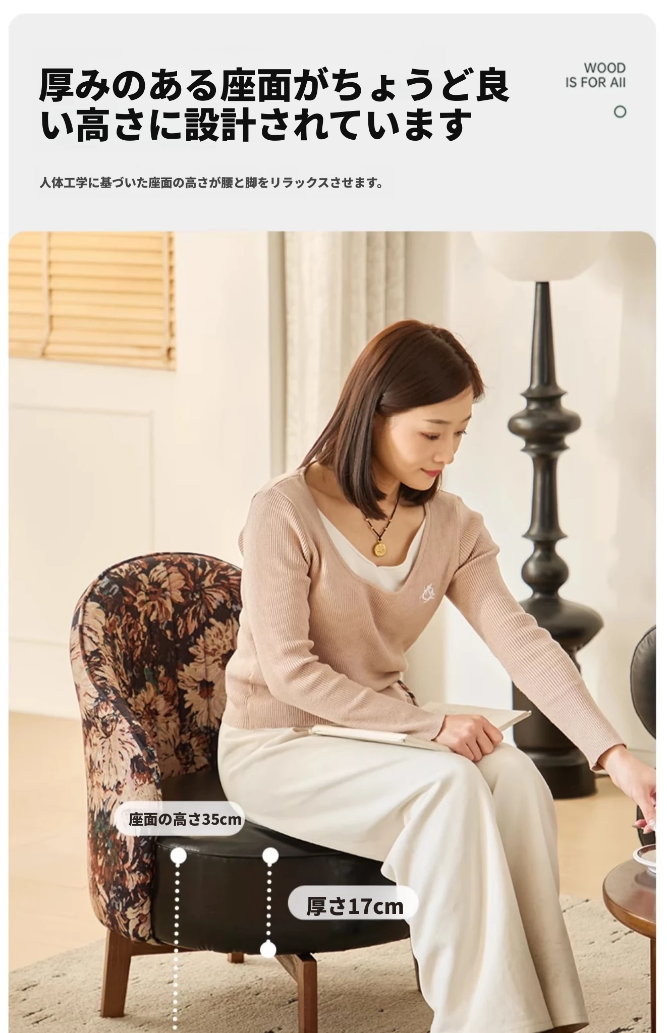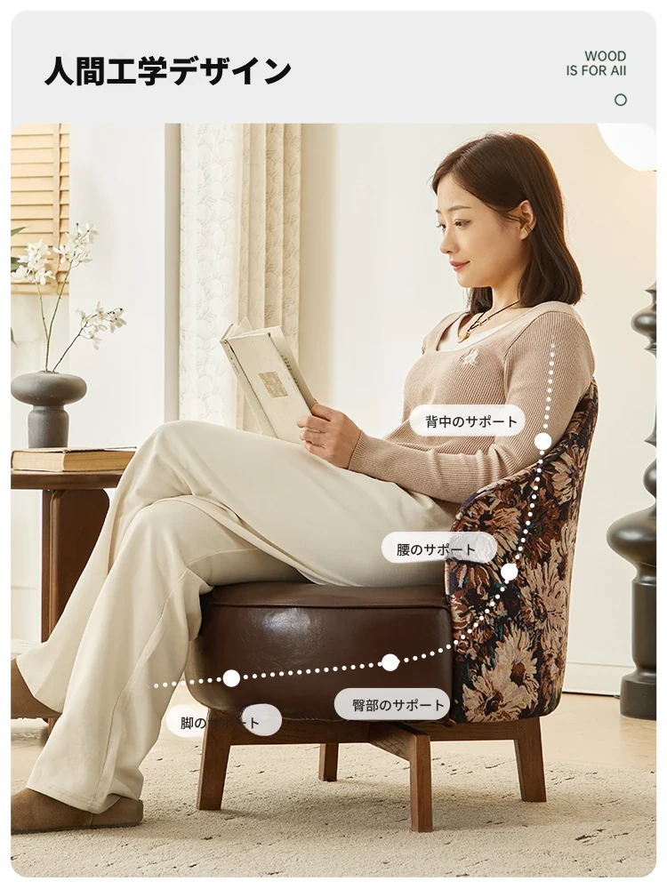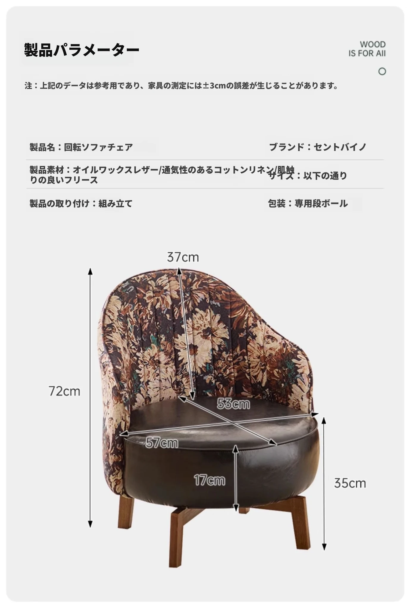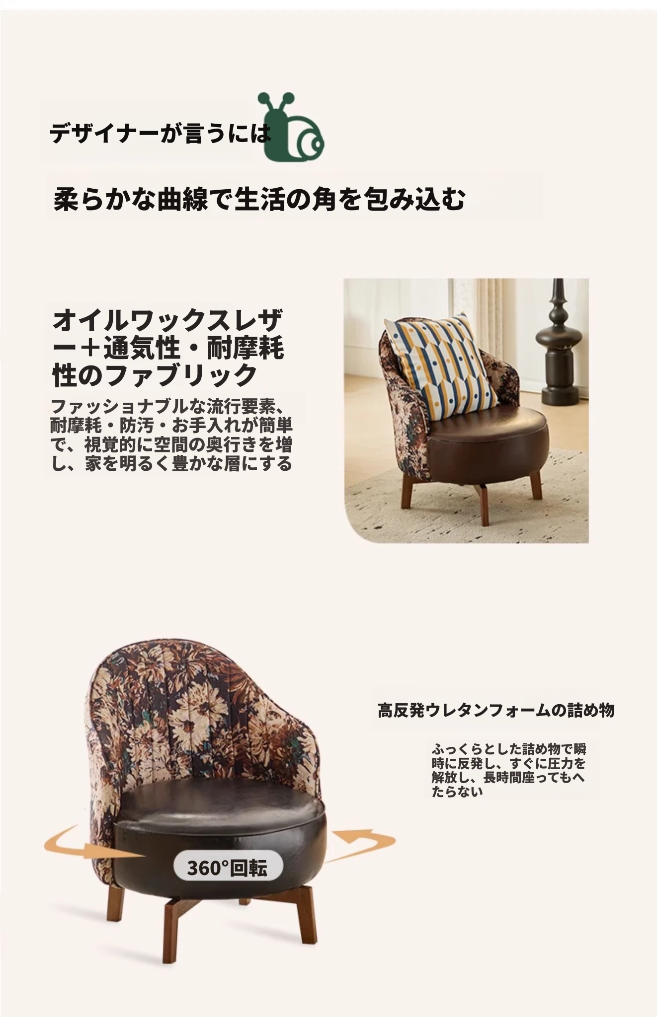 快適な一人掛けソファ - 天然木製のリラックスチェア、回転機能付き、居心地の良いリビングや寝室に最適!長時間座っても疲れ知らずの理想の座椅子。