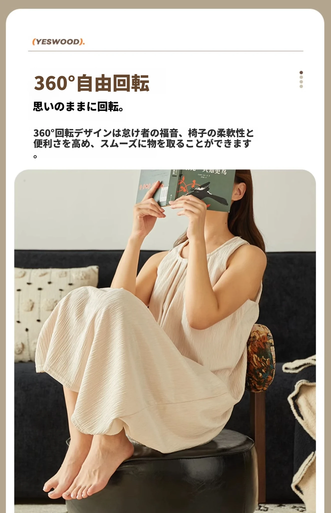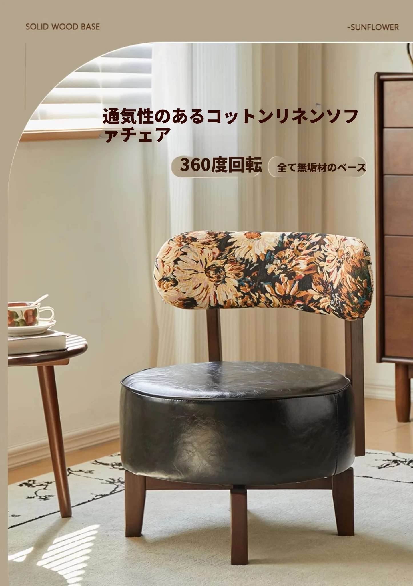 快適な回転式無垢材ソファチェア - リビングやバルコニーに最適な一人掛け椅子。長時間座っても疲れない、心地よい背もたれ付きのリラックスチェア!