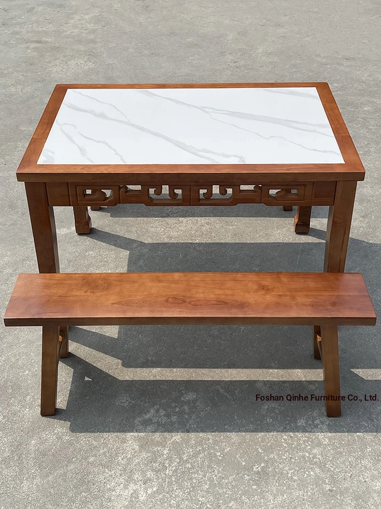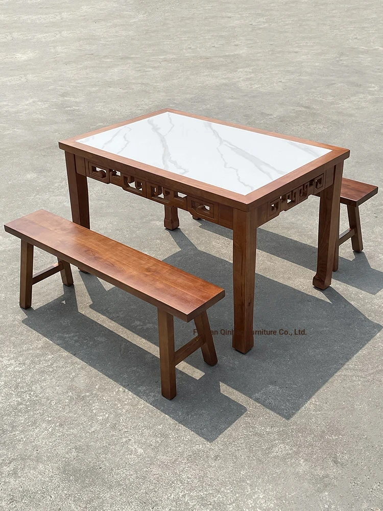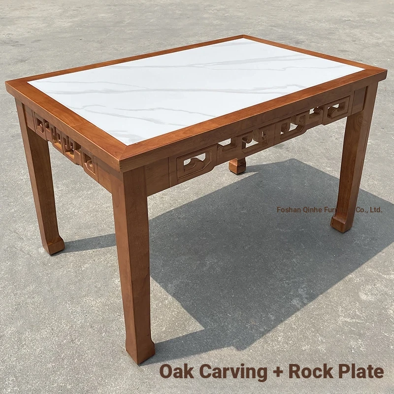 Commercial Carved Oak Solid Wood Edged Rectangular Dining Table Set - Ideal for Hotpot Restaurants, Snack Bars, Cafés, and Hotels