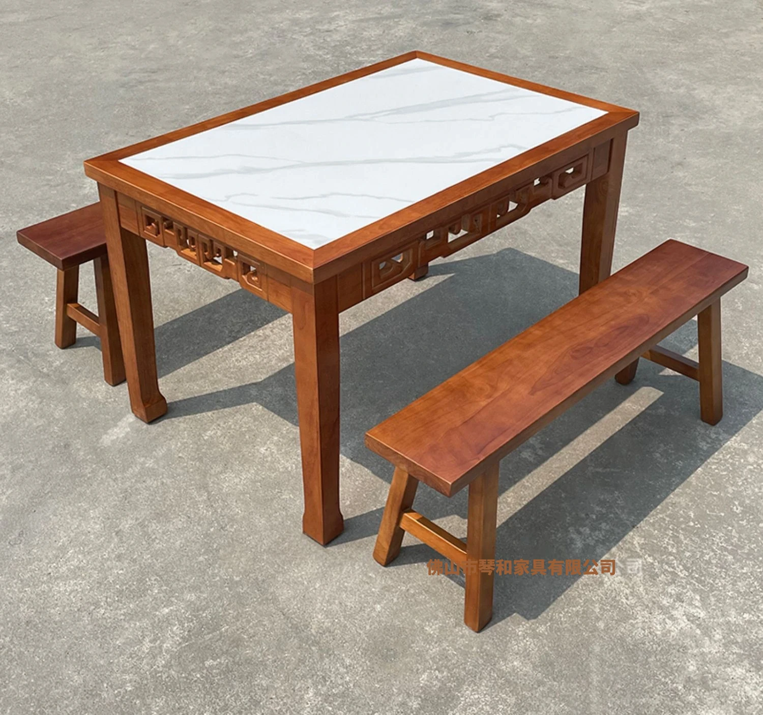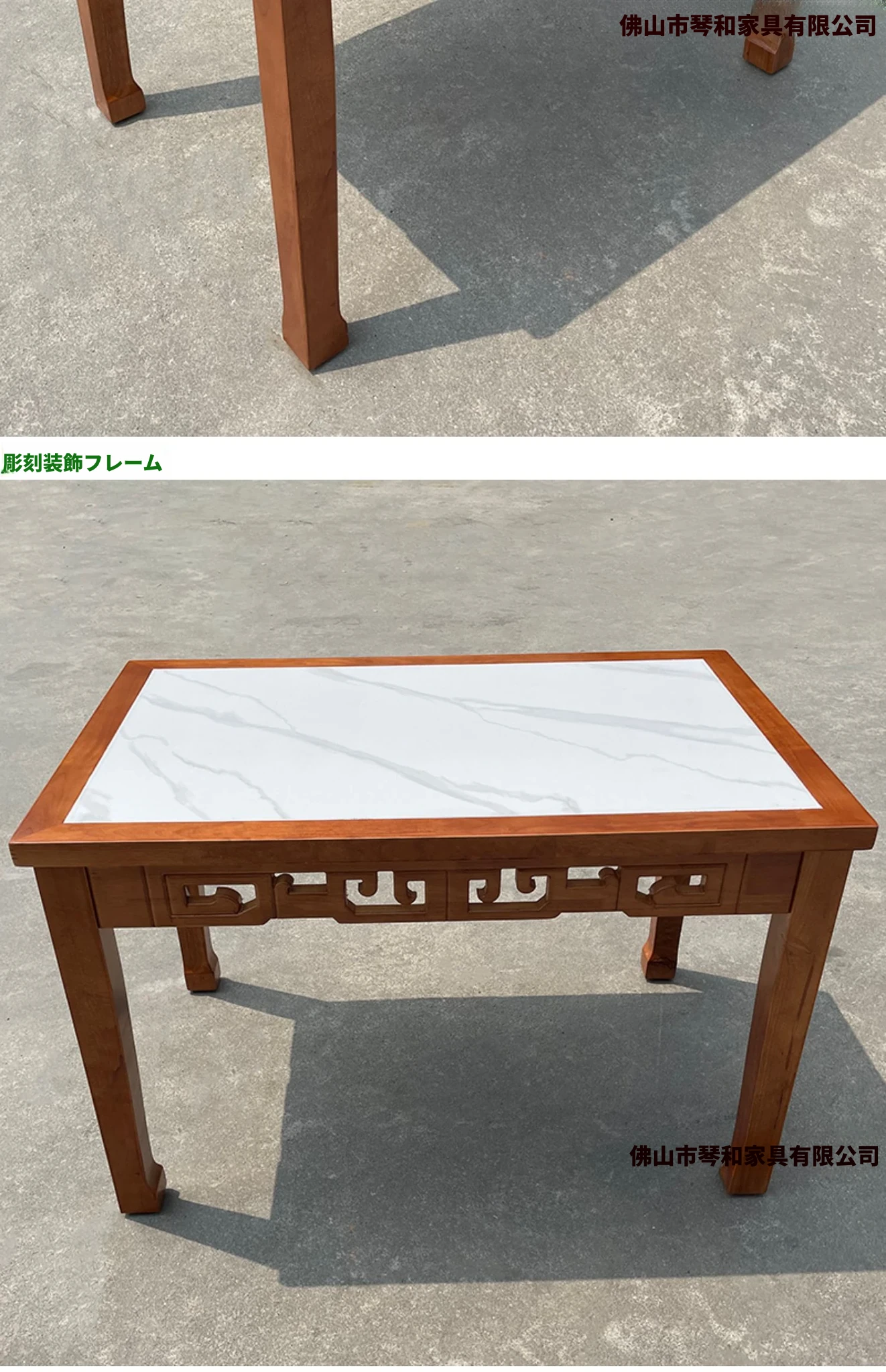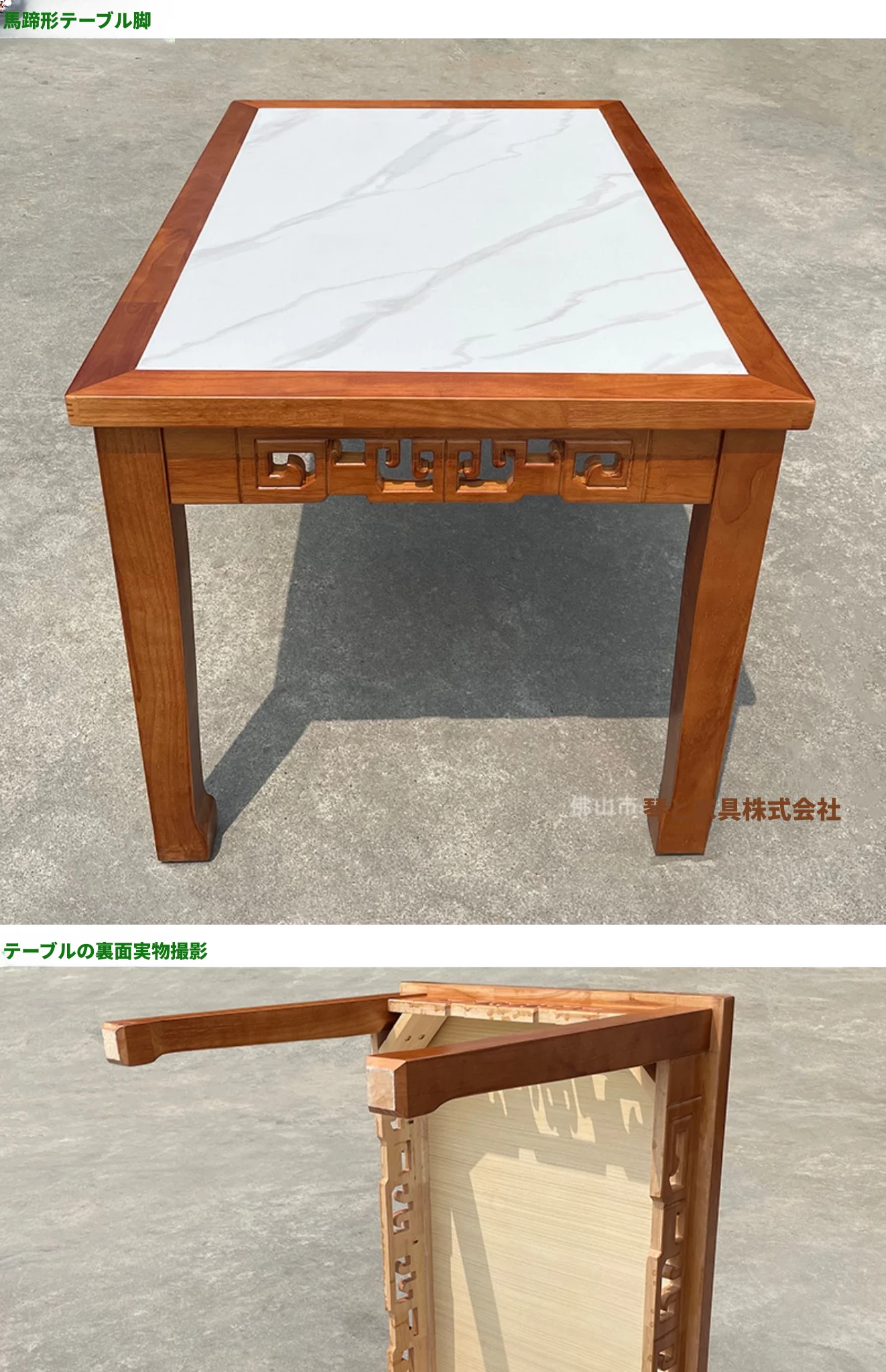 商業用彫刻オーク無垢材エッジ加工ラウンドプレート長方形ダイニングテーブルセット|火鍋店・軽食店・レストラン・ホテルに最適!高品質で耐久性抜群、スタイリッシュなデザインでお客様を魅了します。