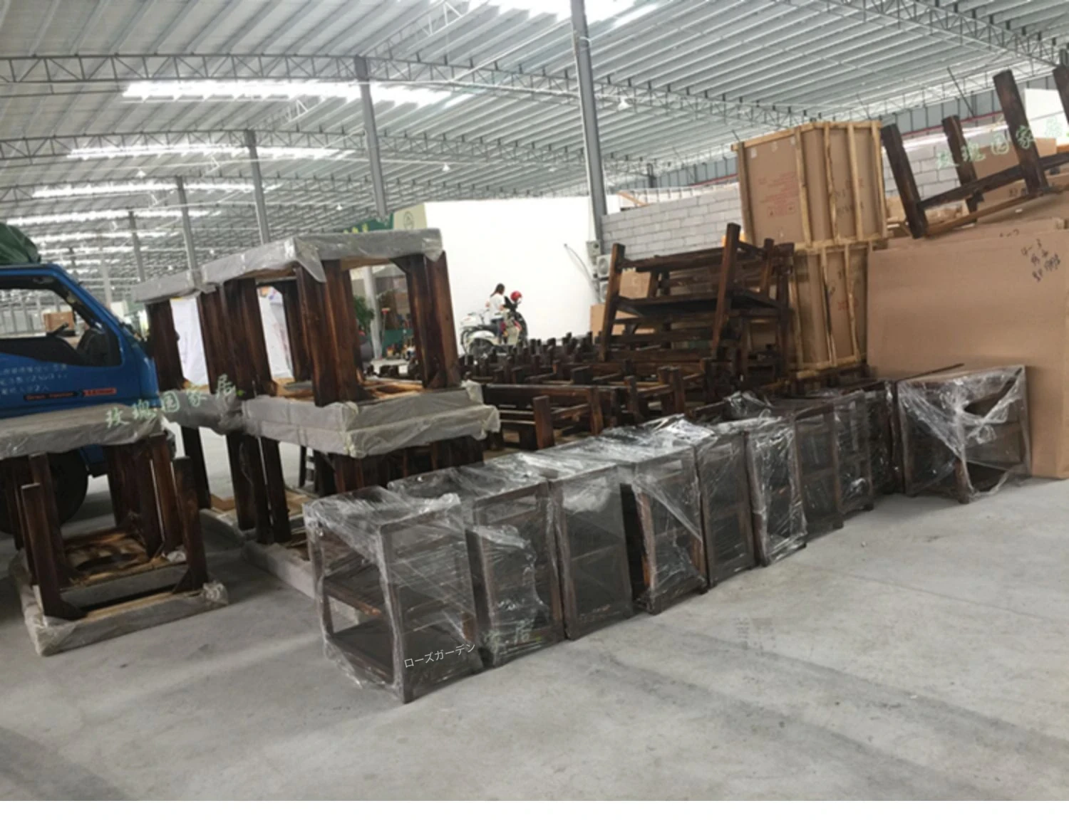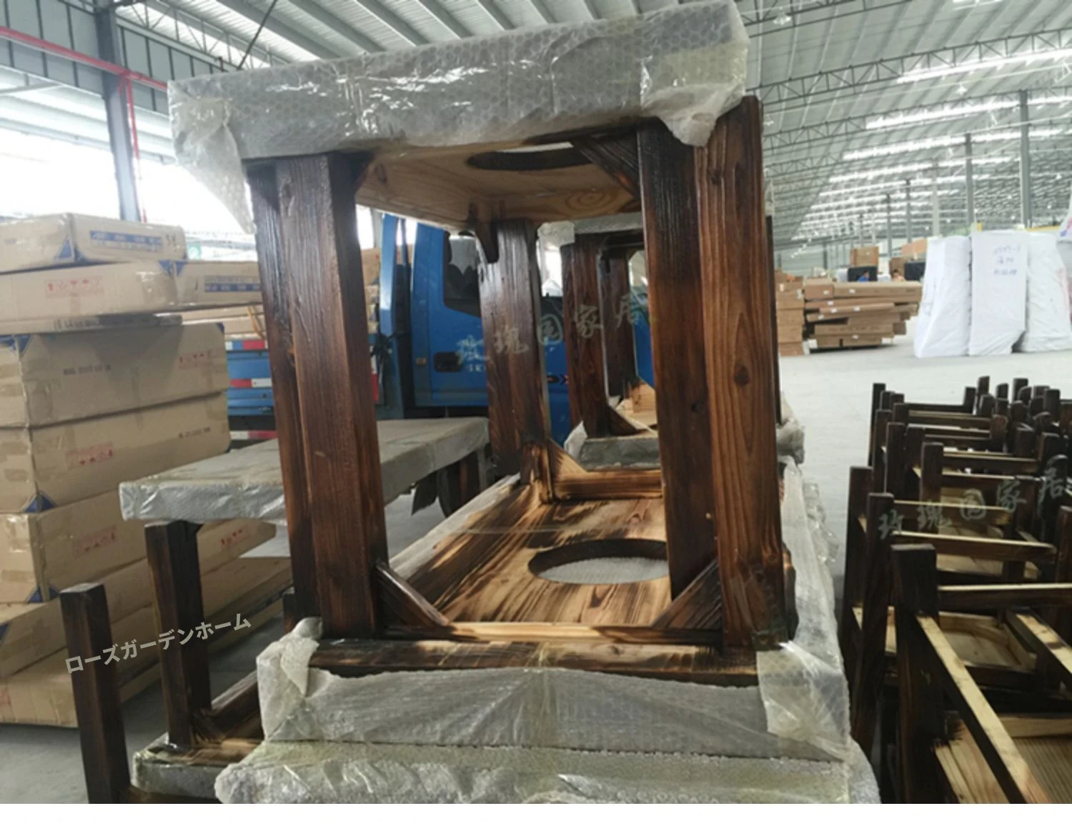 120*80テーブル+2脚長椅子+ガスコンロ