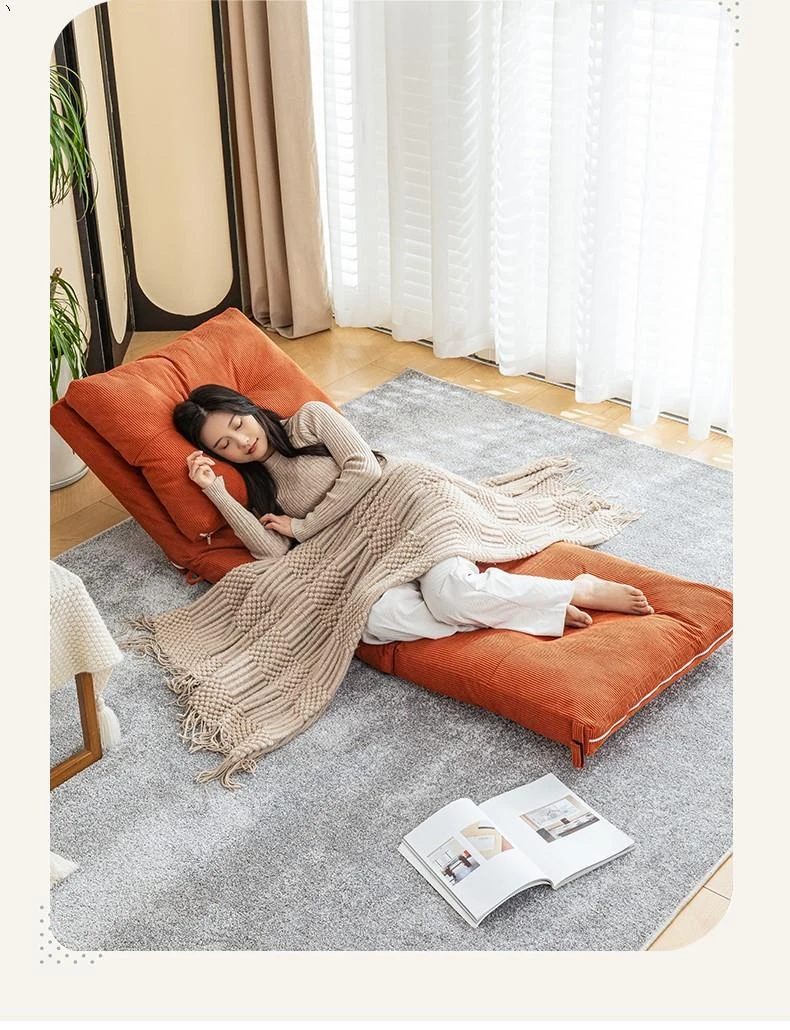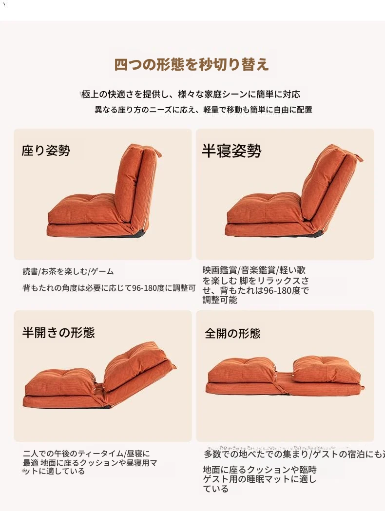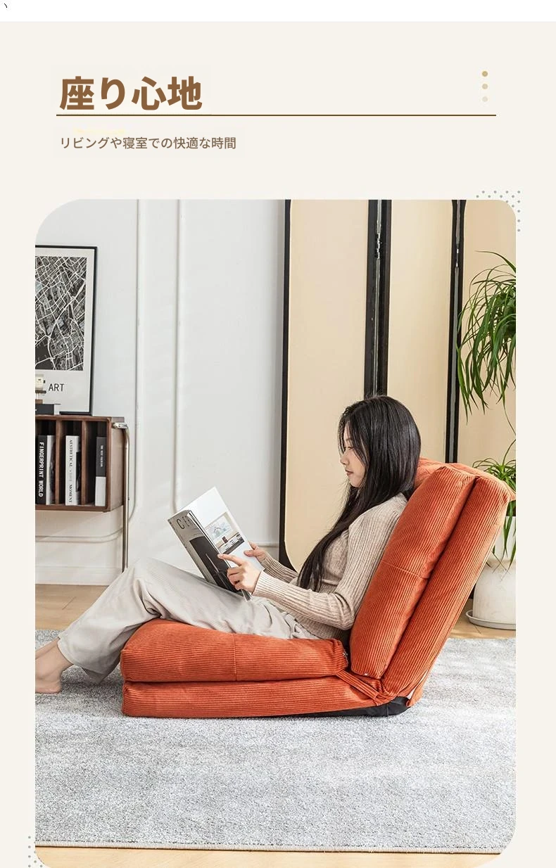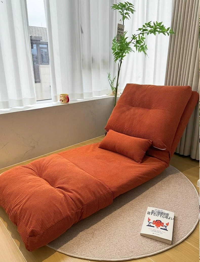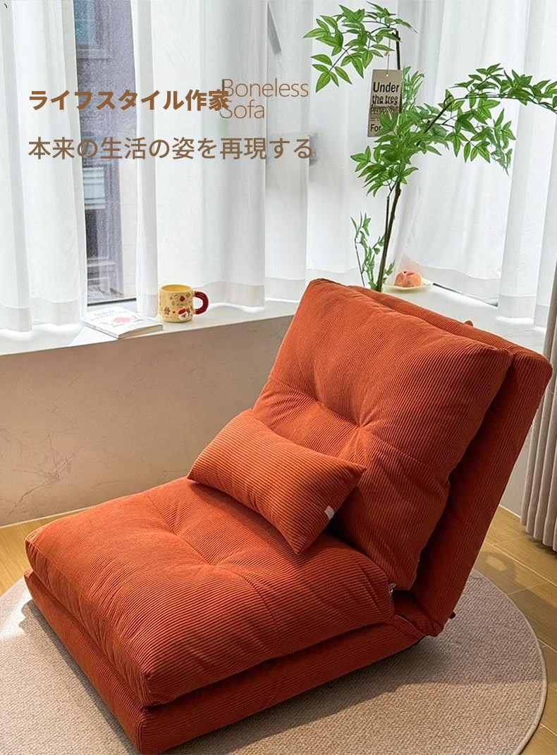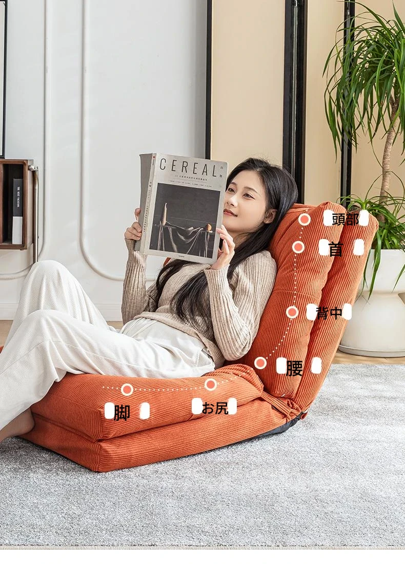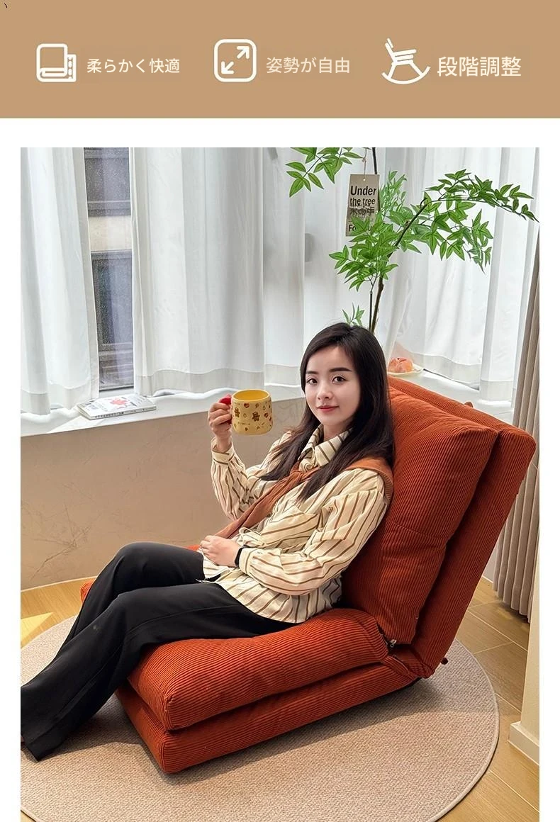 コンパクトな省スペース用リクライニングソファ - 折りたたみ式で、寝転んだり座ったりできる多機能デザイン!洗濯可能で、読書やリラックスタイムにぴったりな快適な椅子。お部屋やバルコニーに最適!