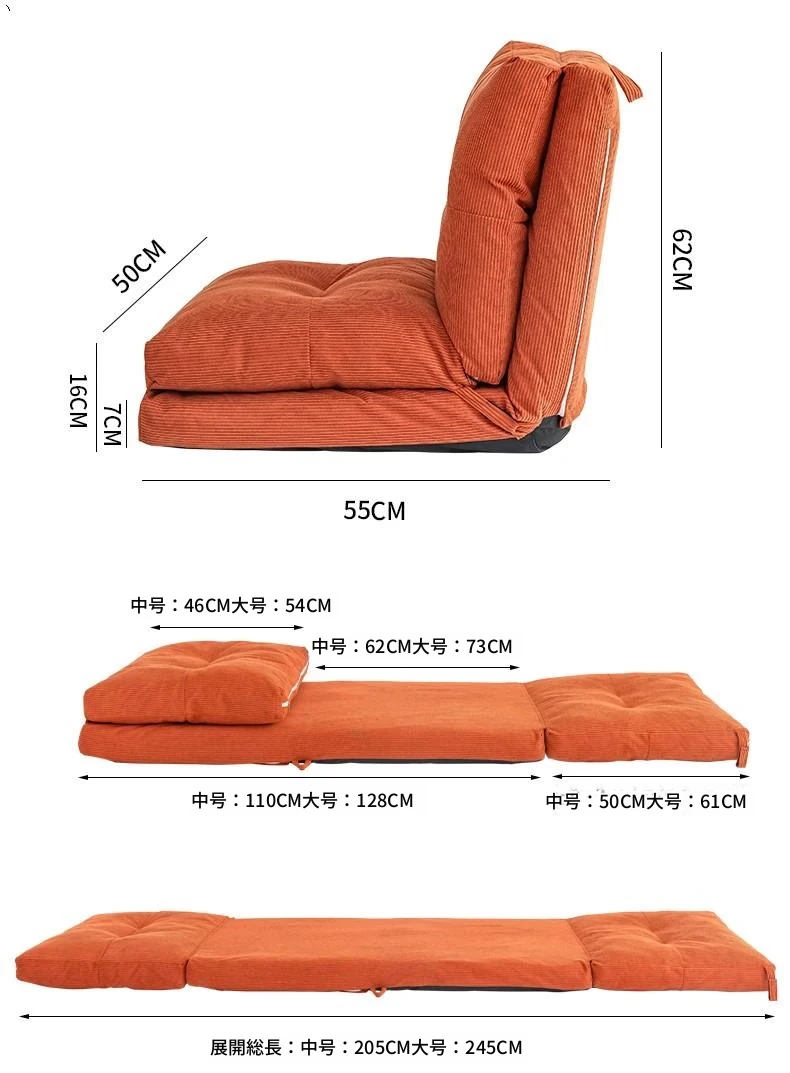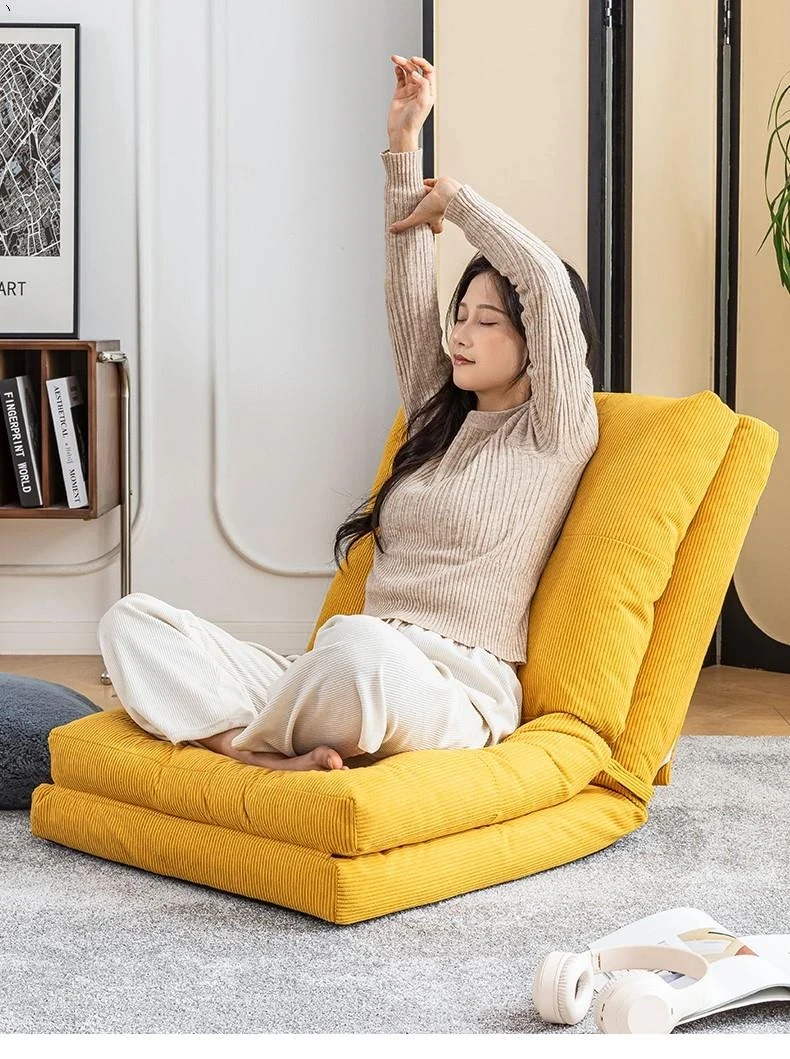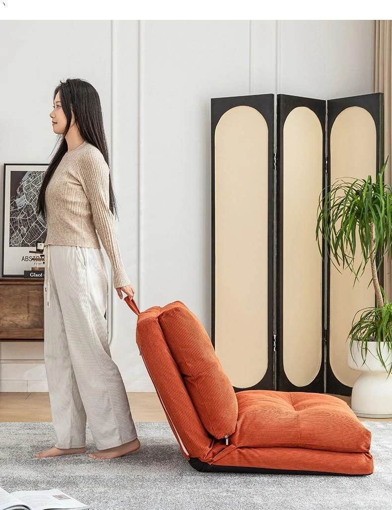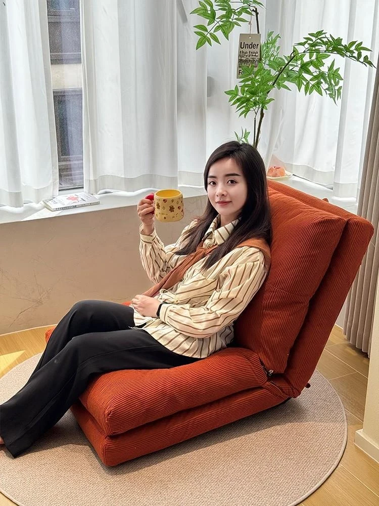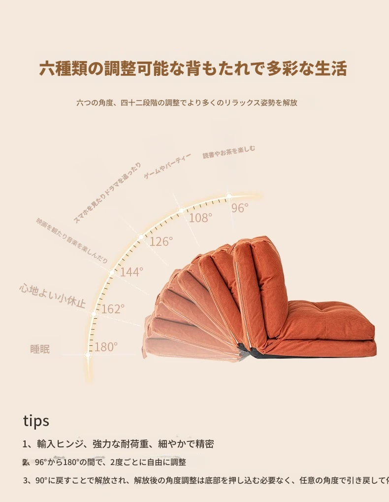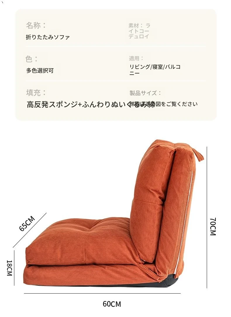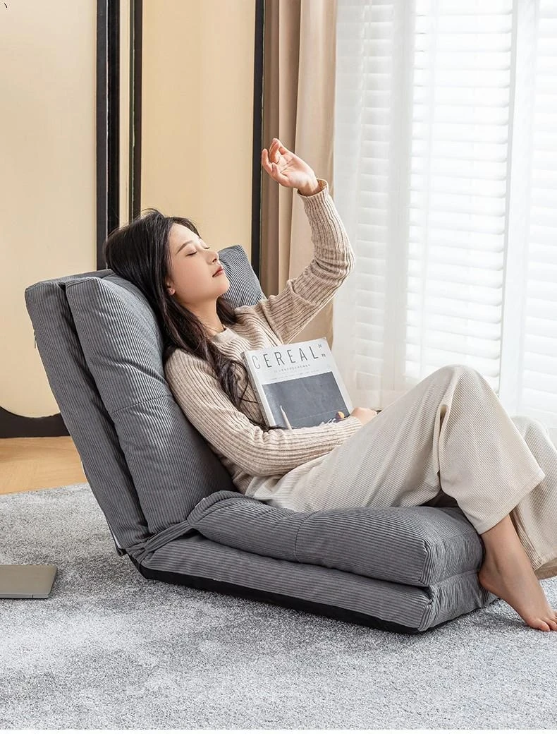 コンパクトな省スペース用リクライニングソファ - 折りたたみ式で、寝転んだり座ったりできる多機能デザイン!洗濯可能で、読書やリラックスタイムにぴったりな快適な椅子。お部屋やバルコニーに最適!