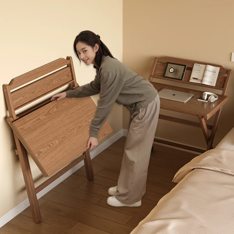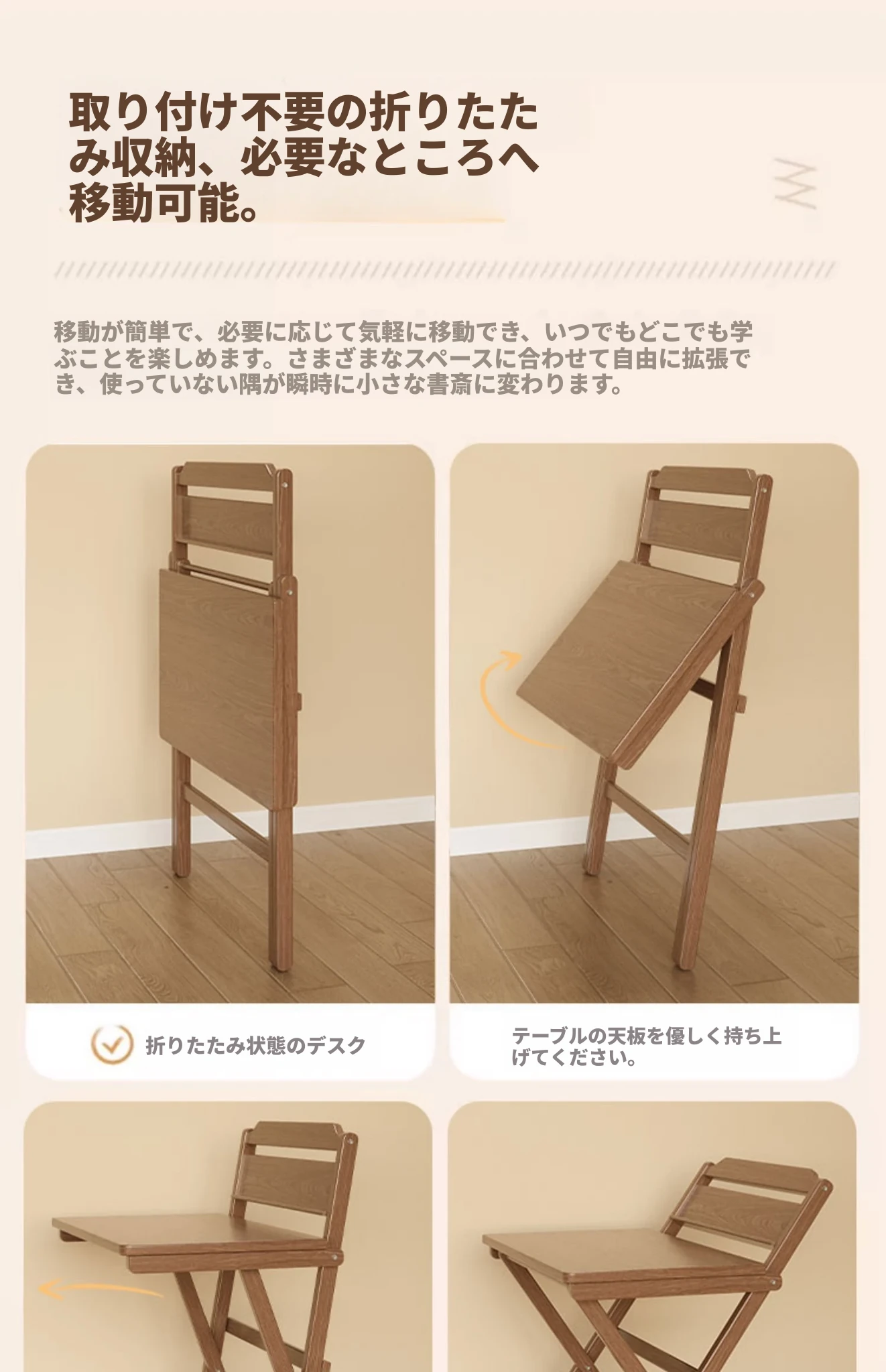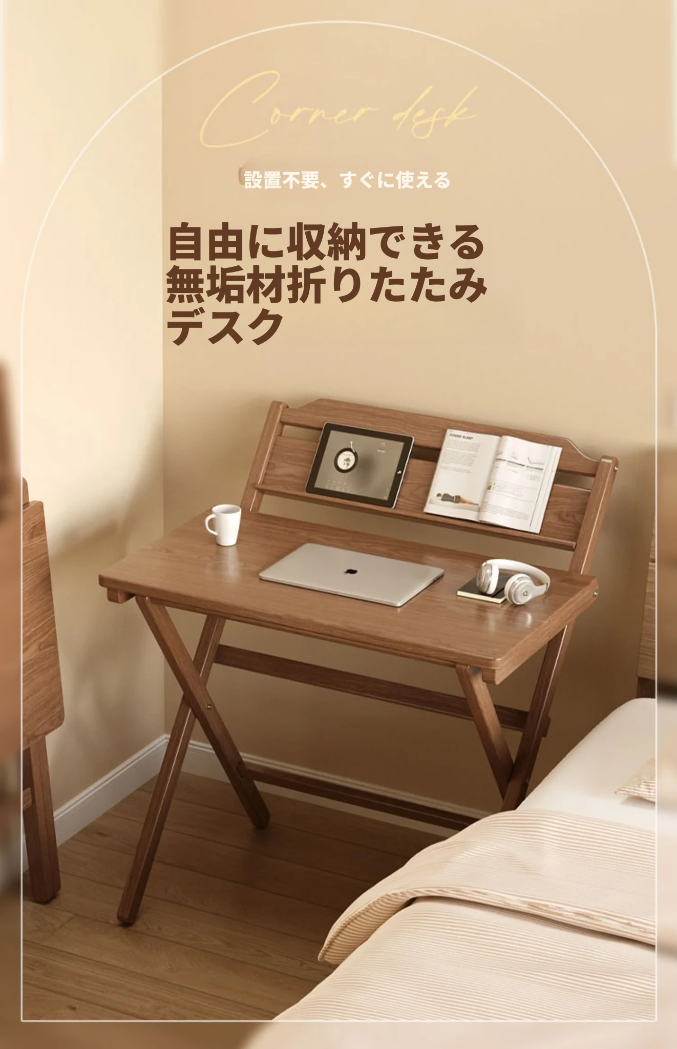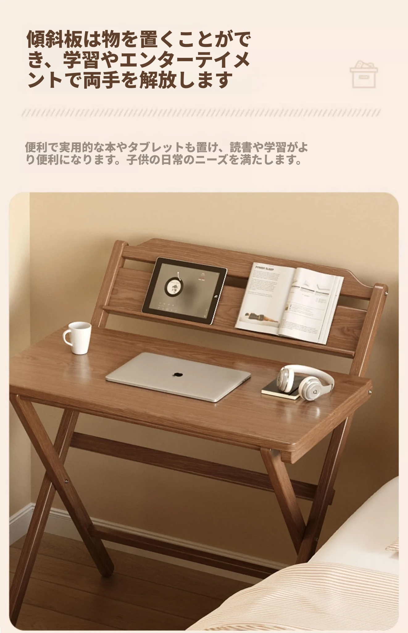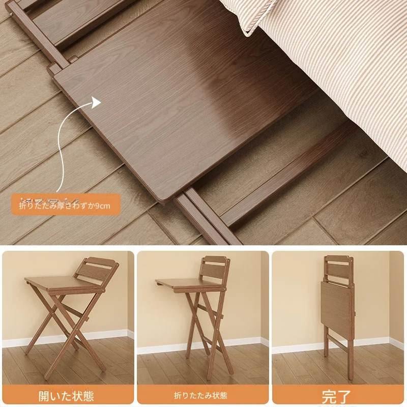 実木製折りたたみデスク - 学生や家庭用に最適!省スペースで使いやすい小型デスク、寝室やリビングにぴったりのシンプルな折りたたみパソコンデスク。ベッドサイドでのオフィスワークにも最適です!