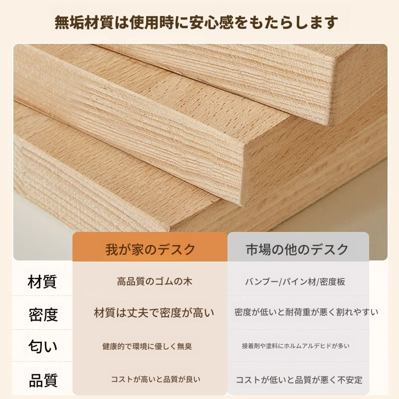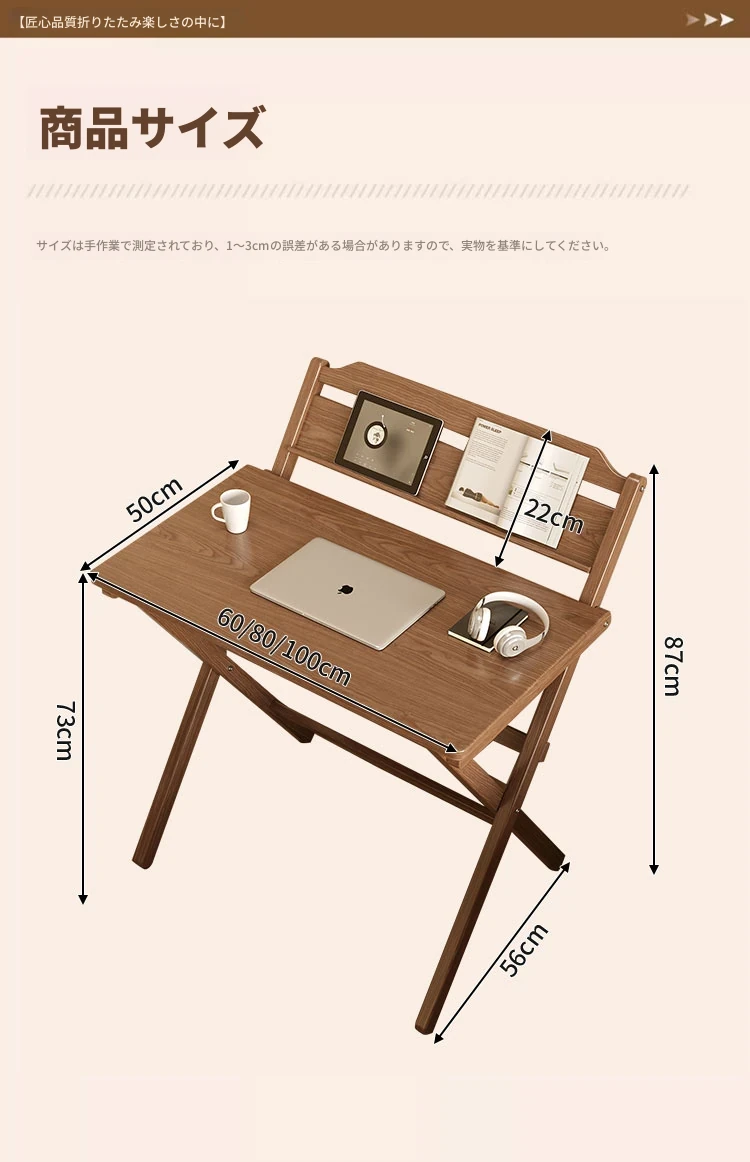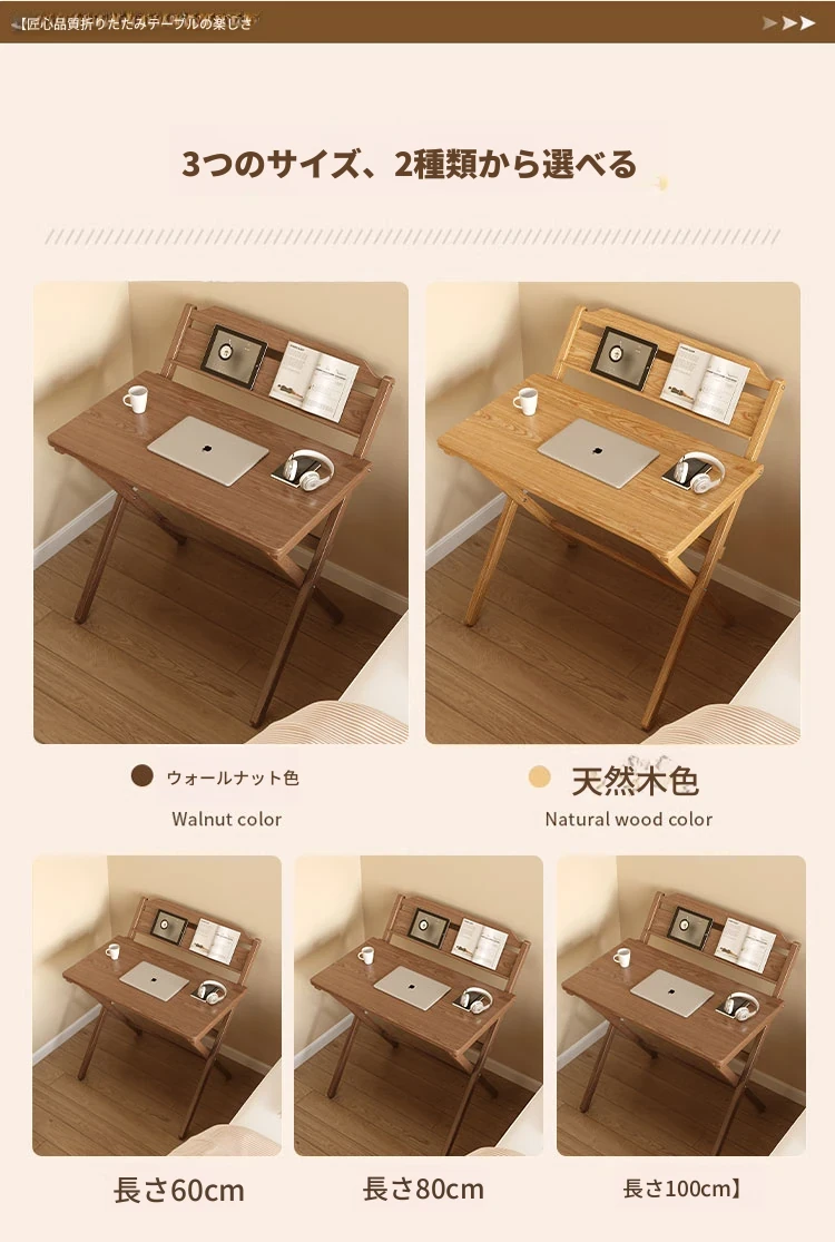 【高品質無垢材】折りたたみデスク-ナチュラル色60CM 【組み立て不要】現貨即発