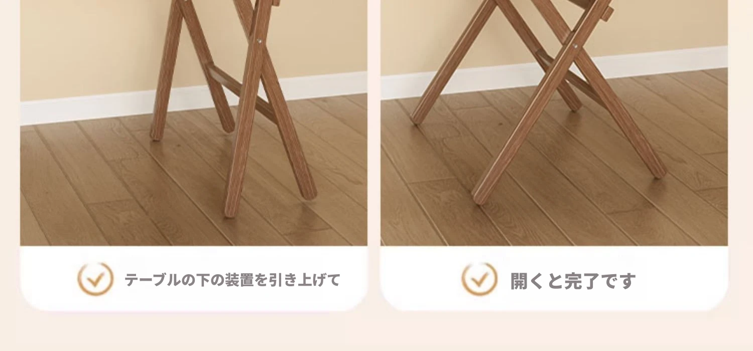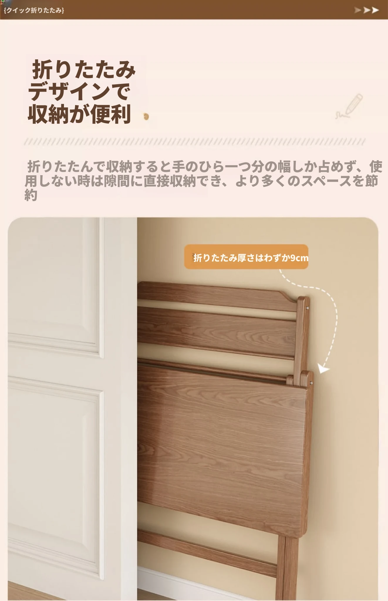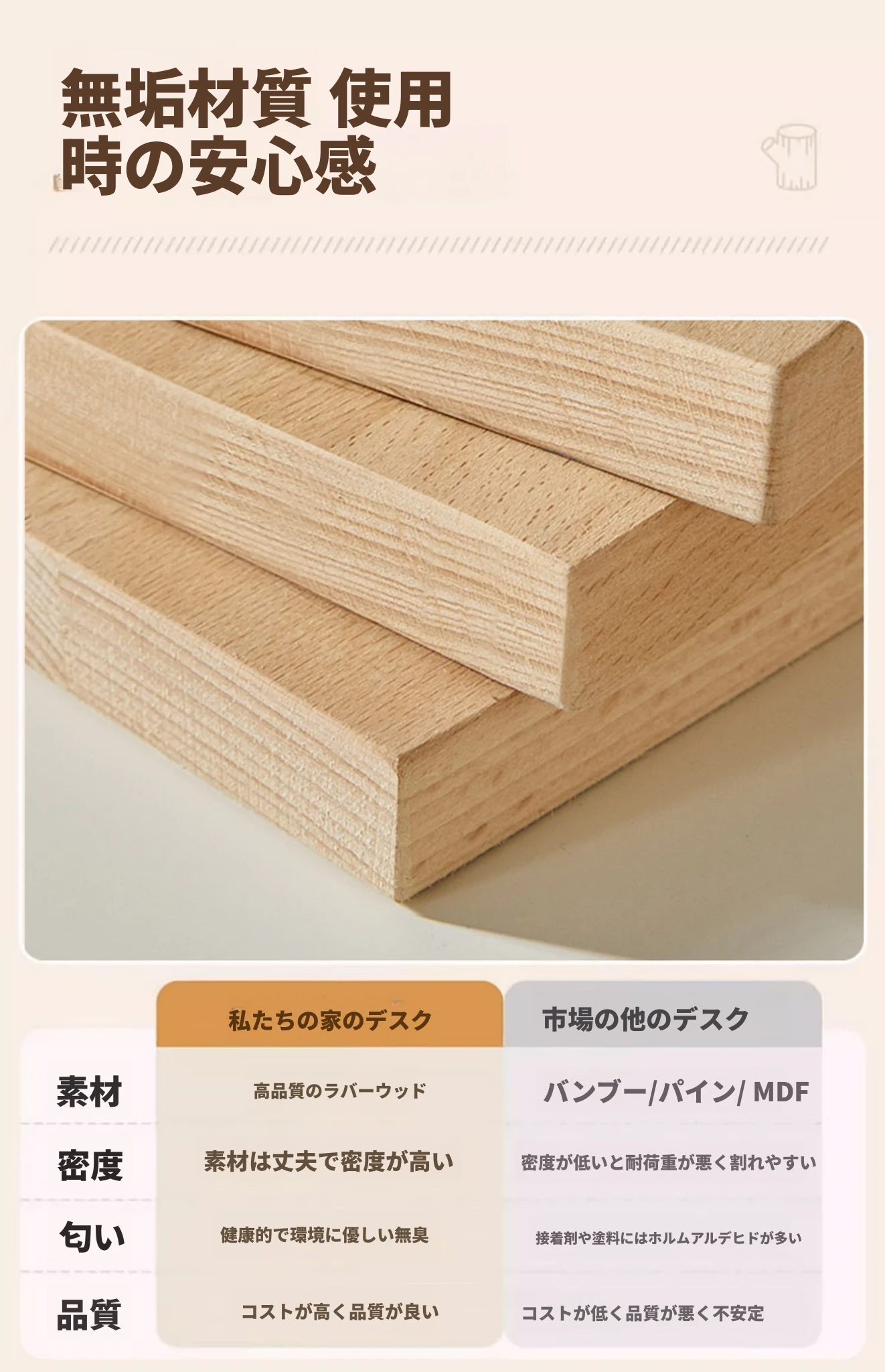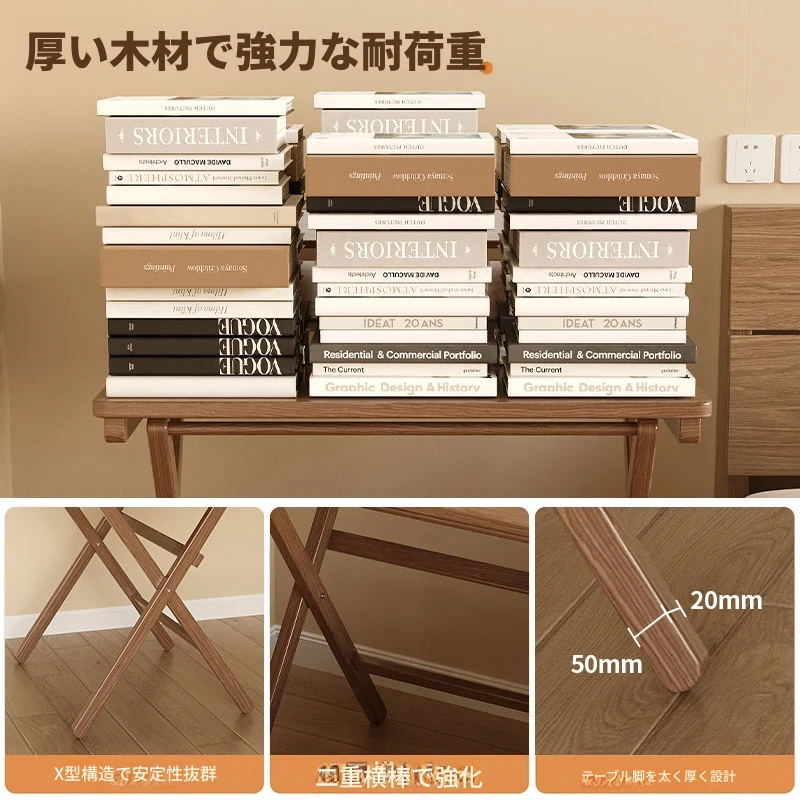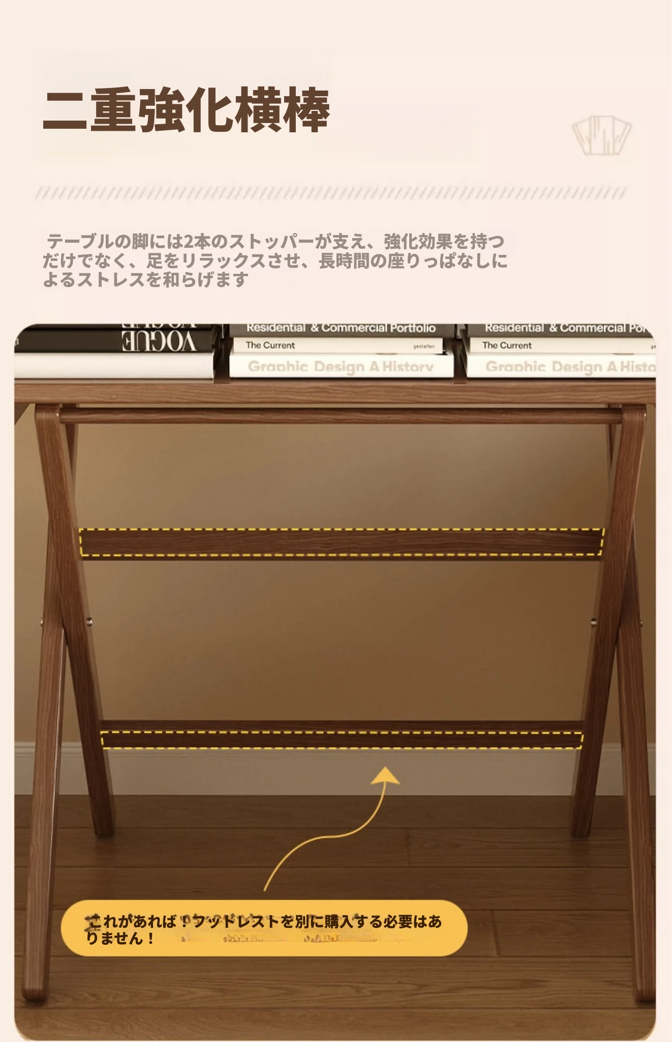 【高品質無垢材】折りたたみデスク-ナチュラル色80CM 【組み立て不要】現貨即発