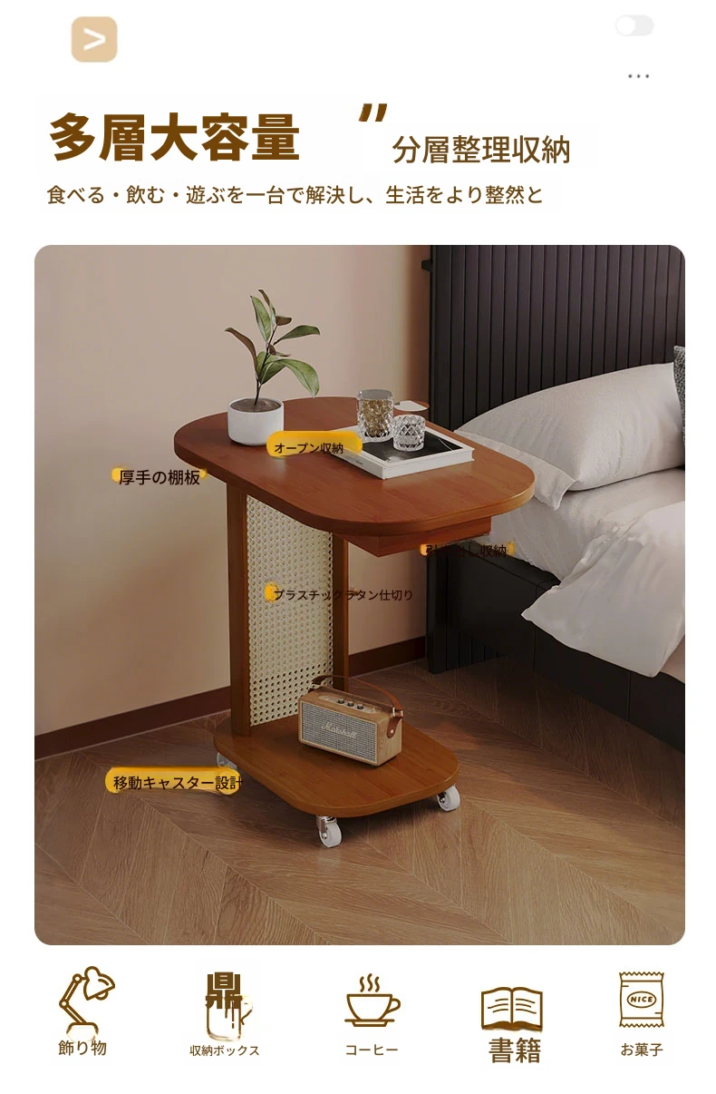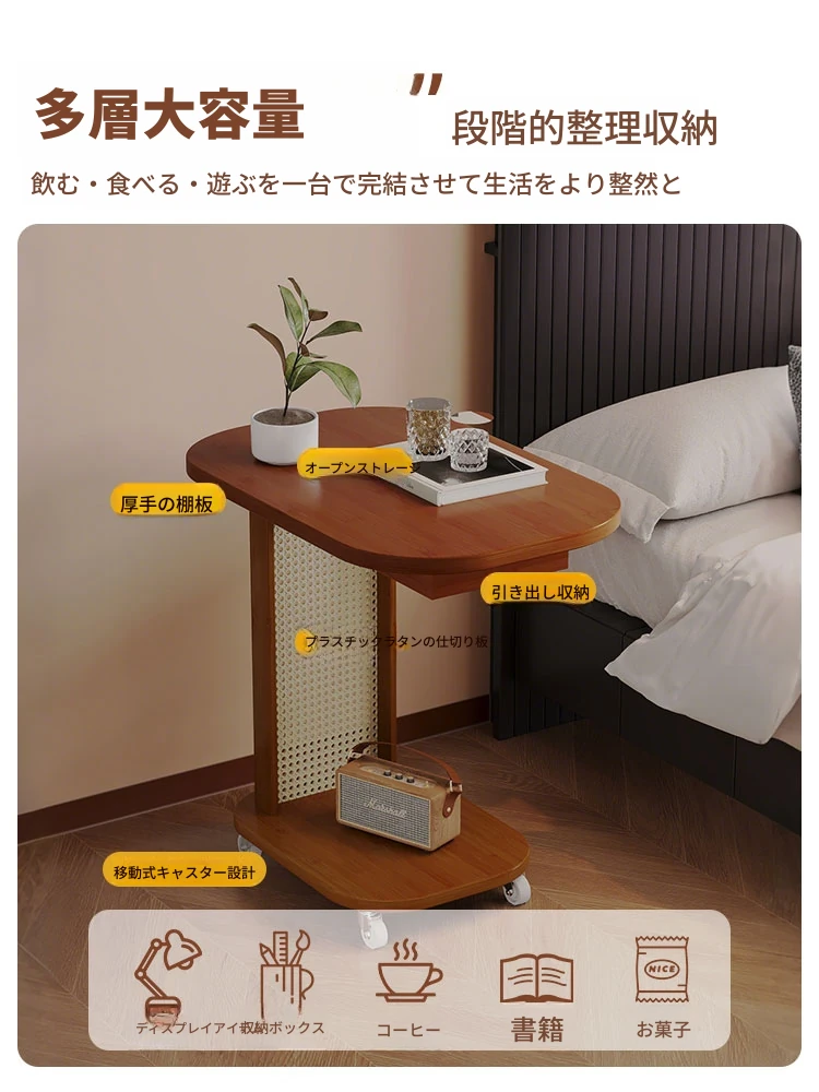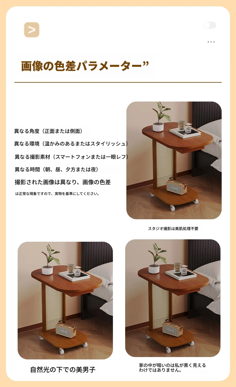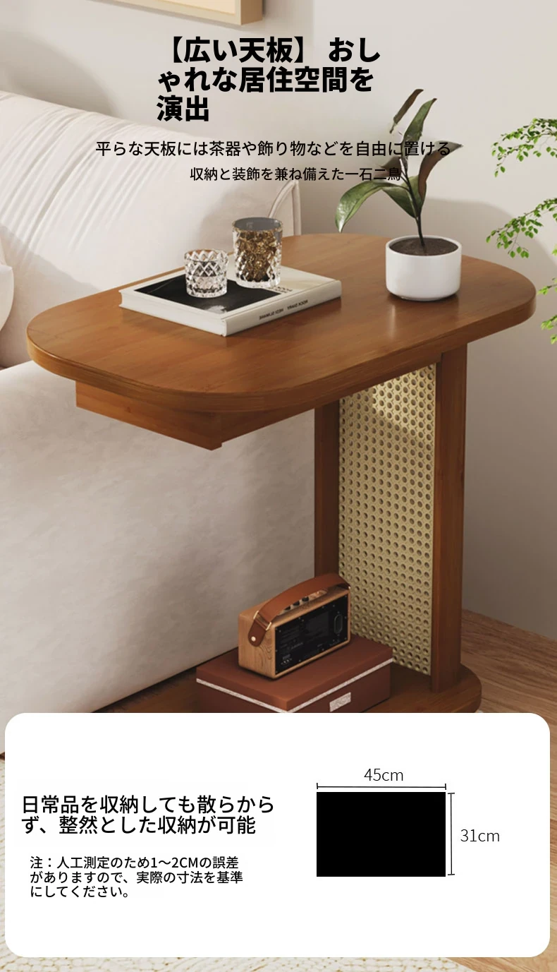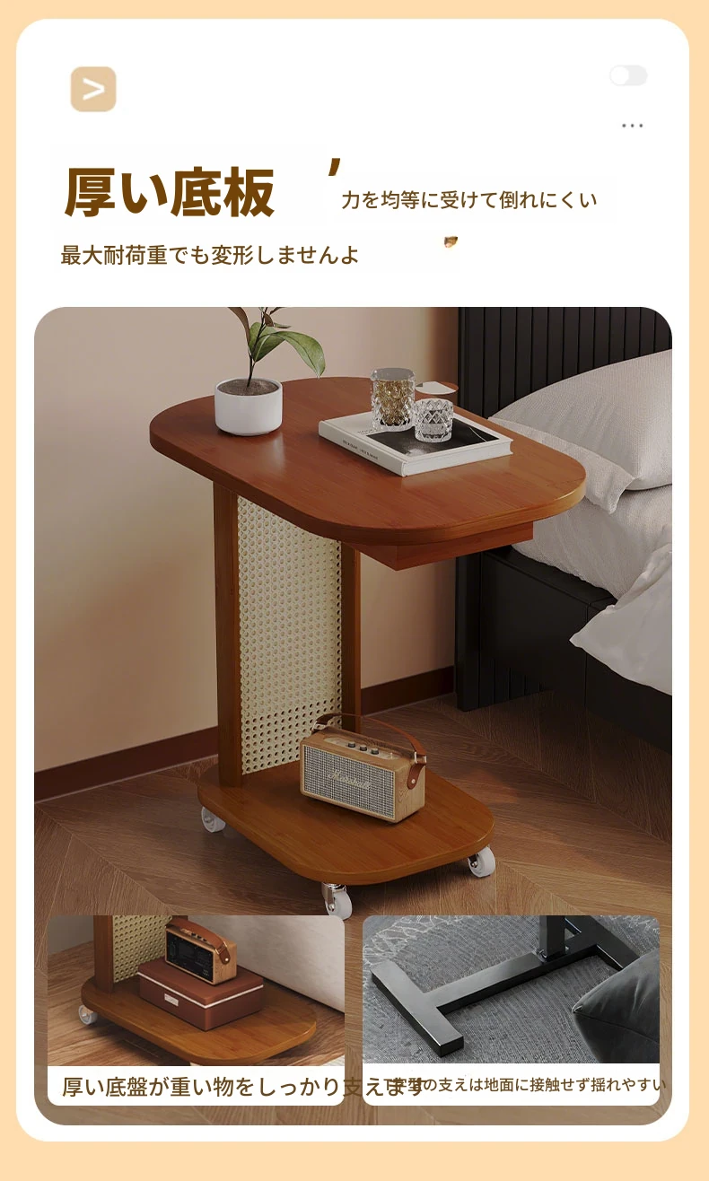天然木製のコンパクトナイトテーブル - 移動可能なベッドサイド収納ラック!シンプルでスタイリッシュなデザイン、寝室やリビングに最適な小型テーブル。ティータイムやおしゃれなインテリアにぴったり!