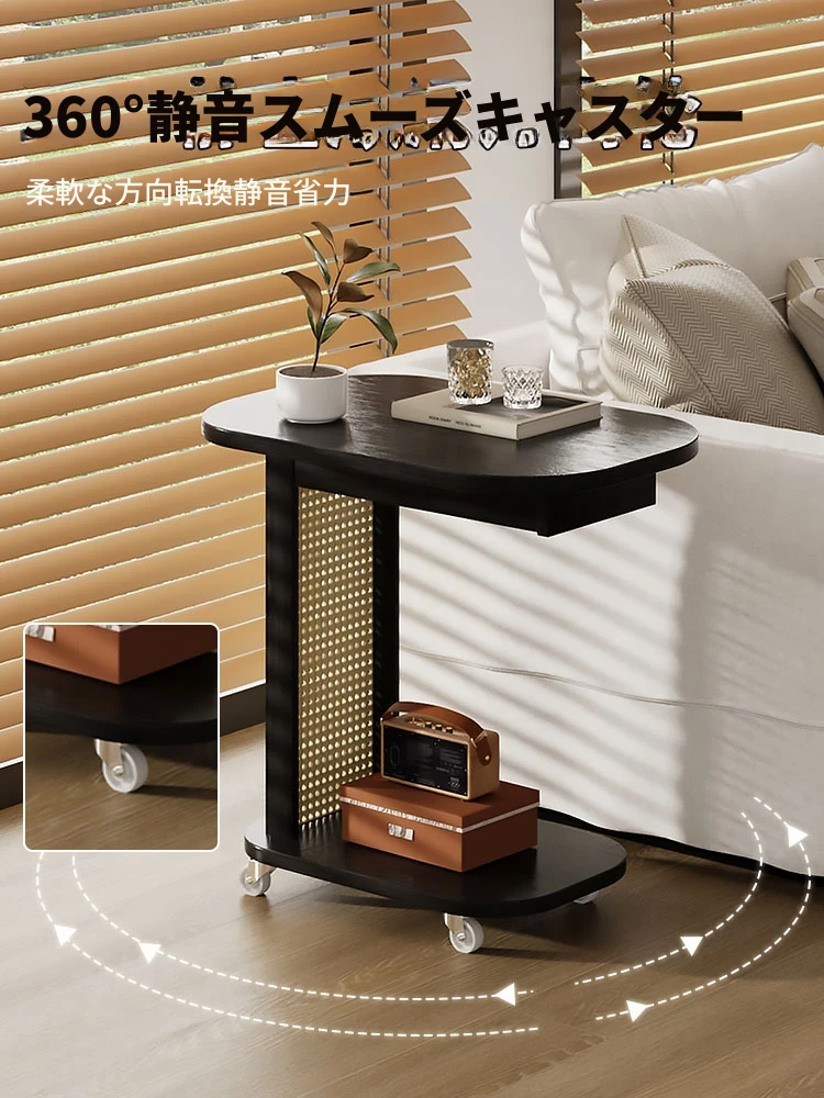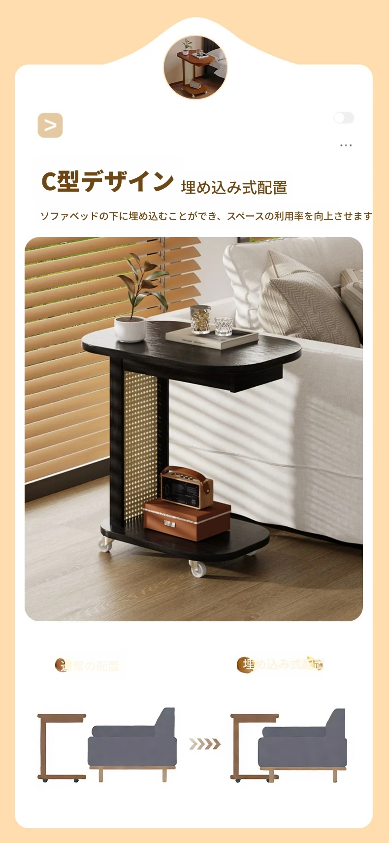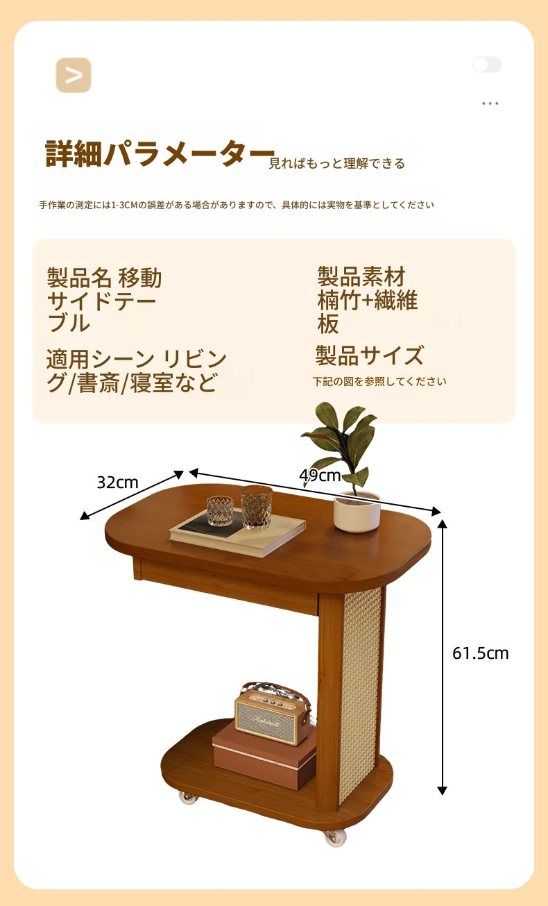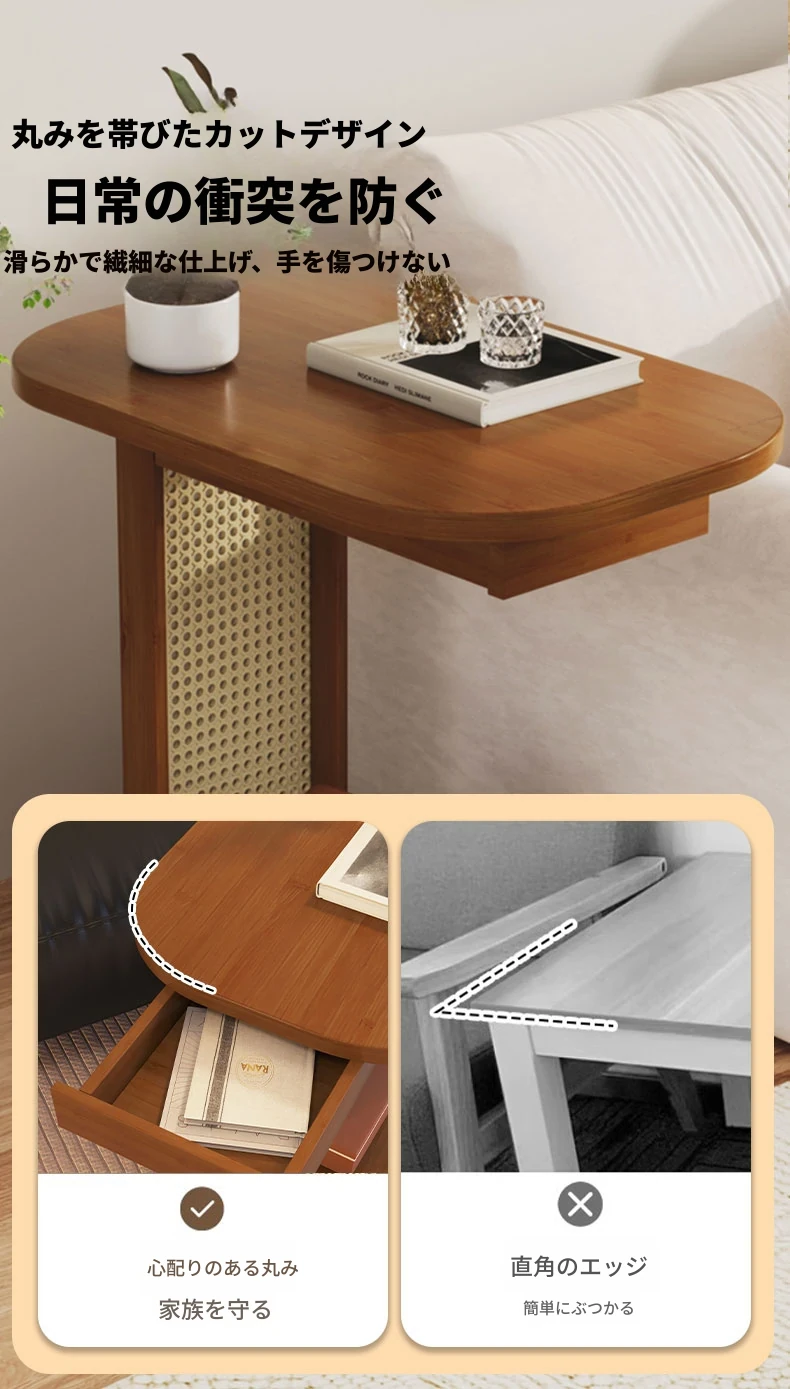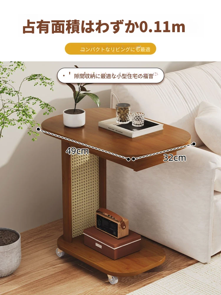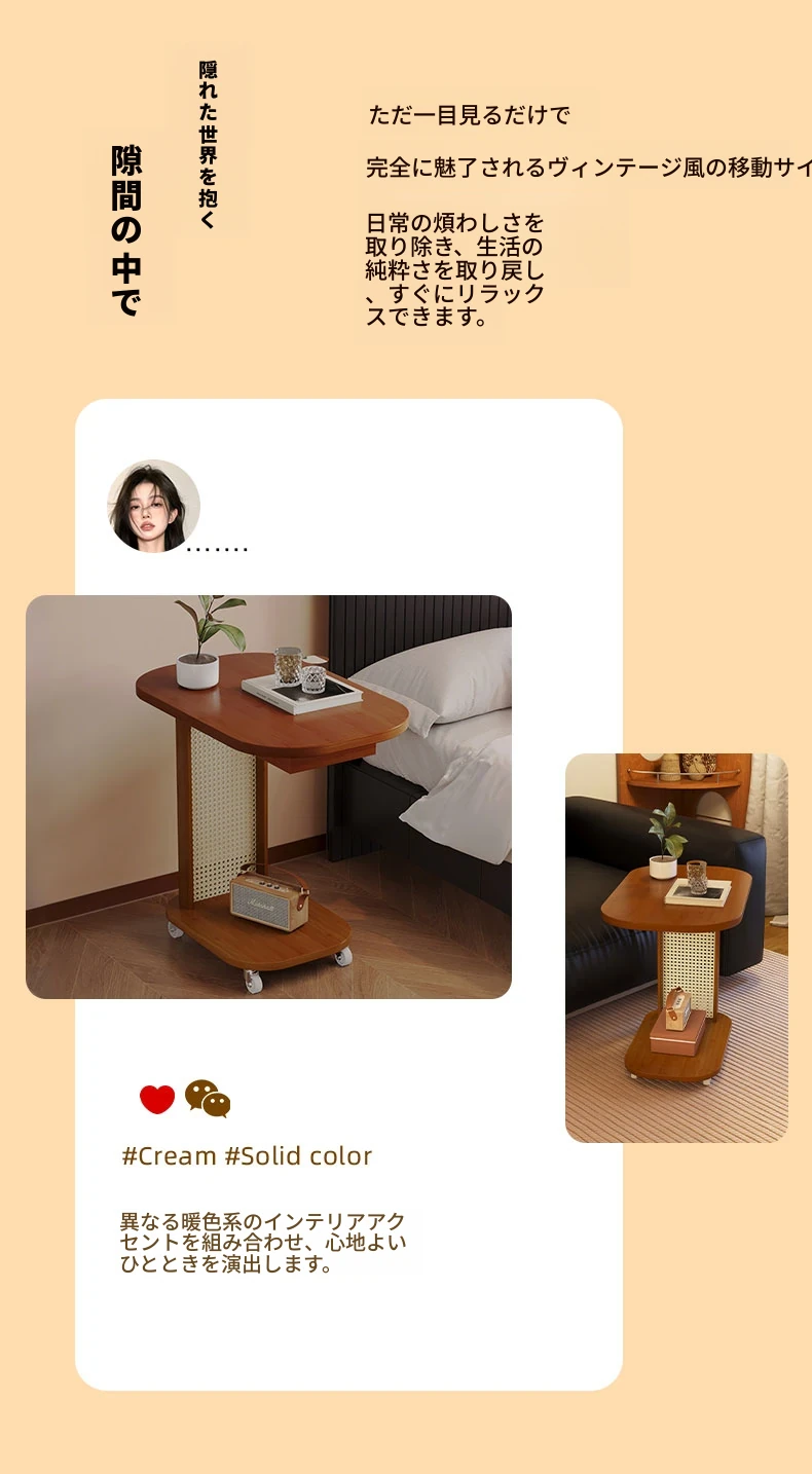 天然木製のコンパクトナイトテーブル - 移動可能なベッドサイド収納ラック!シンプルでスタイリッシュなデザイン、寝室やリビングに最適な小型テーブル。ティータイムやおしゃれなインテリアにぴったり!