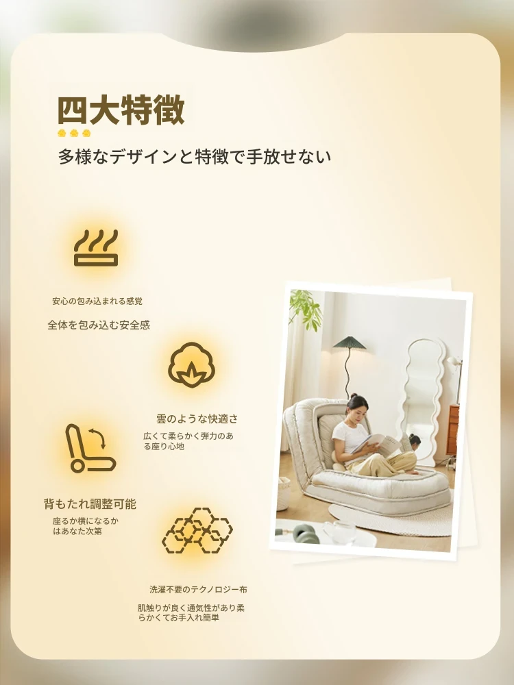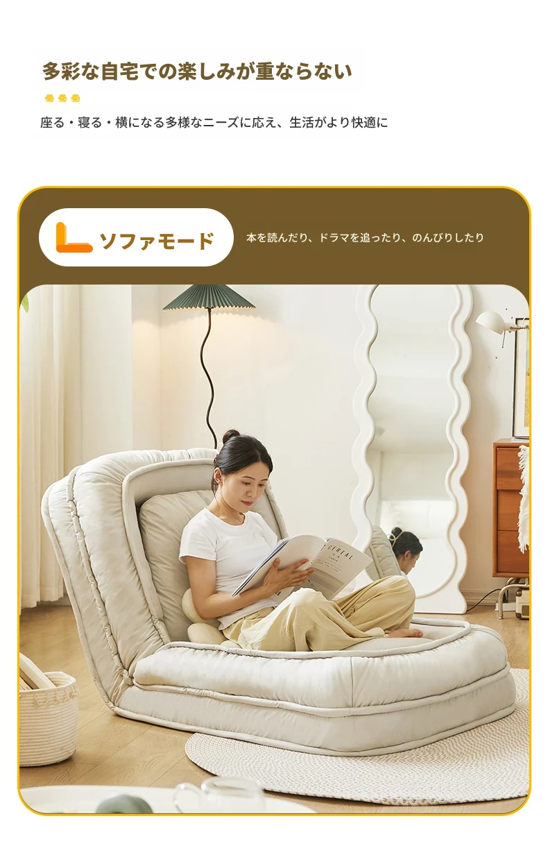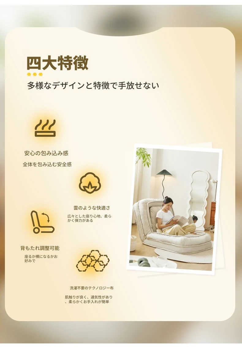 人間用犬の巣!楽々ソファ・畳スタイル一人掛け!リビングや寝室にぴったりな折りたたみソファベッド。寝ても座っても心地よい、小さなソファでリラックスした時間を楽しもう!
