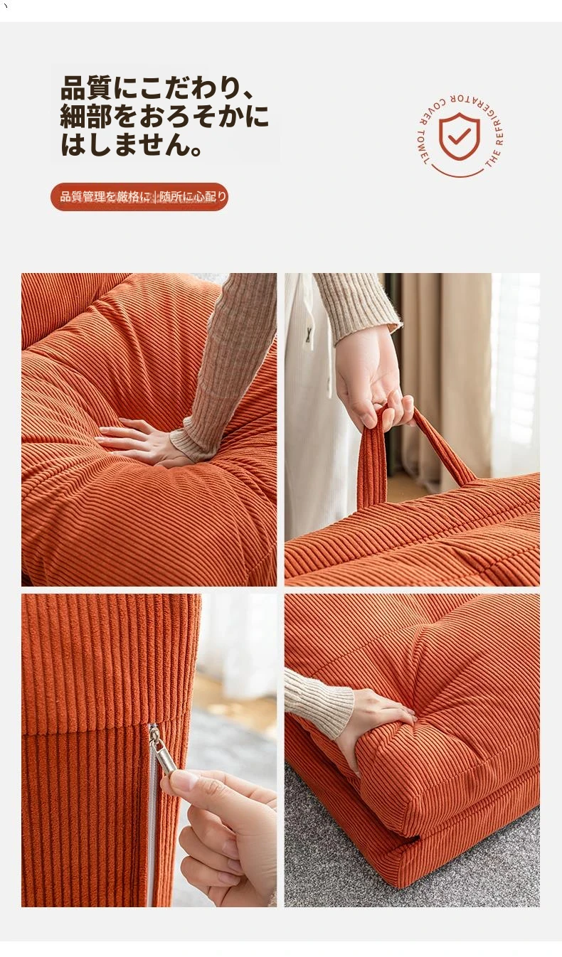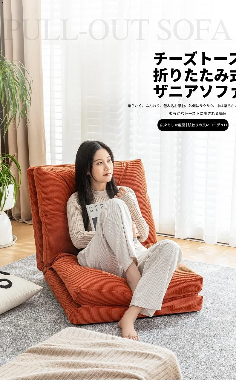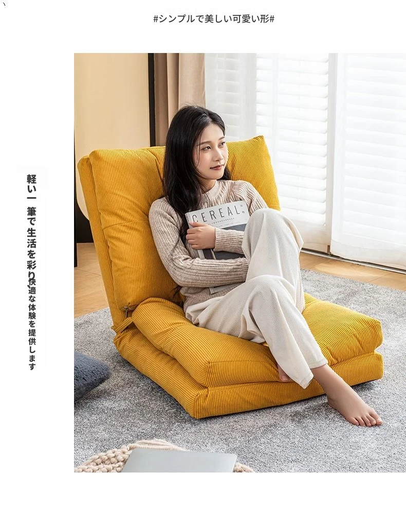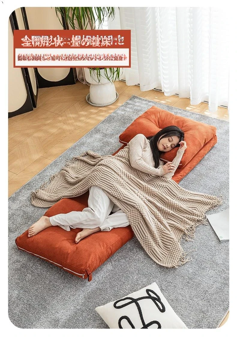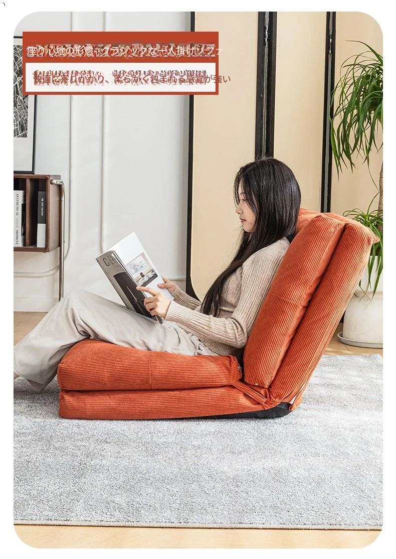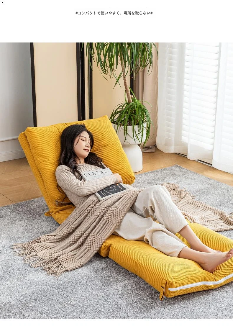 リラックスできる!寝転んでも快適な日本式ソファ、折りたたみ式マットレス付き、洗えるカバーの窓辺用チェア。寝室や畳スペースにもぴったりなコンパクトサイズ!