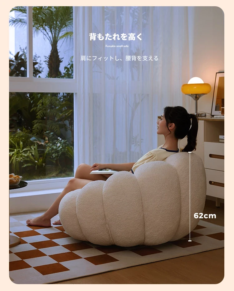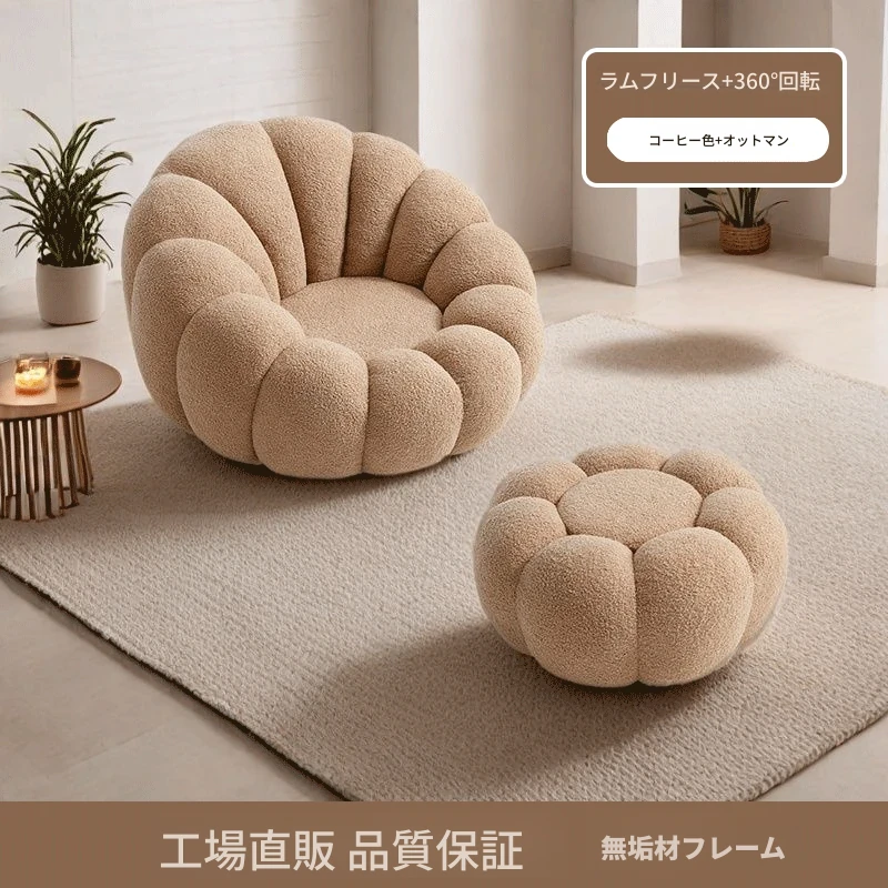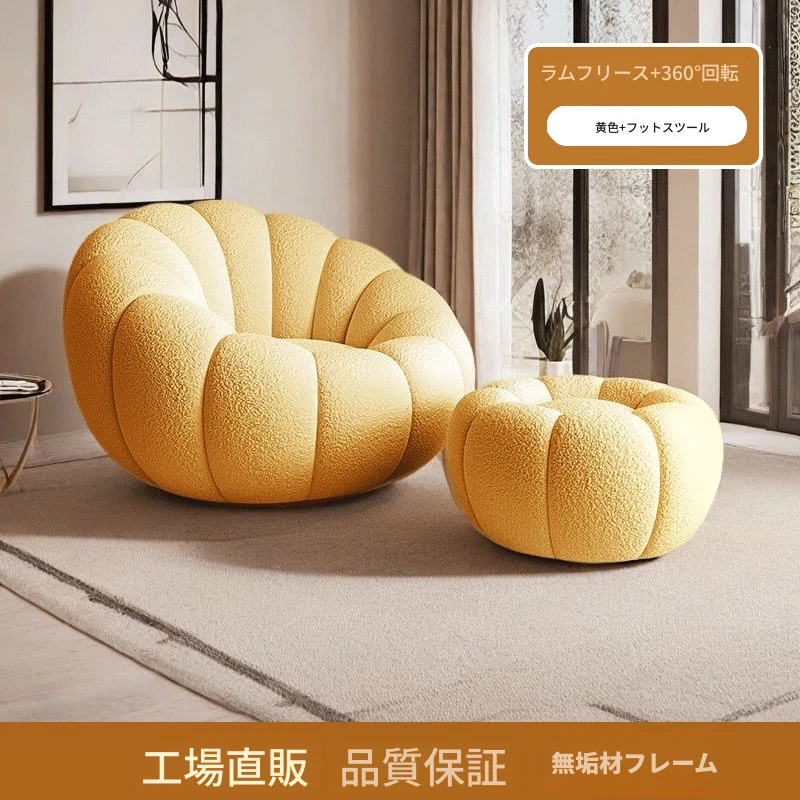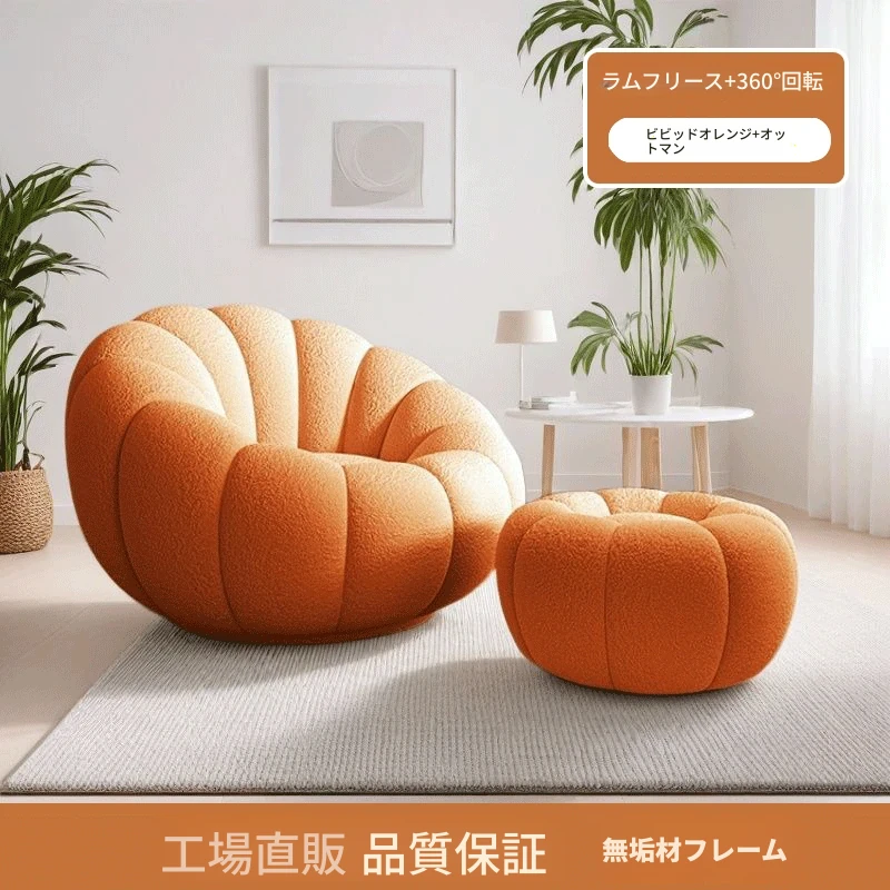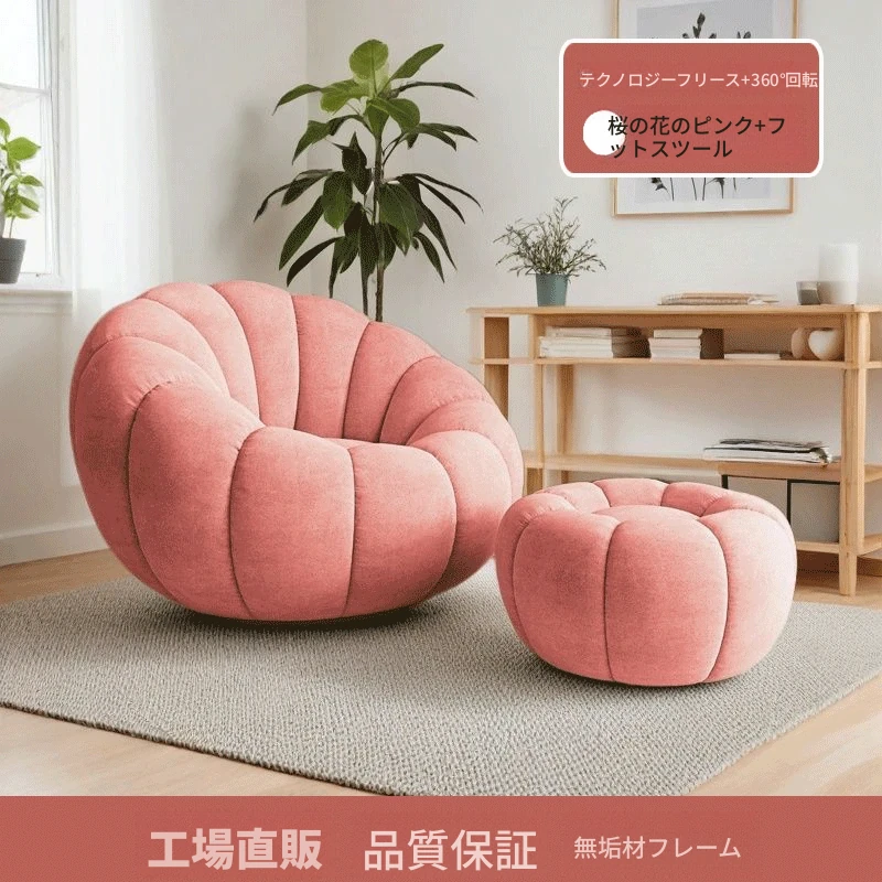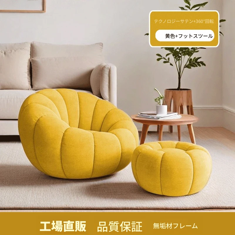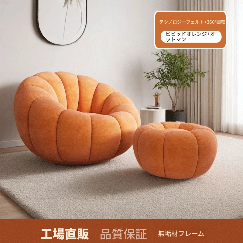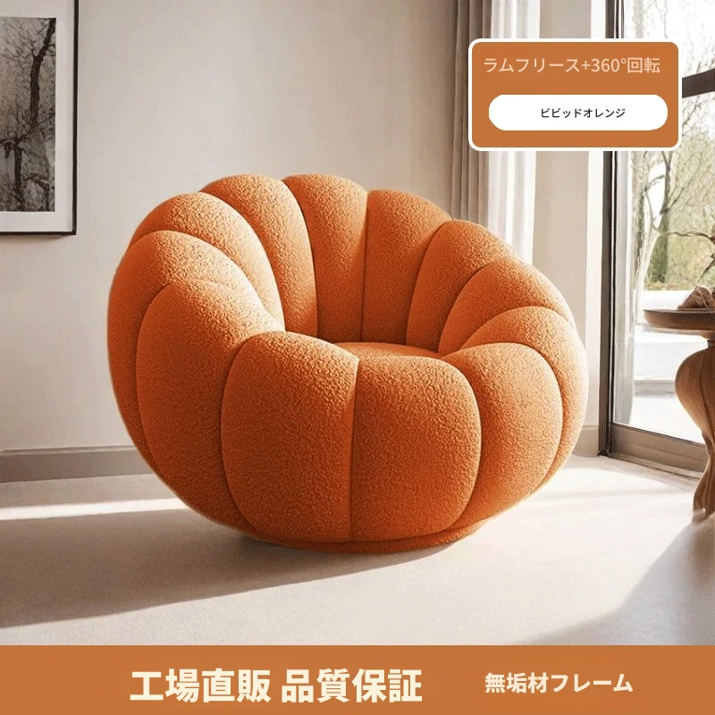くつろぎの南瓜型ソファ!タタミで使える回転式リクライニングチェア。狭い部屋にもぴったりの一人用ビーズソファ。バルコニーや寝室でリラックスするのに最適です!