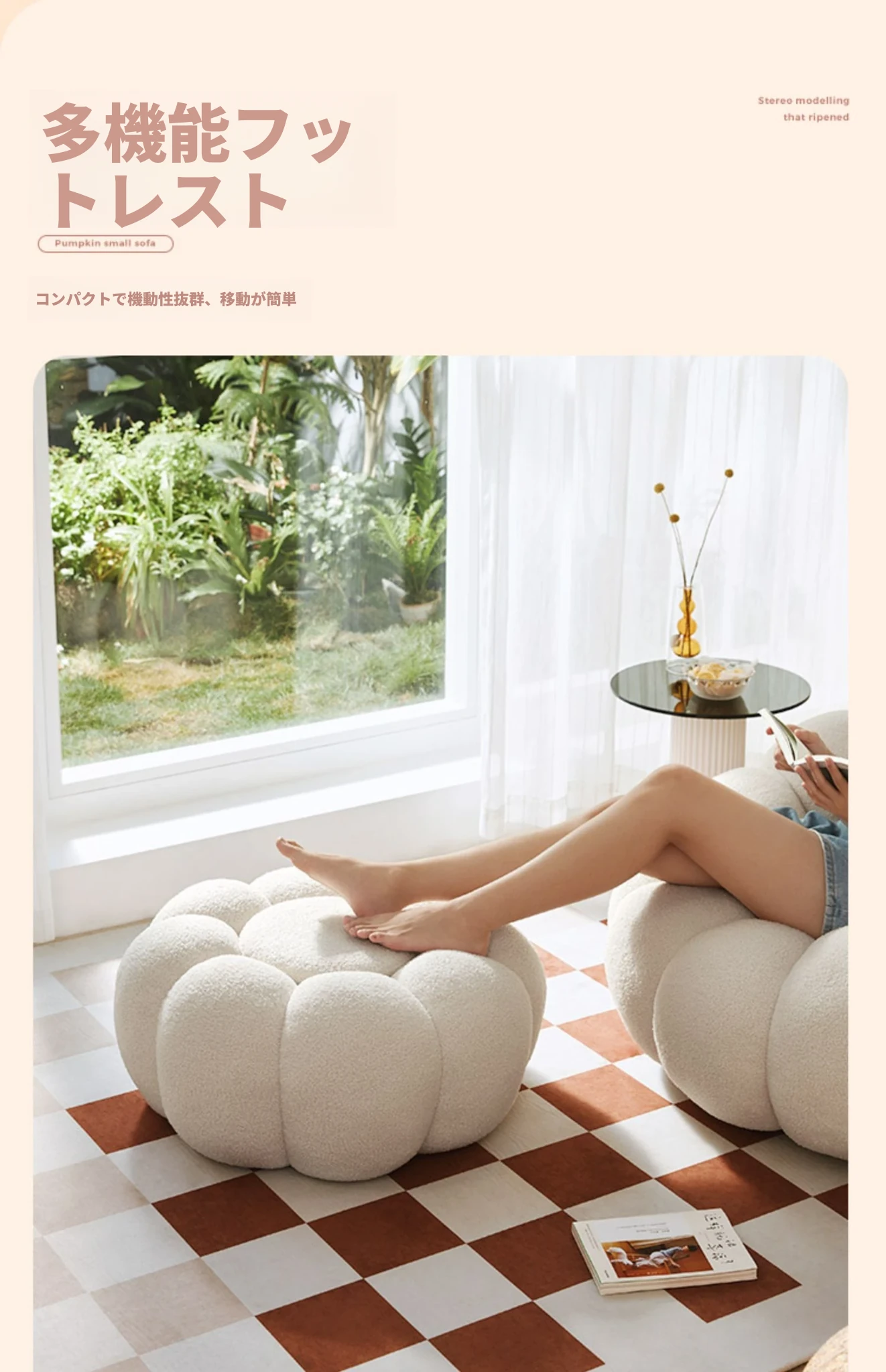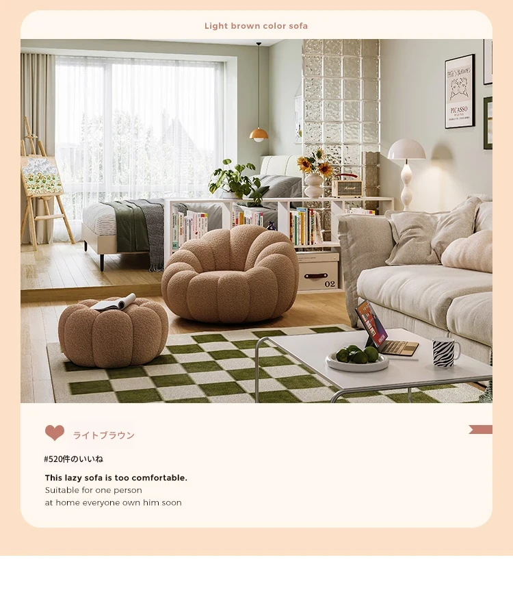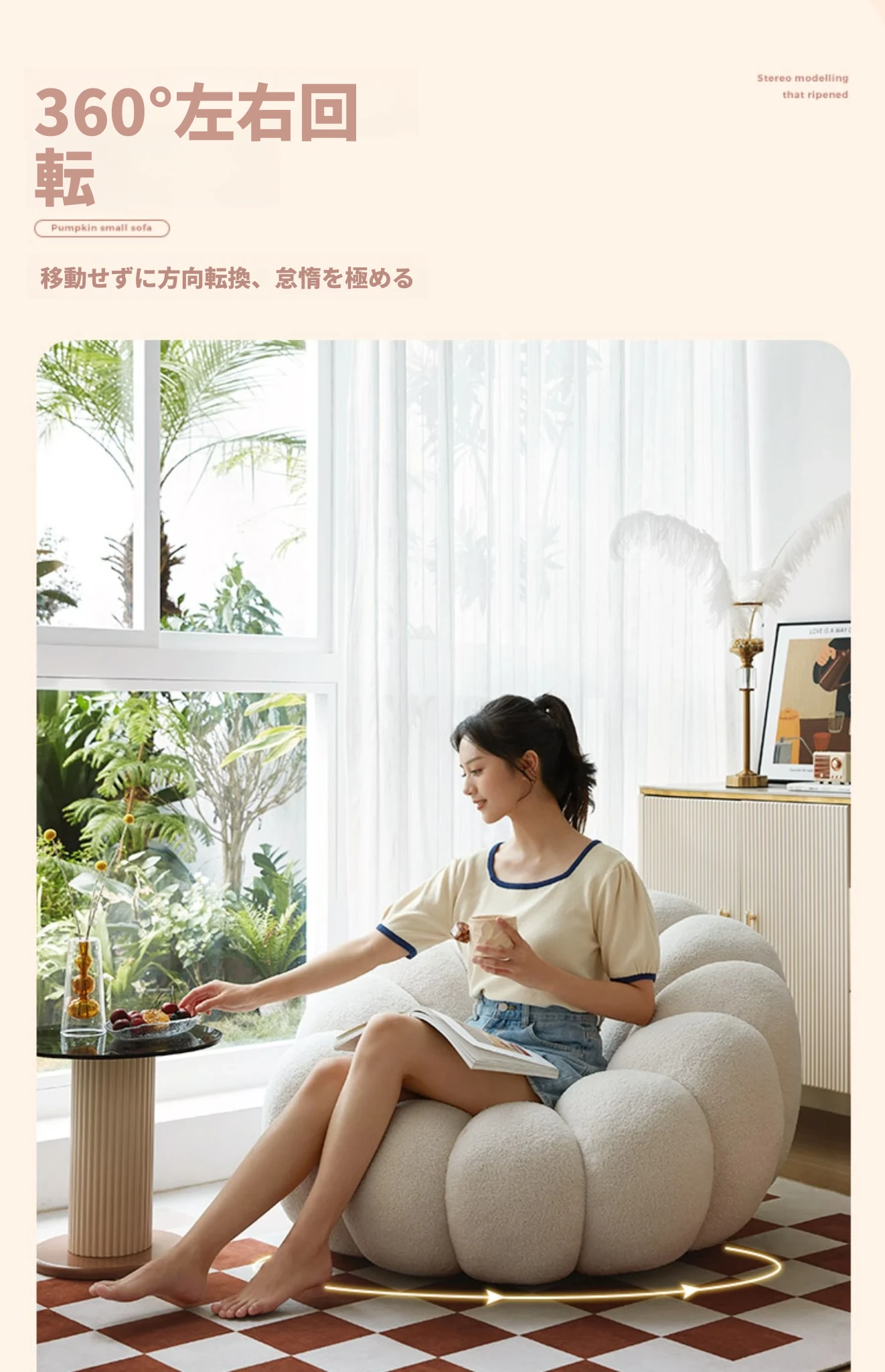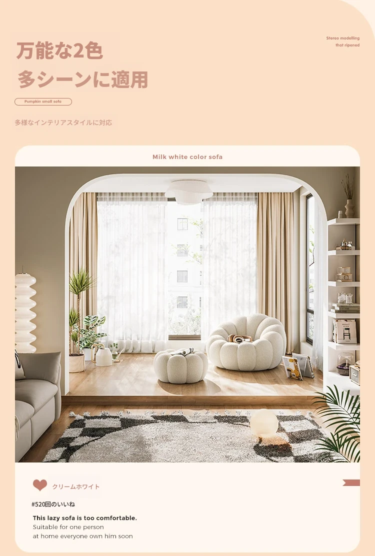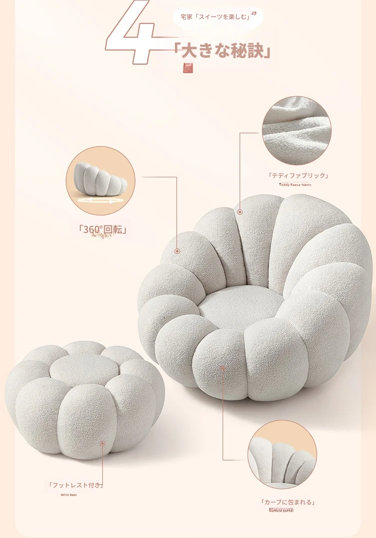 くつろぎの南瓜型ソファ!タタミで使える回転式リクライニングチェア。狭い部屋にもぴったりの一人用ビーズソファ。バルコニーや寝室でリラックスするのに最適です!