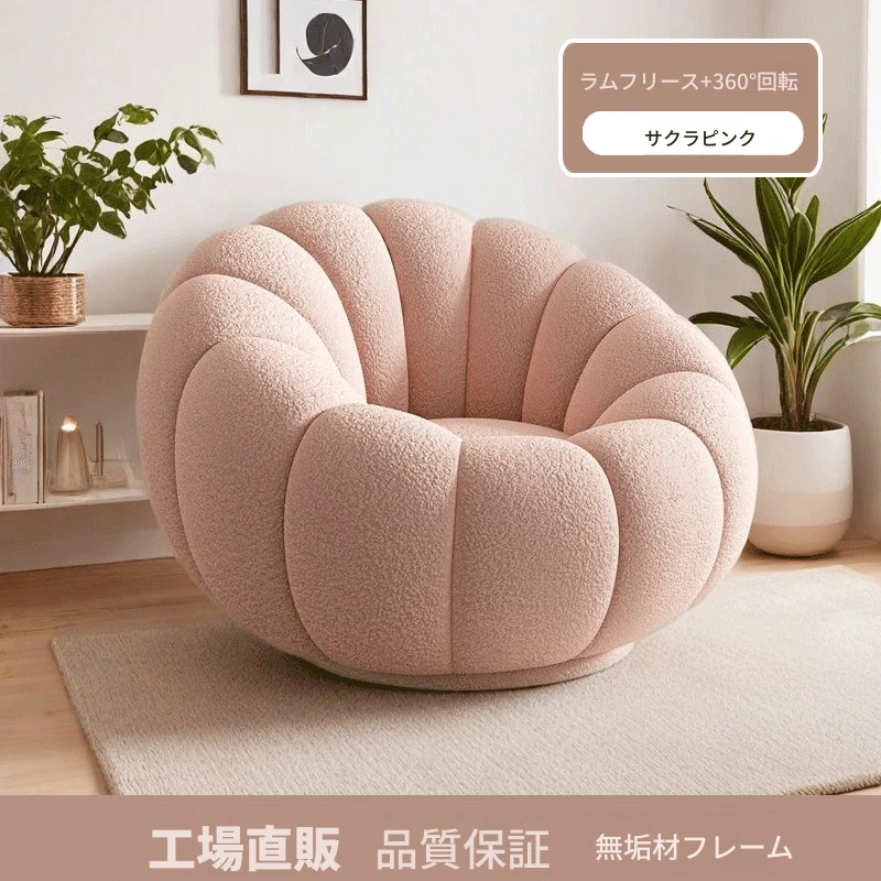 無垢材フレーム【ピンク肌触りの良いラムスキン】360°回転