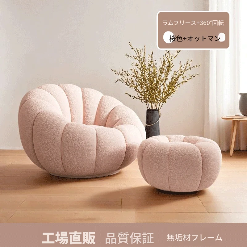 無垢材フレーム【ピンク肌触りの良いラムスキン+フットレスト】360°回転