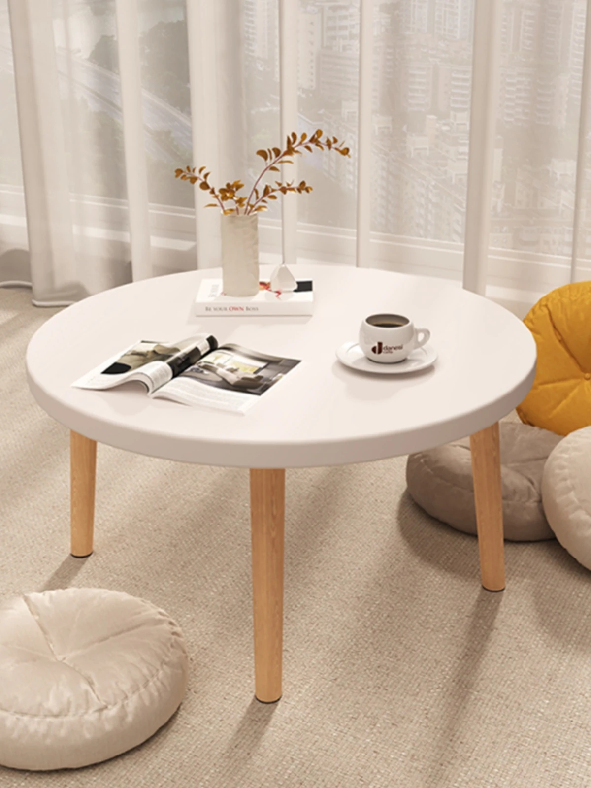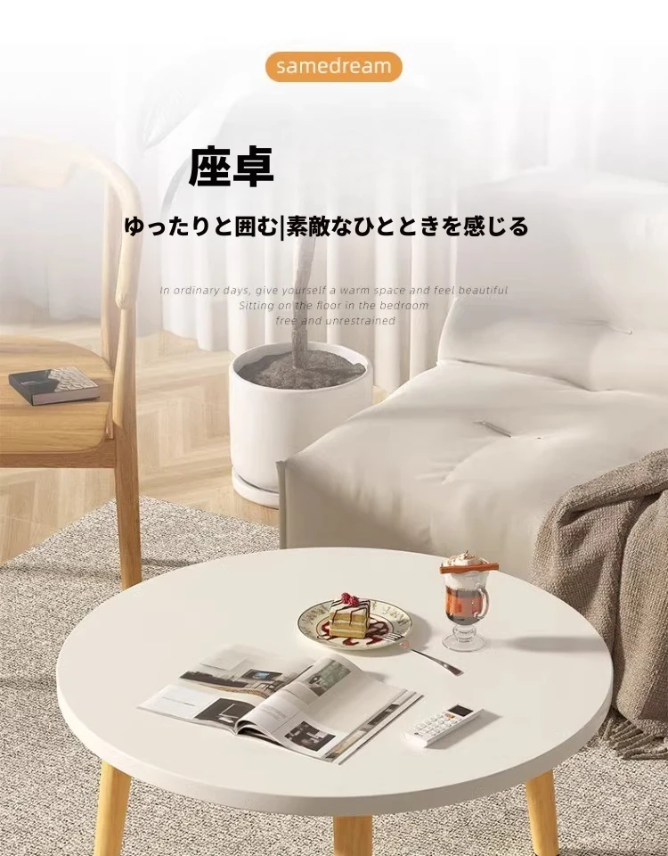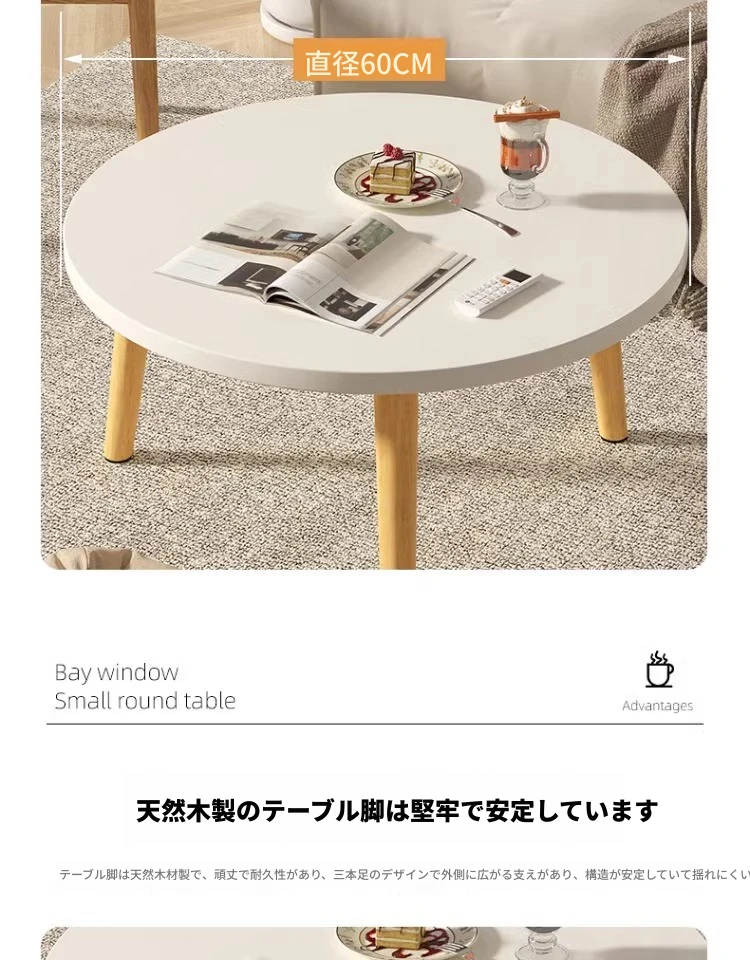 かわいい窓辺の小さなテーブル!円形デザインで、寝室や小さなスペースにもぴったり。畳や床に座って使える、使い勝手抜群の茶卓です。おしゃれなインテリアとしてもおすすめ!