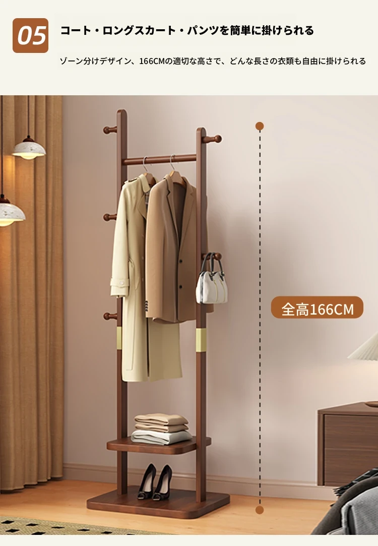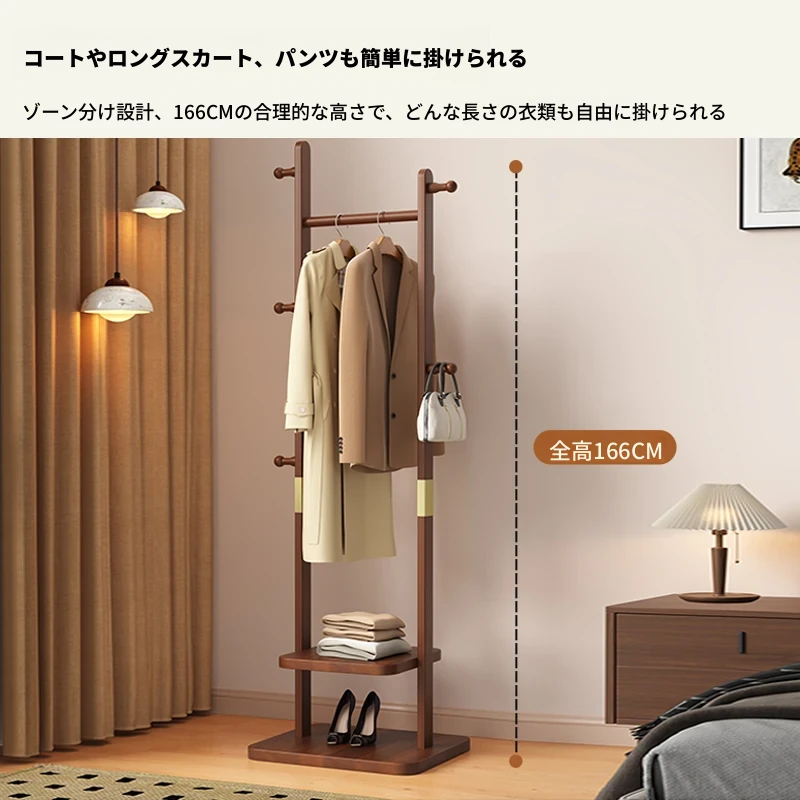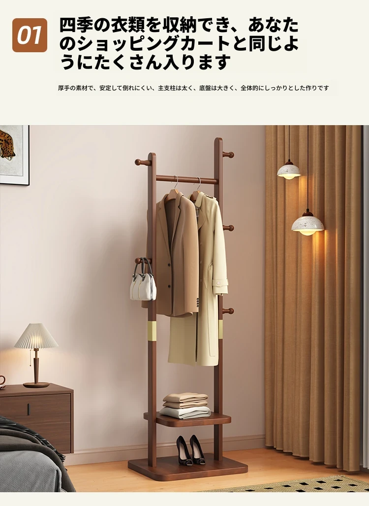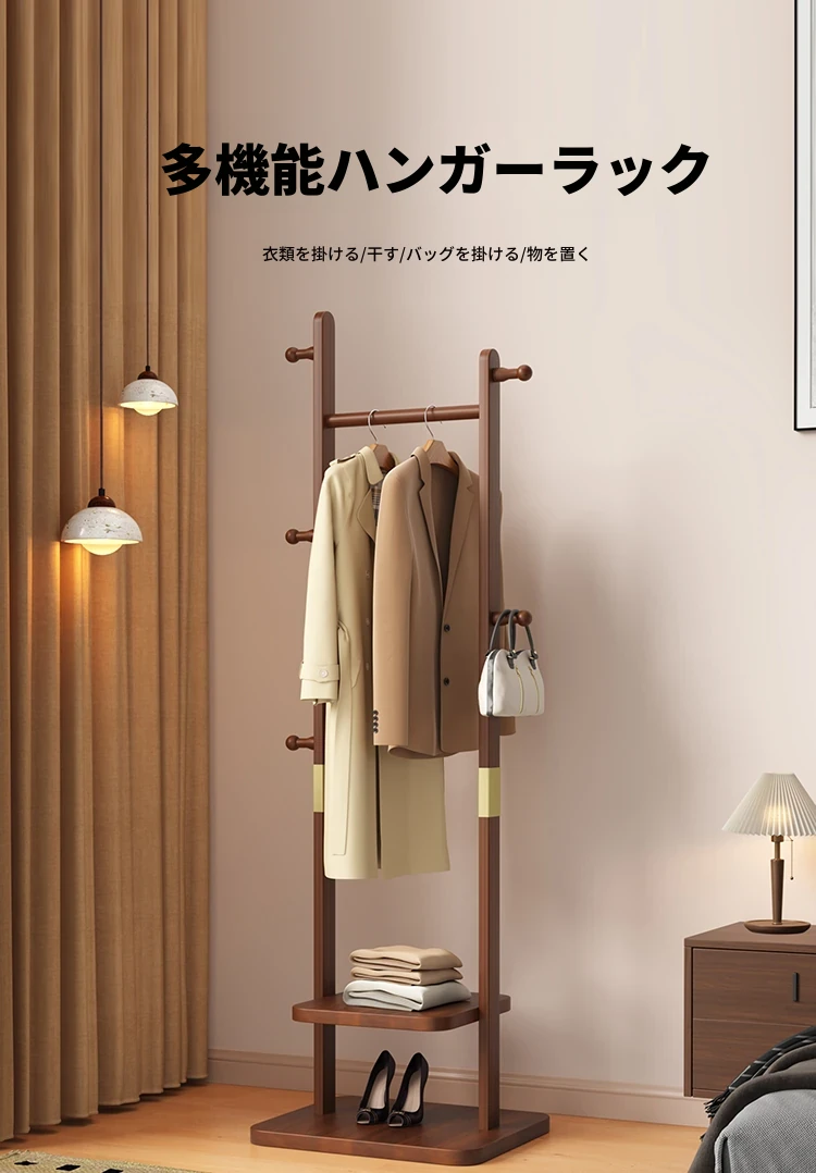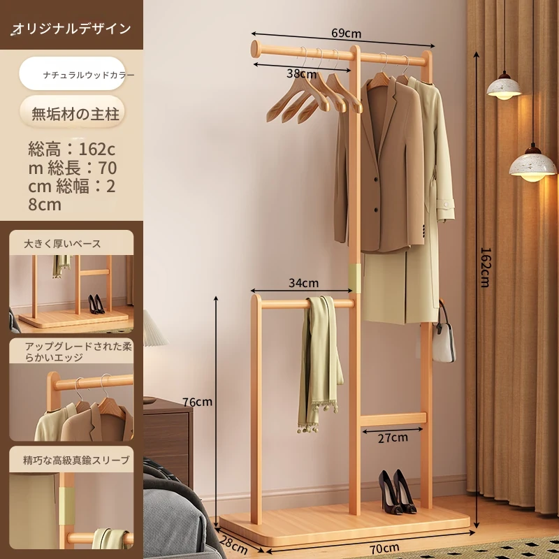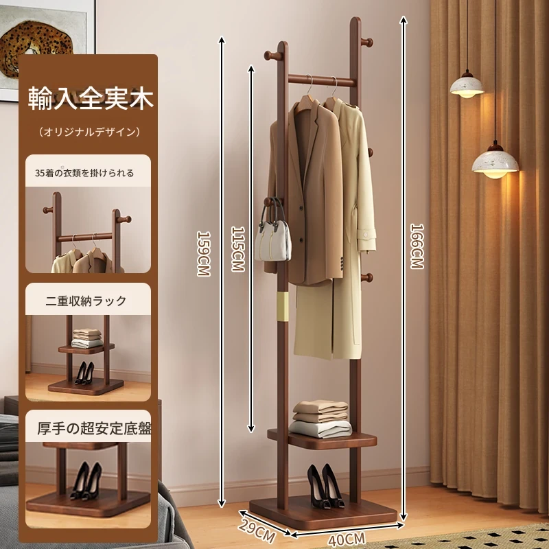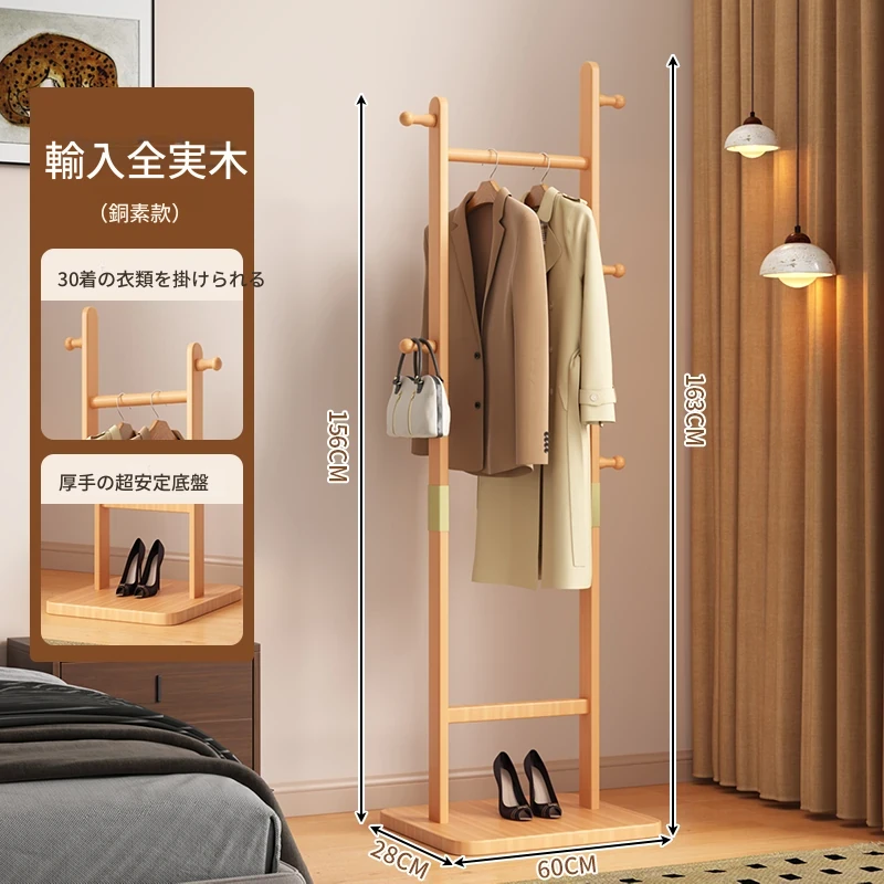 【輸入全ての無垢材】ナチュラル色【35着の衣服を掛けられます】
