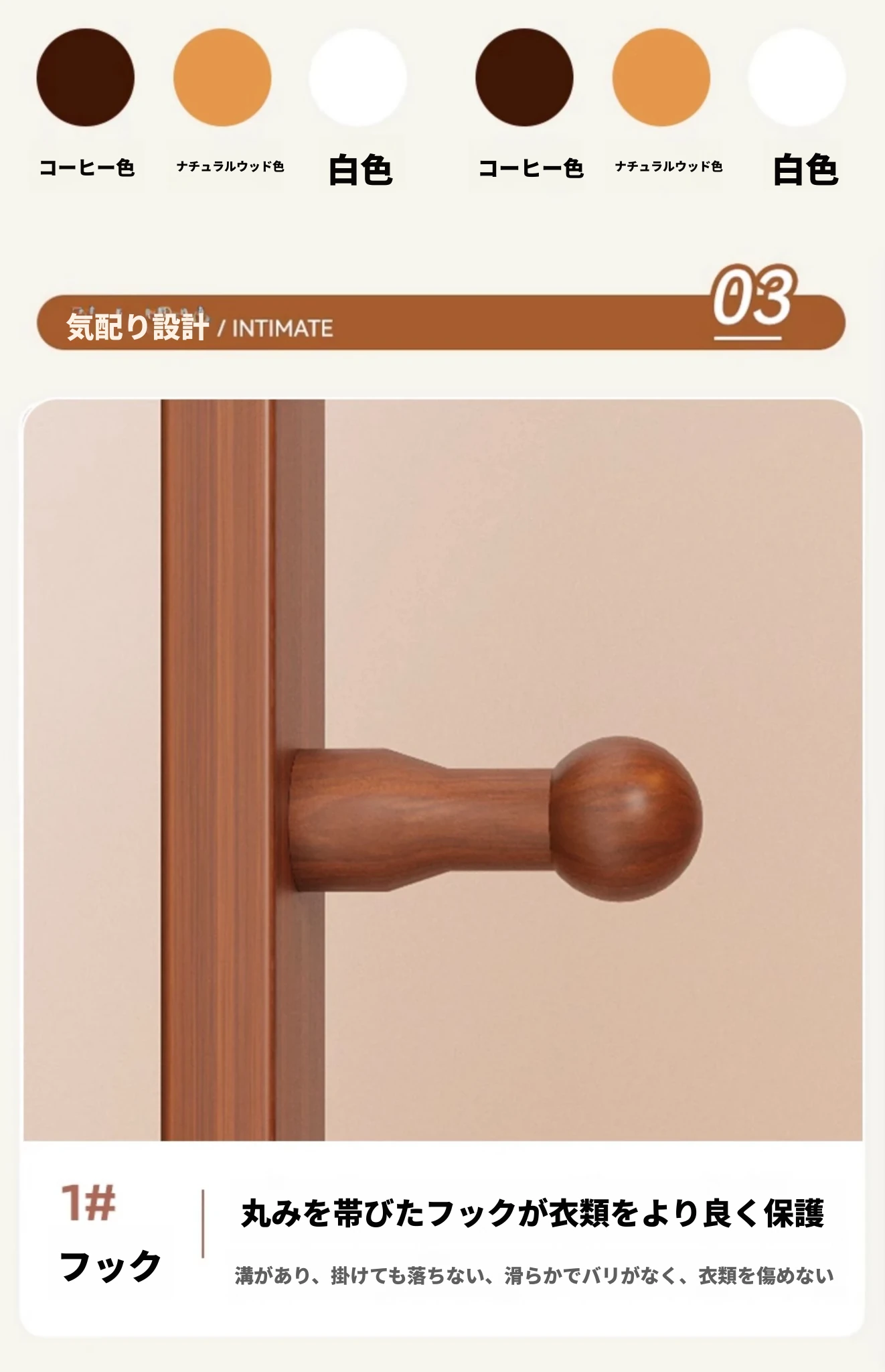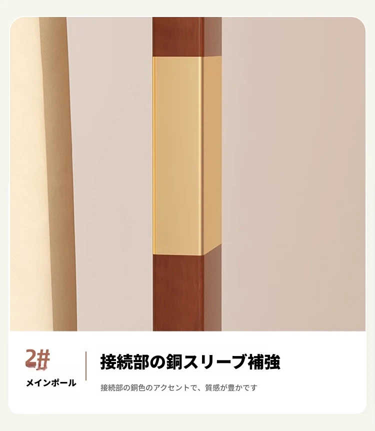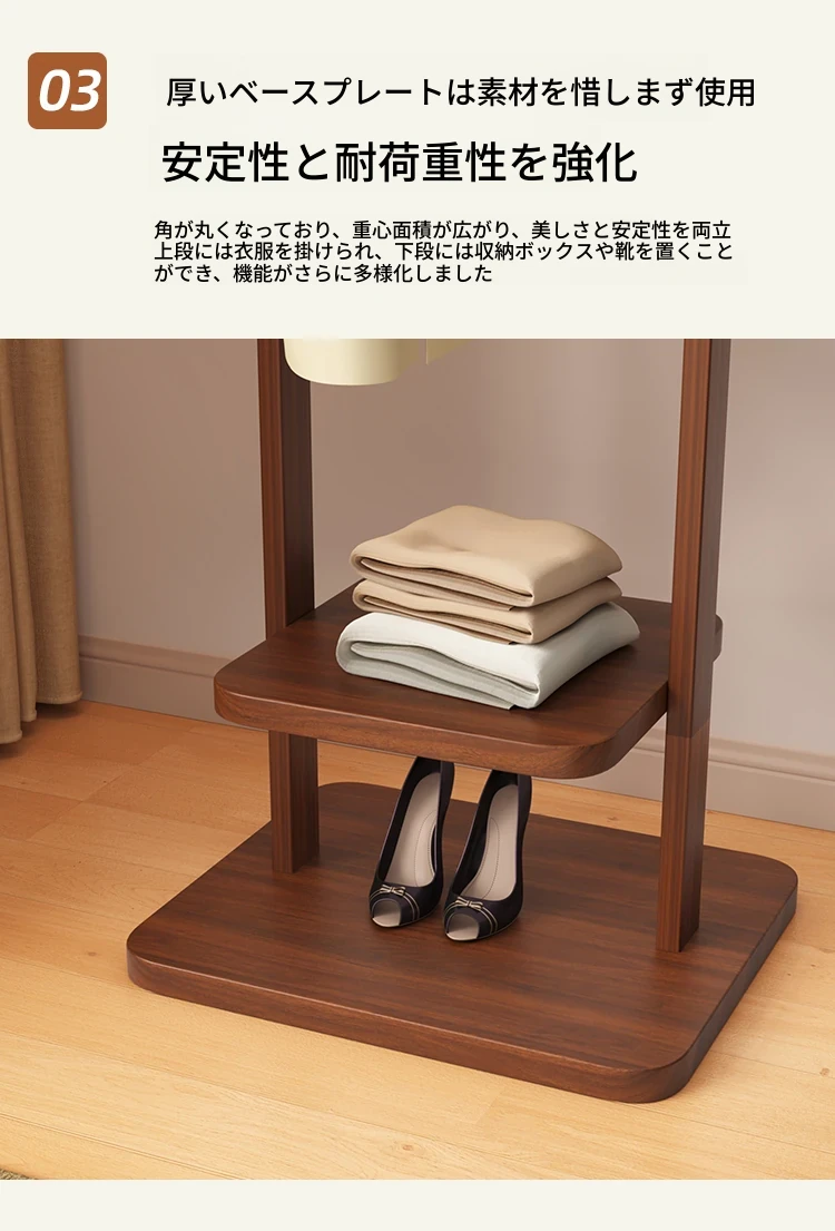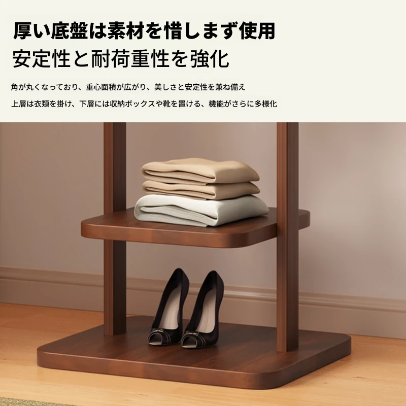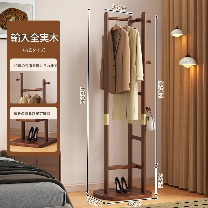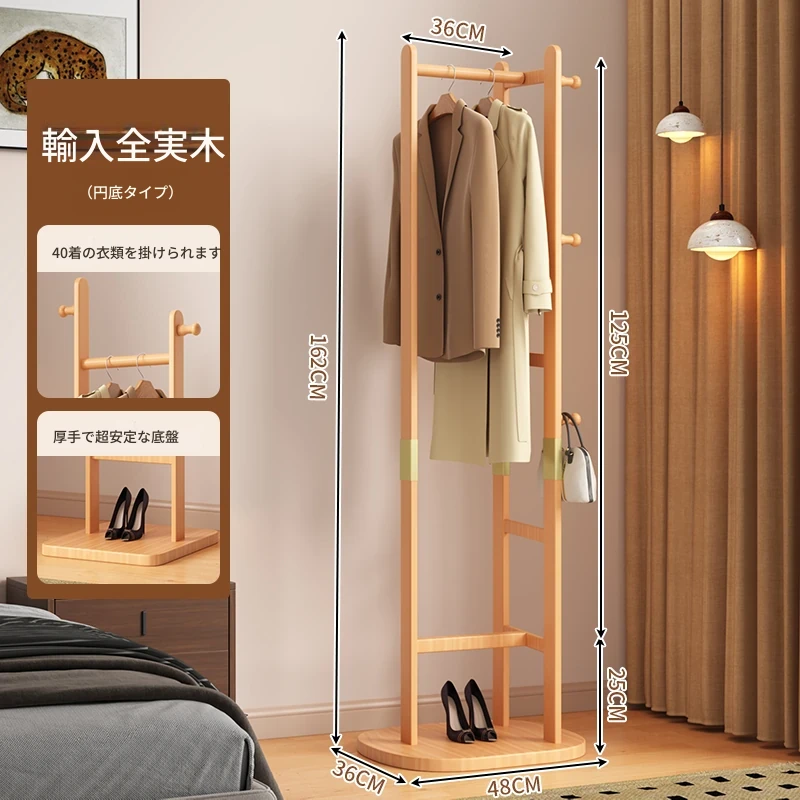 【輸入全ての無垢材-丸底タイプ】ナチュラル色【40着の衣服を掛けられます】