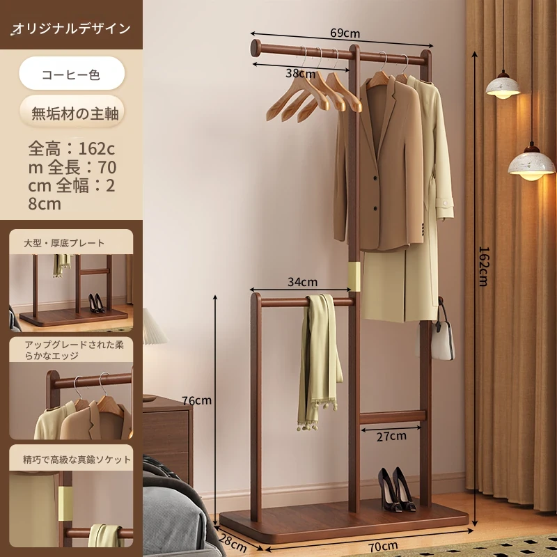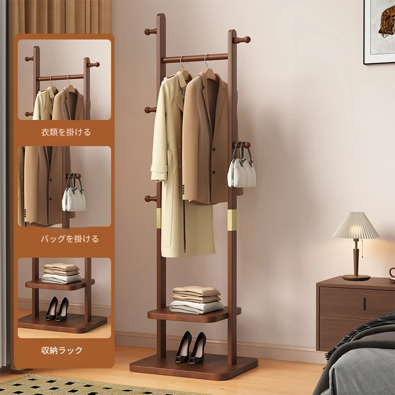 【輸入全ての無垢材-オリジナルデザイン】コーヒー色【60着の衣服を掛けられます】