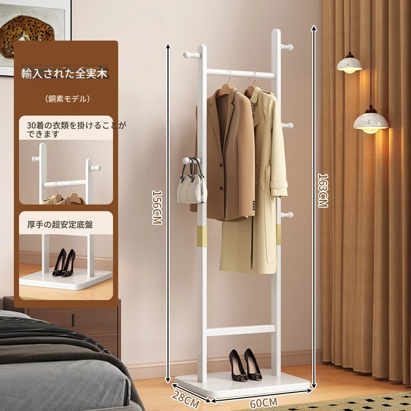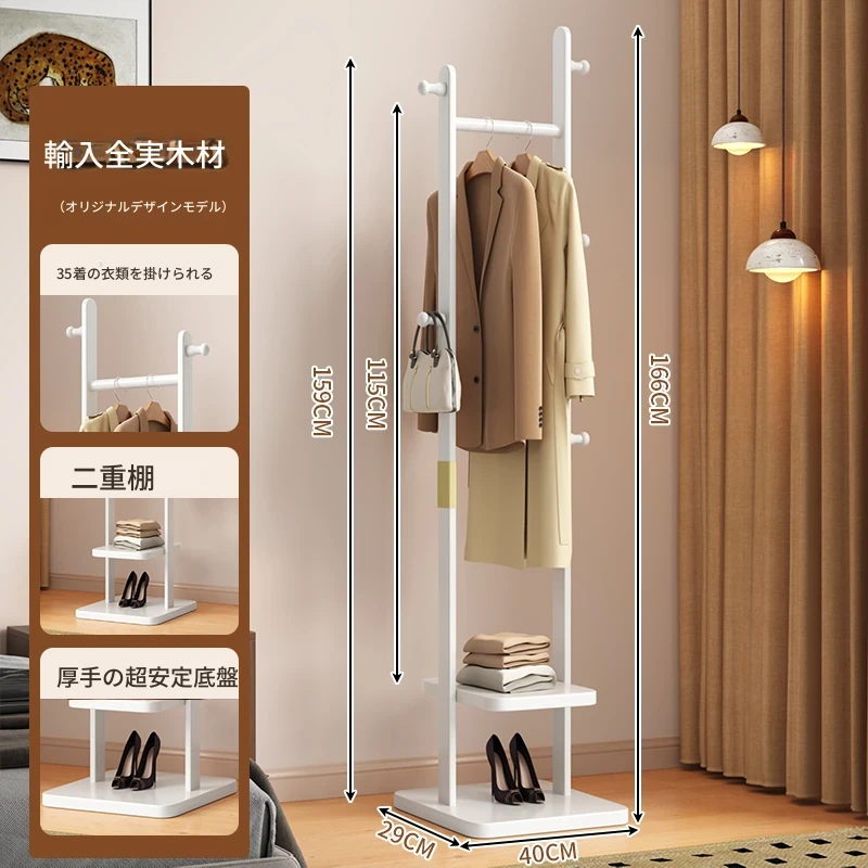 メイン画像モデル⭐【輸入全ての無垢材】白色【35着の衣服を掛けられます】