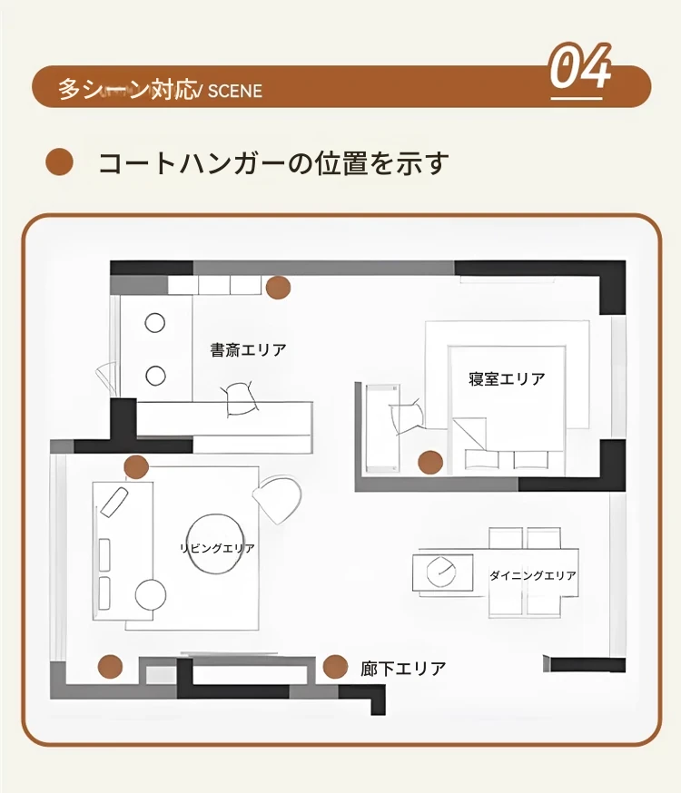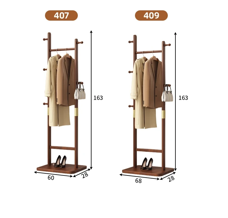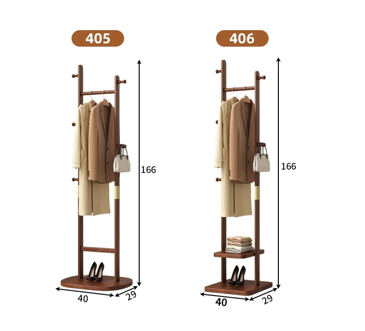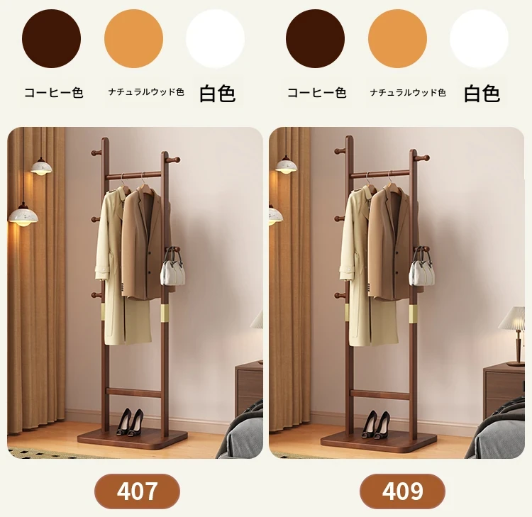 【輸入全ての無垢材-丸底タイプ】コーヒー色【40着の衣服を掛けられます】