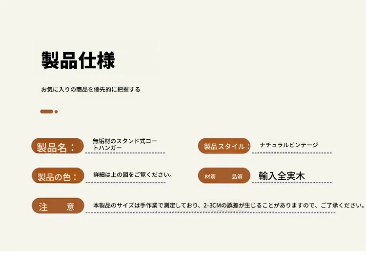 【輸入全ての無垢材-オリジナルデザイン】ナチュラル色【60着の衣服を掛けられます】