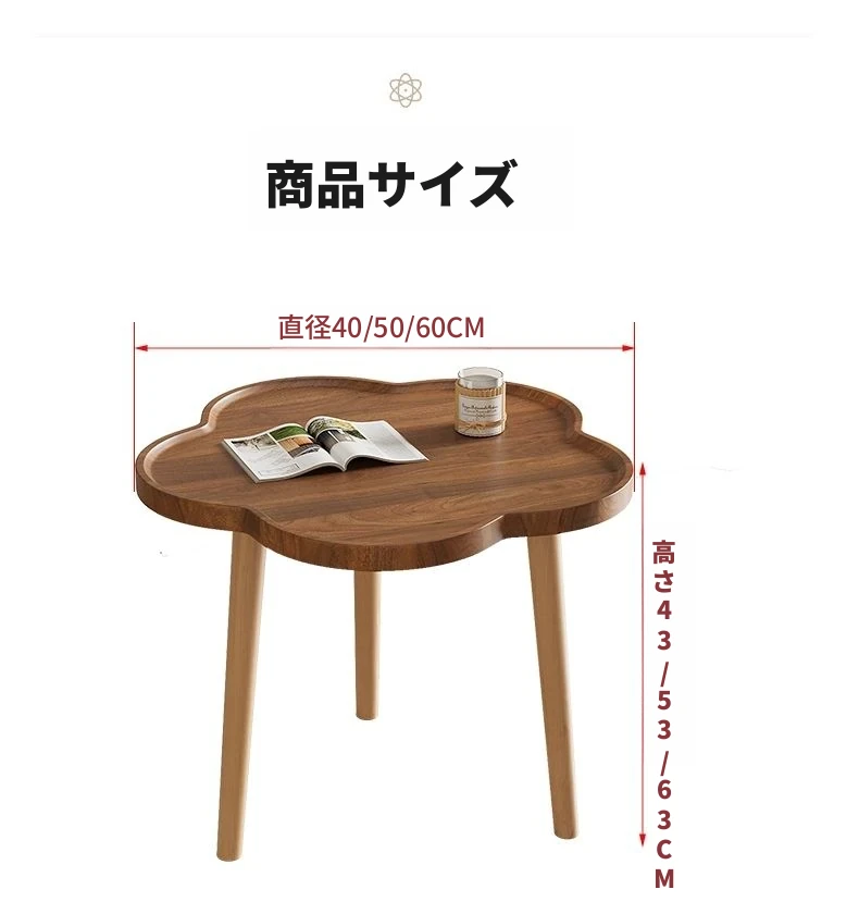 五つの花びら 40*42cm【暖白】無垢材レッグ ブナ⭐天板厚30mm