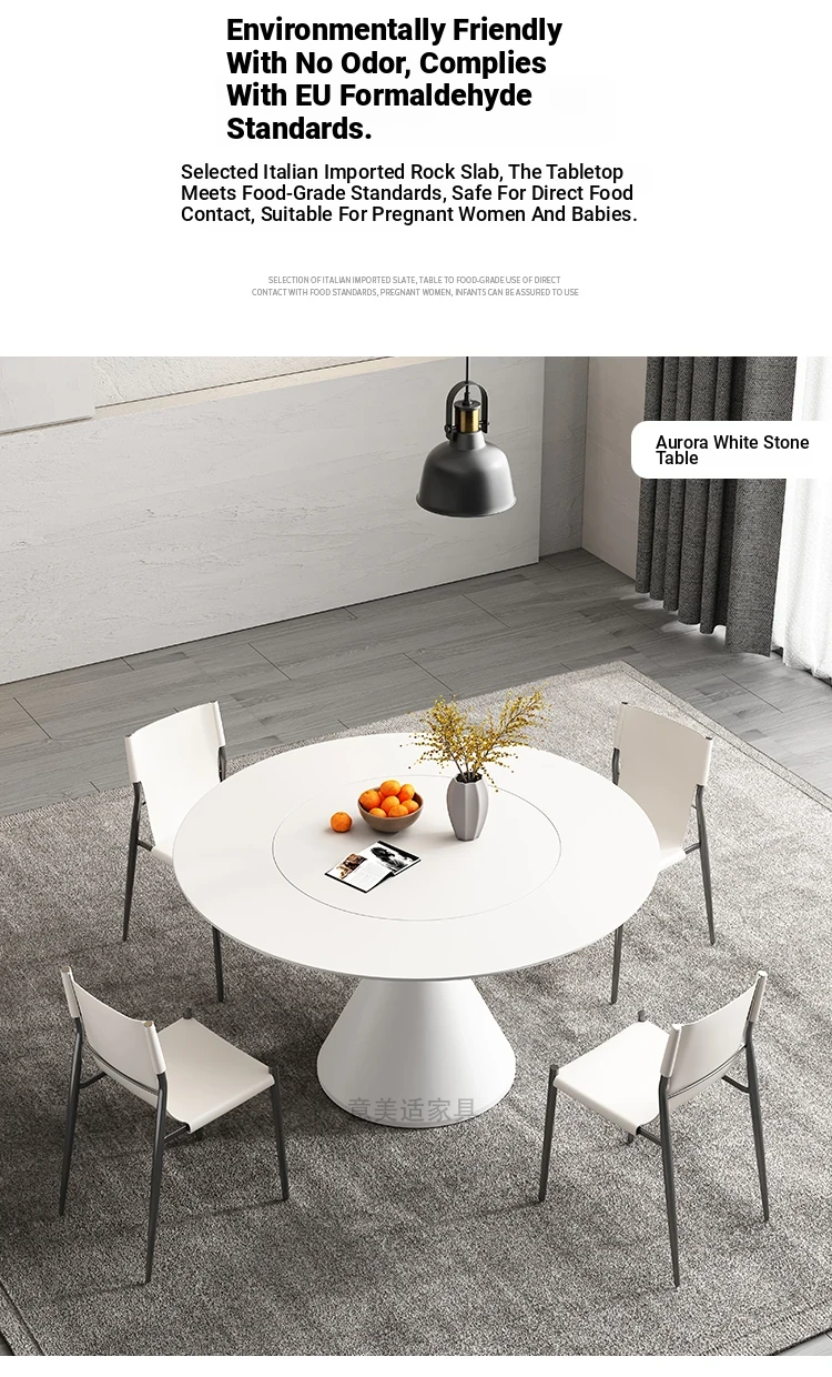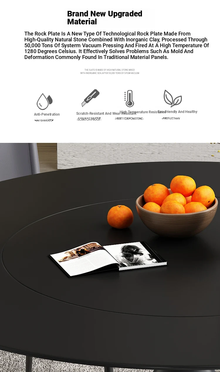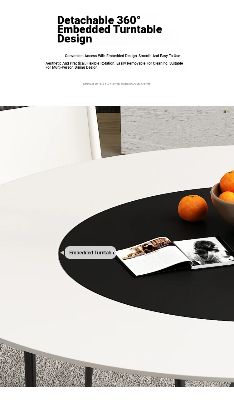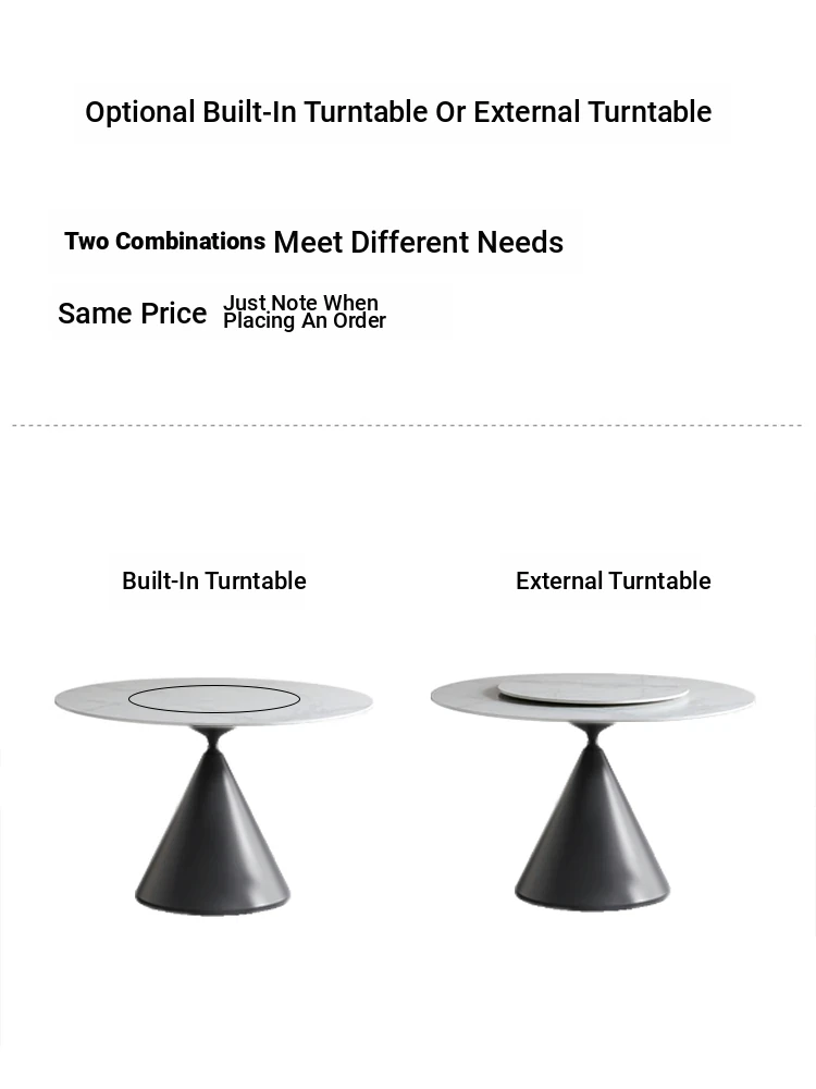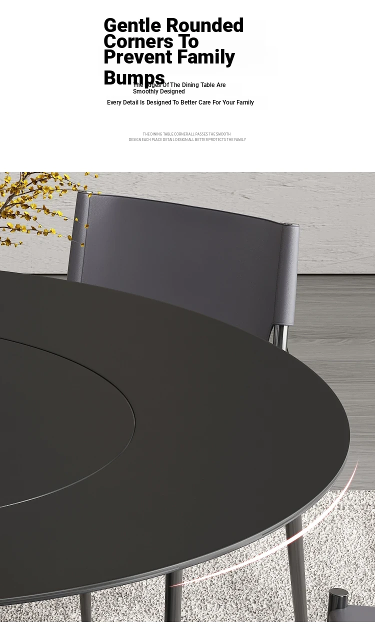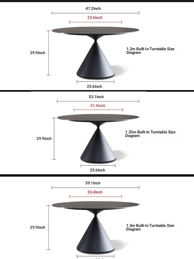 Delifeng Round Dining Table with Embedded Rotating Tray - Designer Creative Pure Black Stainless Steel UFO Style Slate Table
