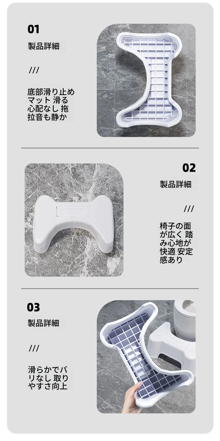 トイレ用厚手踏み台 - 滑り止め付きで安心、安全!子供も大人も使える頑丈な設計で、トイレをもっと快適に。家庭にぴったりの効果的なアイテムです!