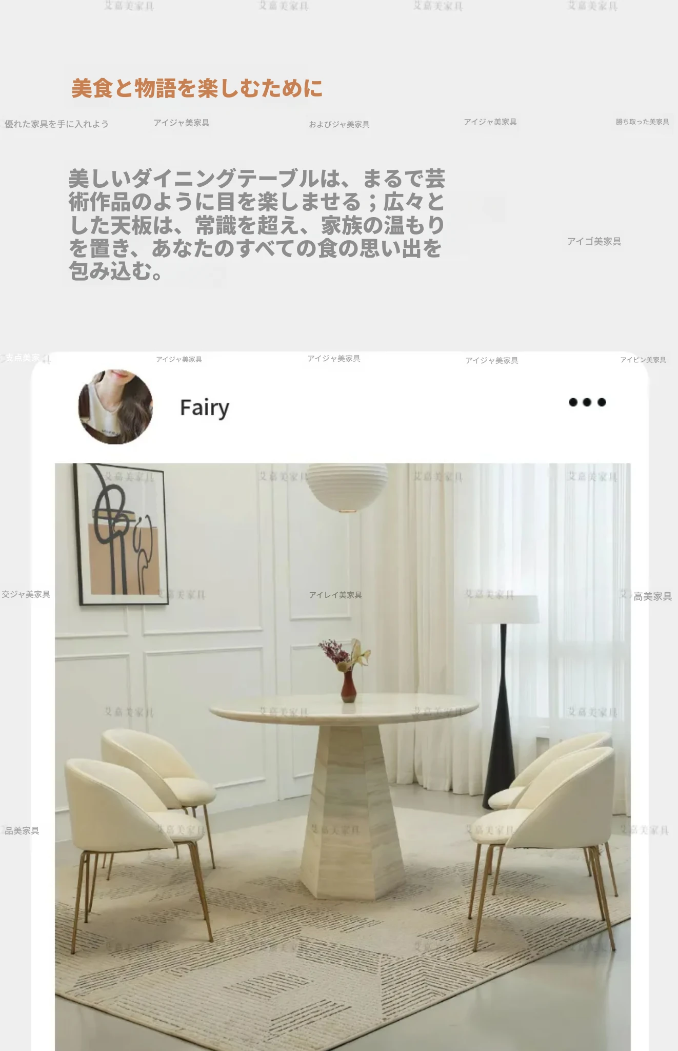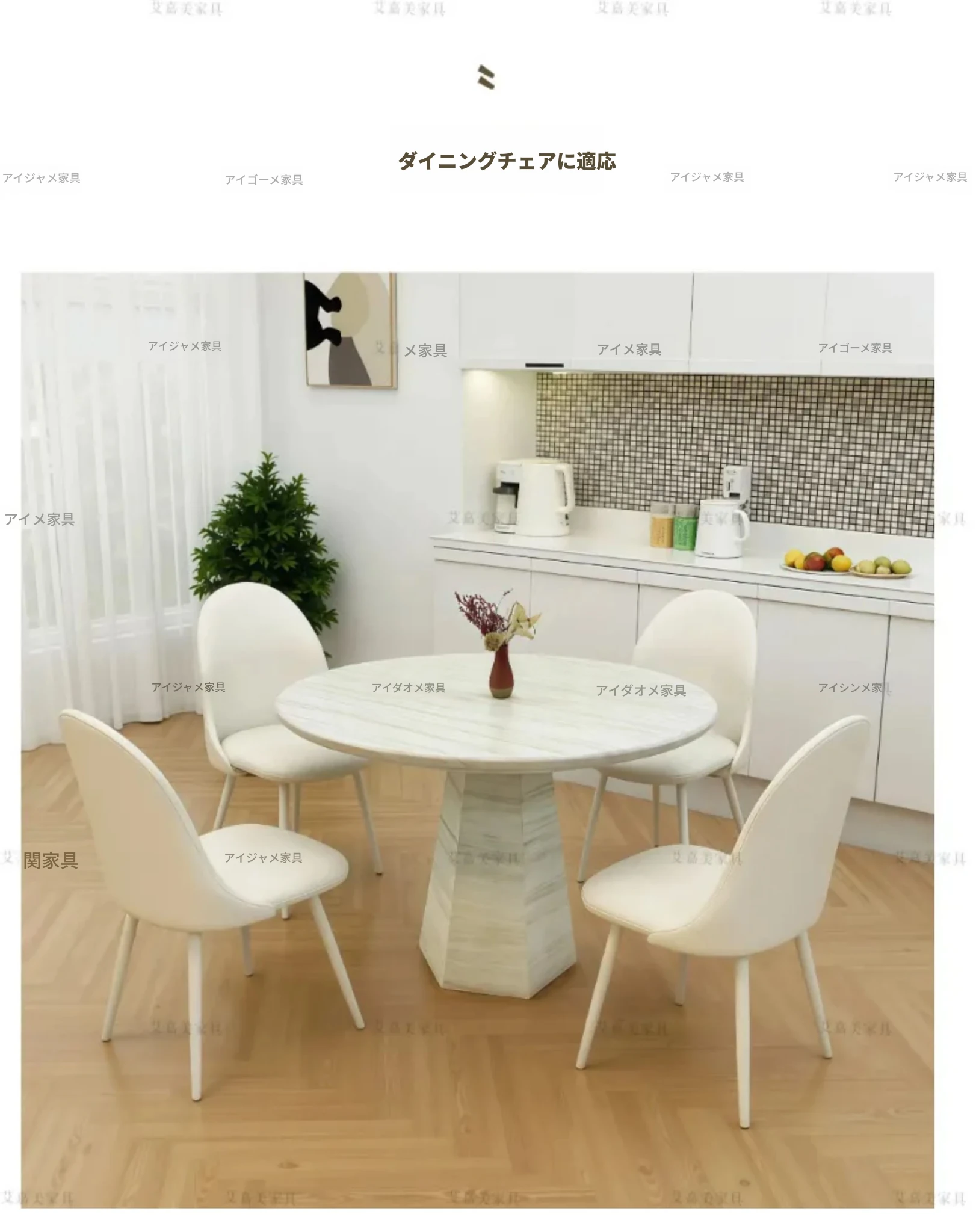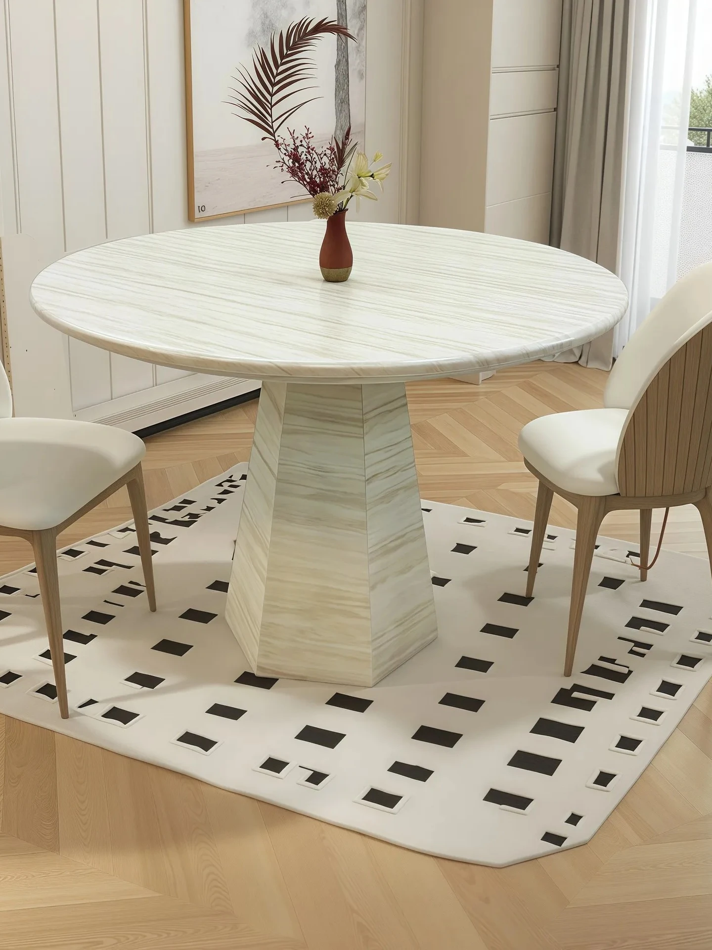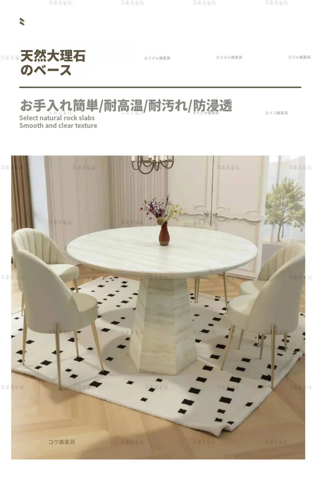高級2025新作 フランス風クリーム仕上げの洞石ラウンドダイニングテーブル 小型家庭向け 大理石ミニマリストデザイン 円形テーブル