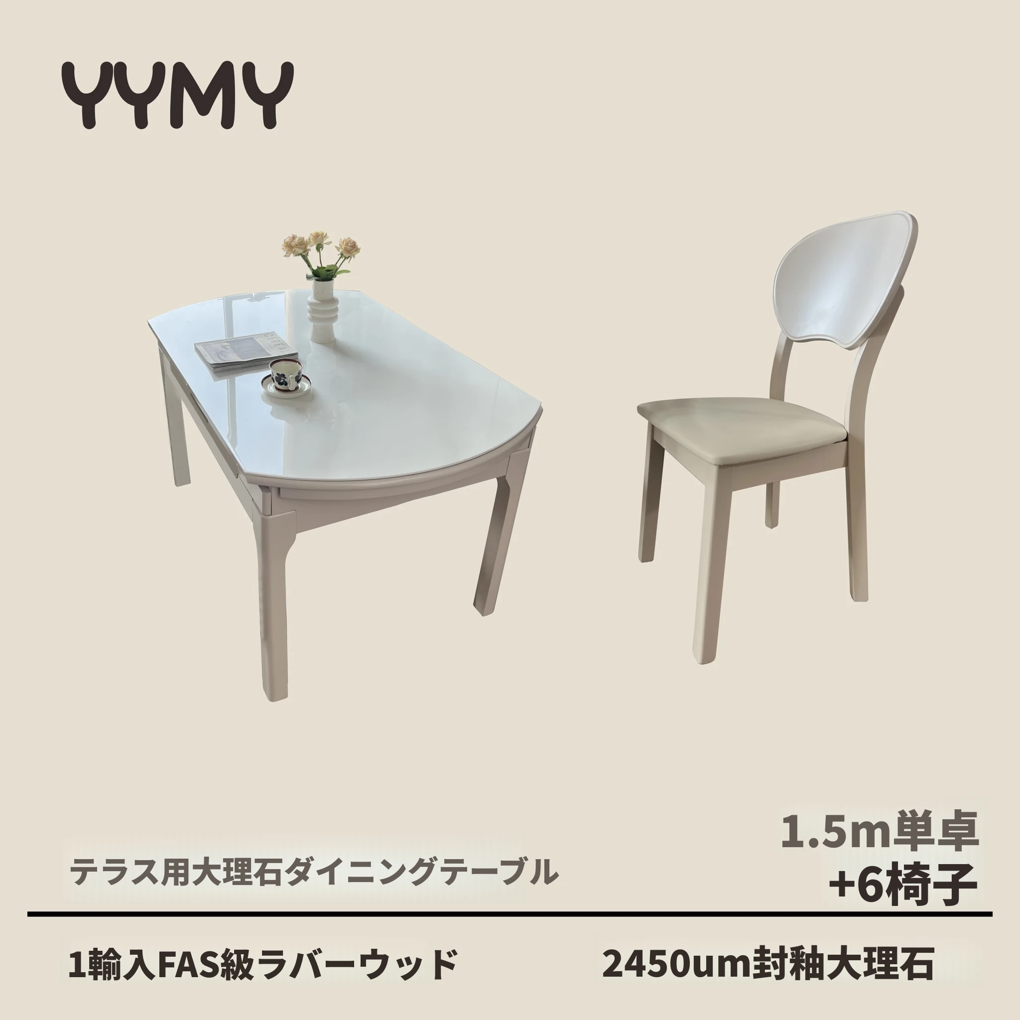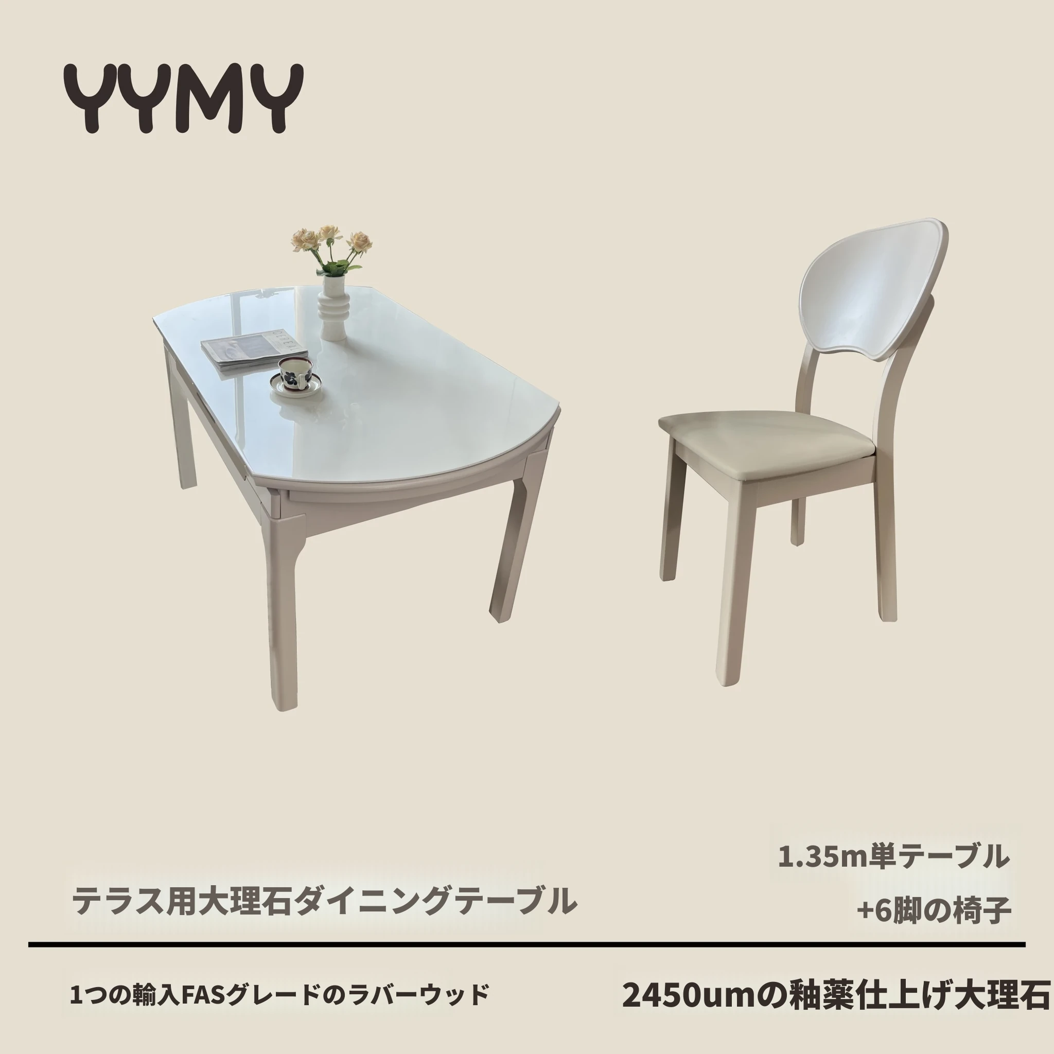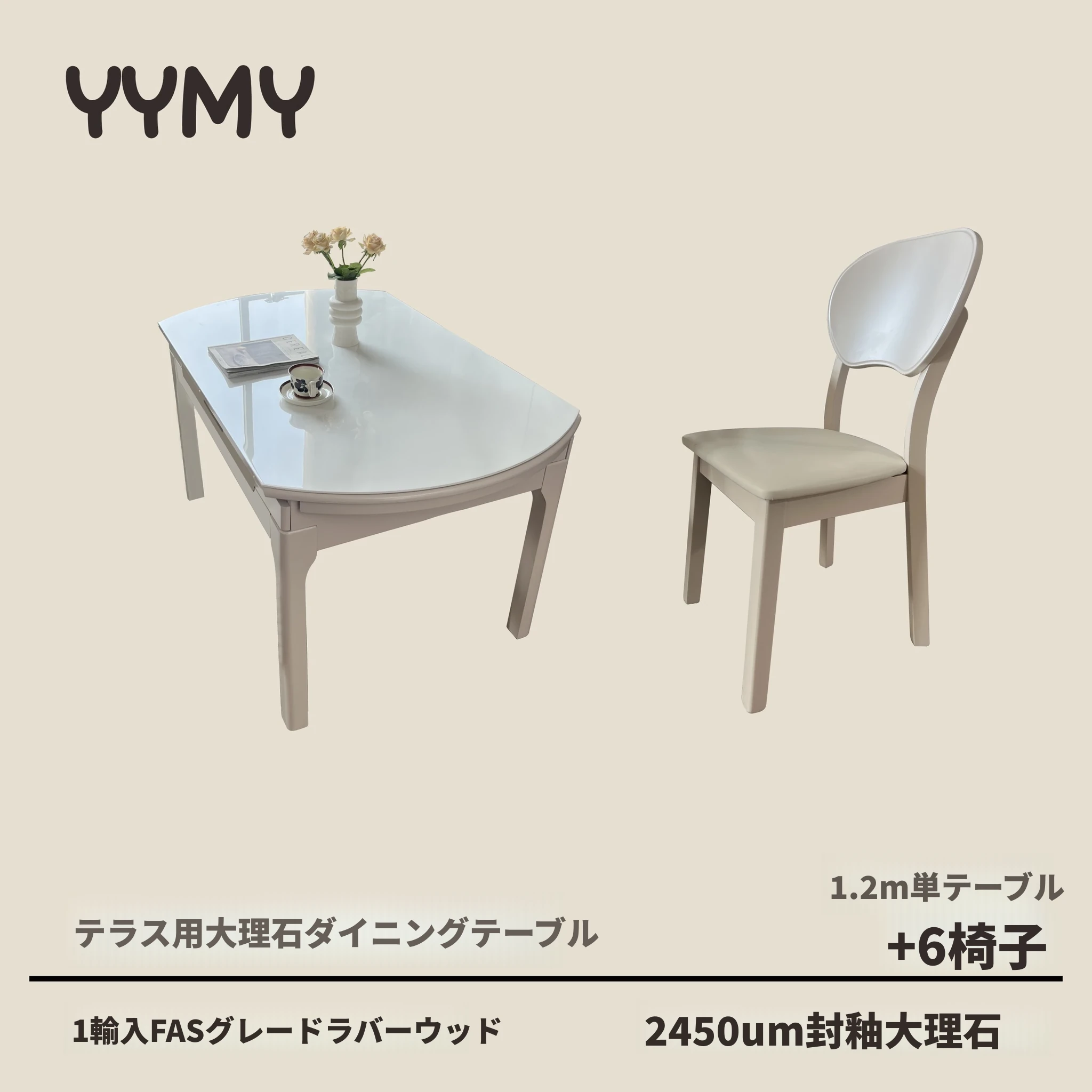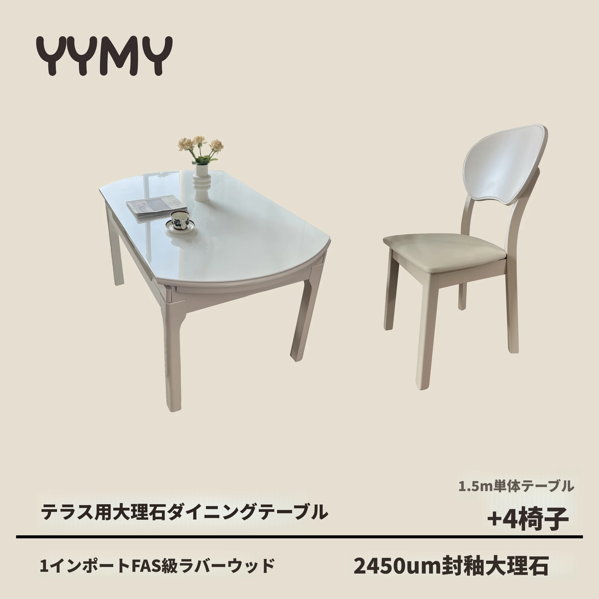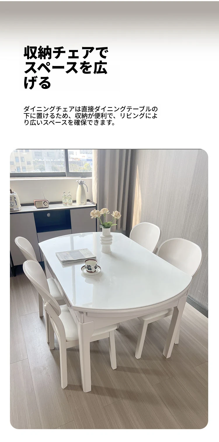 天然大理石製ダイニングテーブル&チェアセット|伸縮可能でラウンド形状に変化|高級感あふれるライトラグジュアリーなクリームカラー|頑丈な無垢材使用|おしゃれで快適な食卓を演出します!