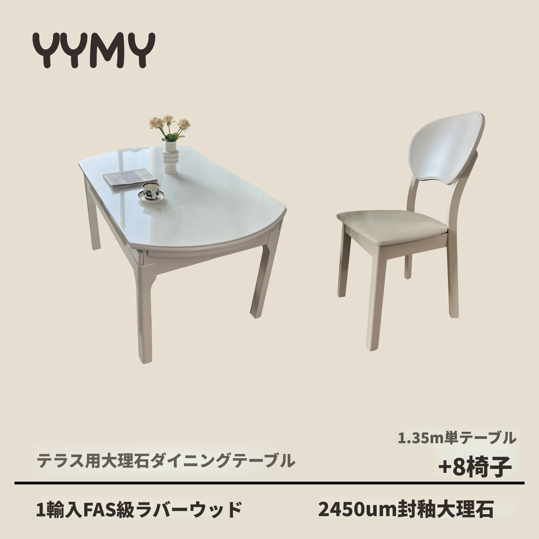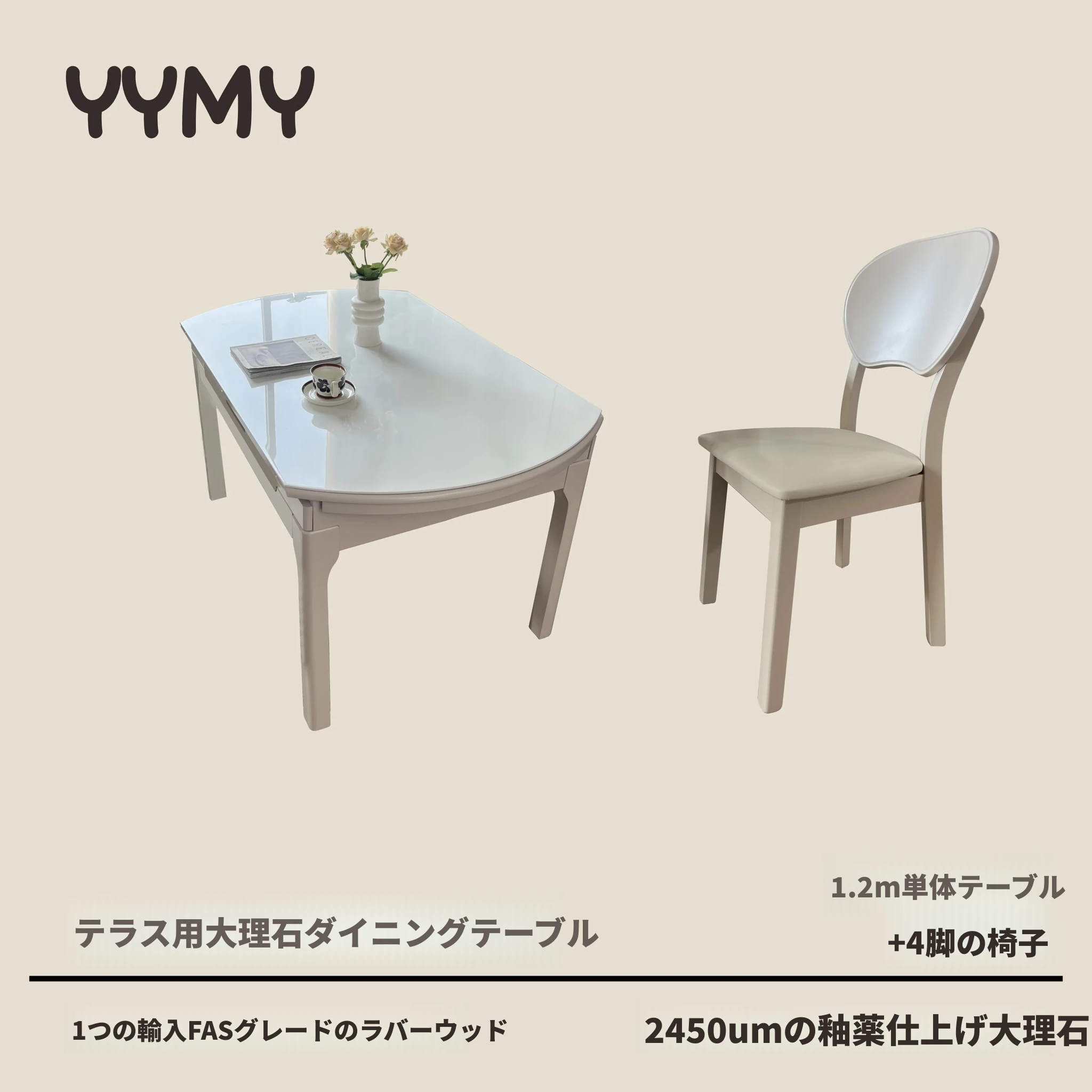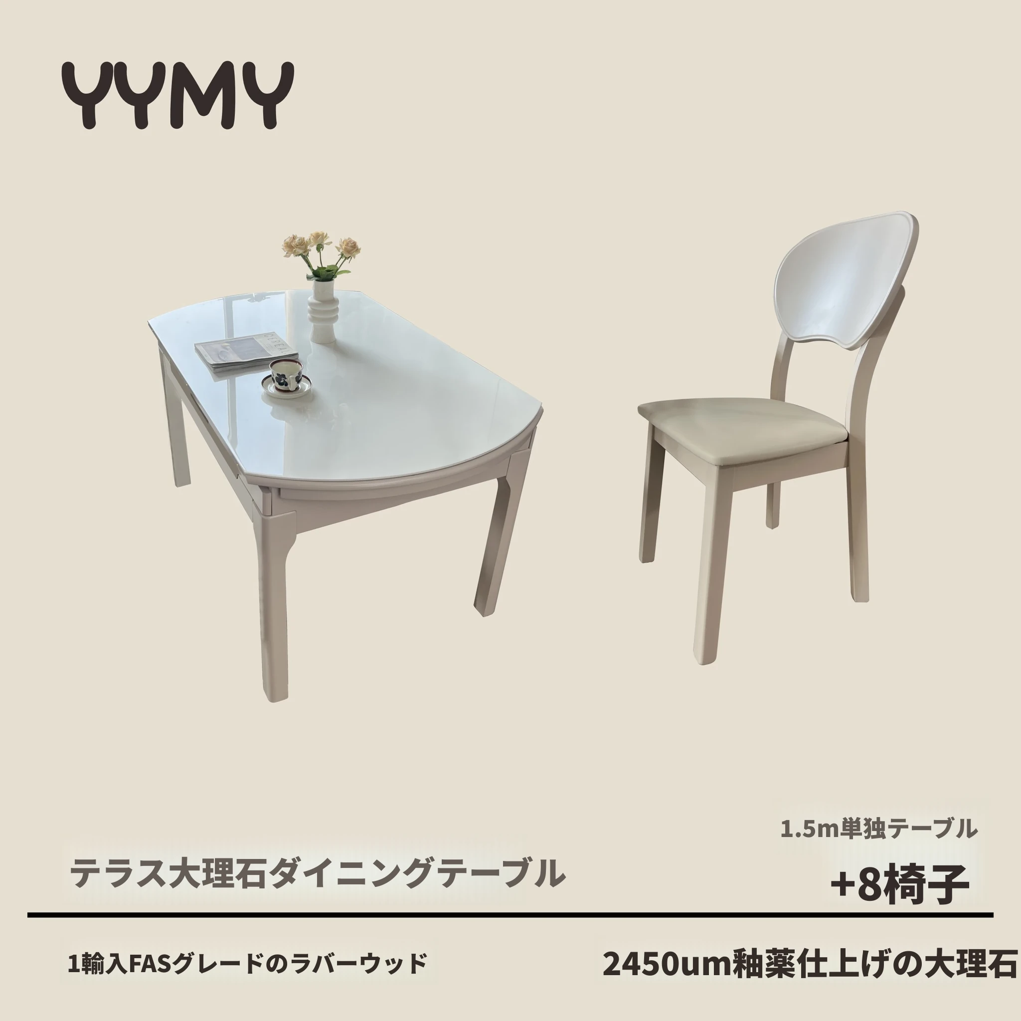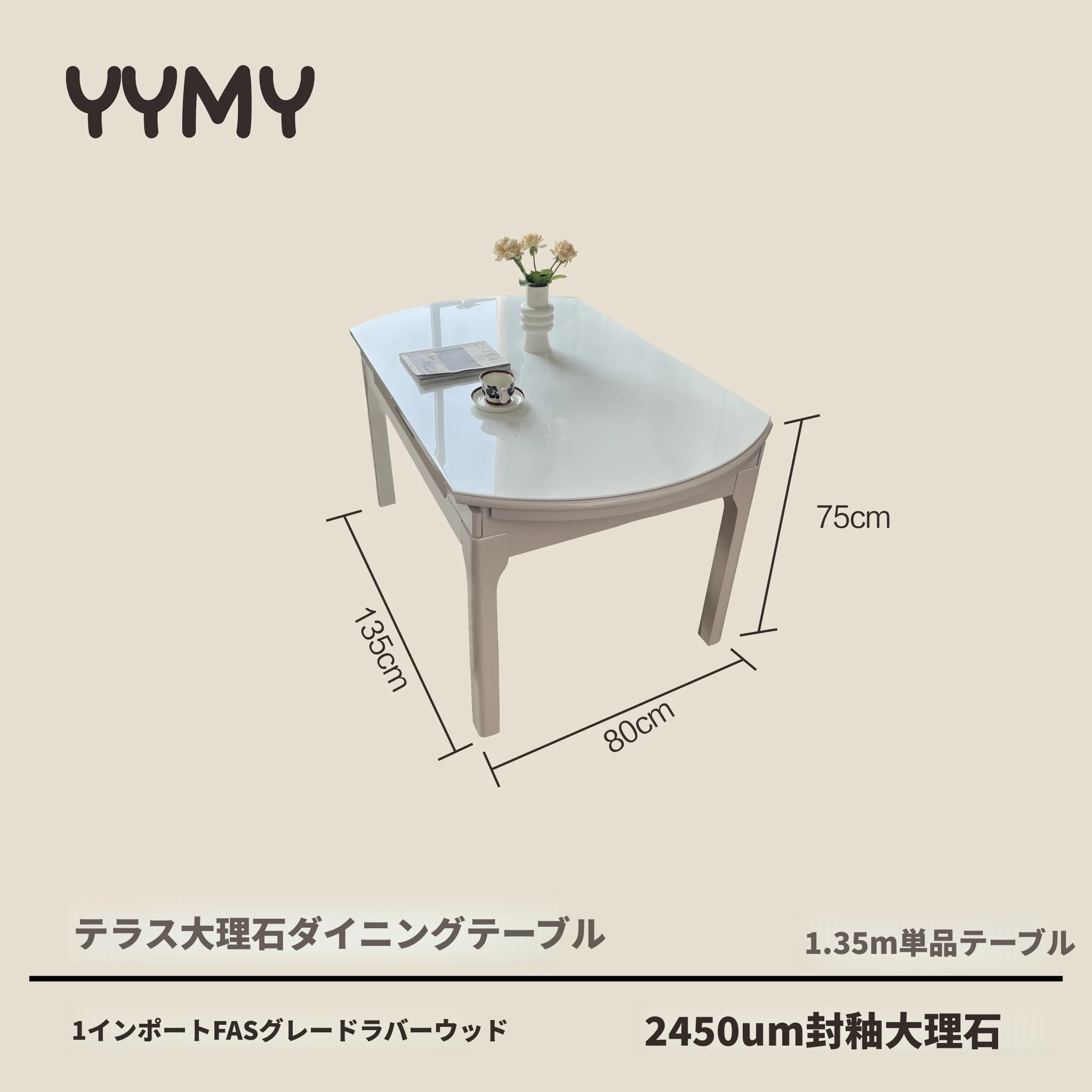 天然大理石製ダイニングテーブル&チェアセット|伸縮可能でラウンド形状に変化|高級感あふれるライトラグジュアリーなクリームカラー|頑丈な無垢材使用|おしゃれで快適な食卓を演出します!