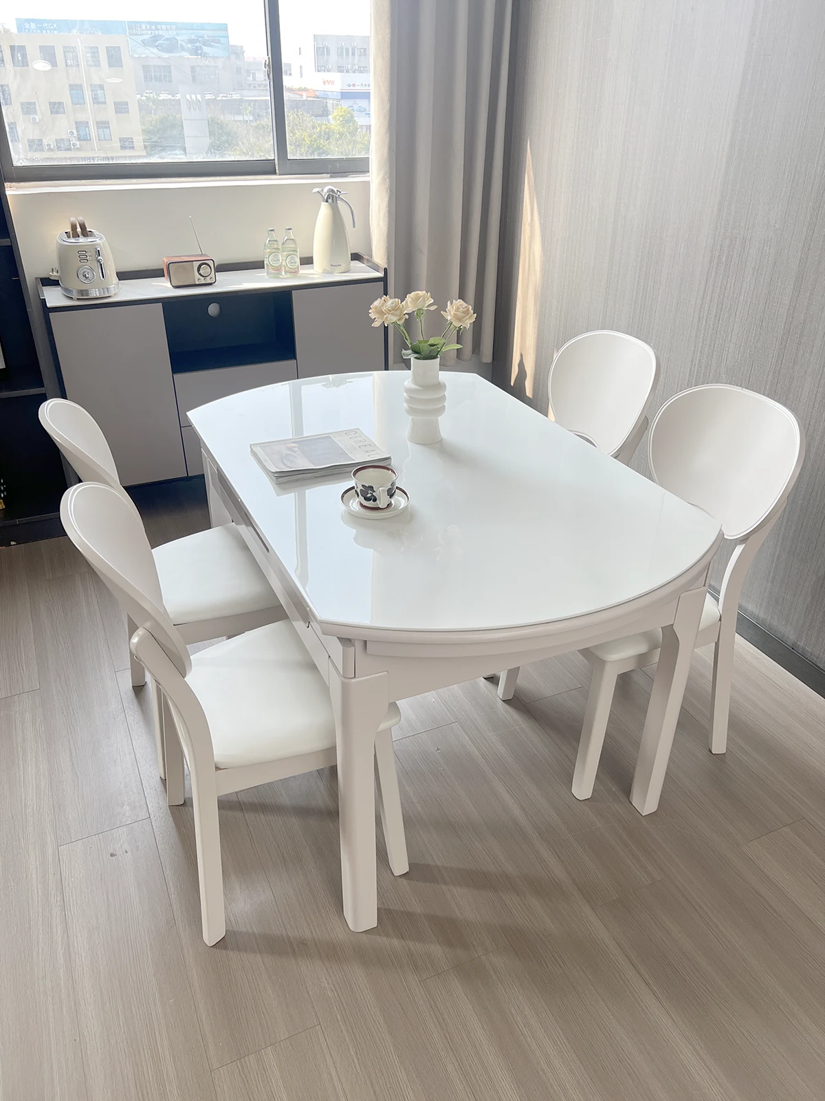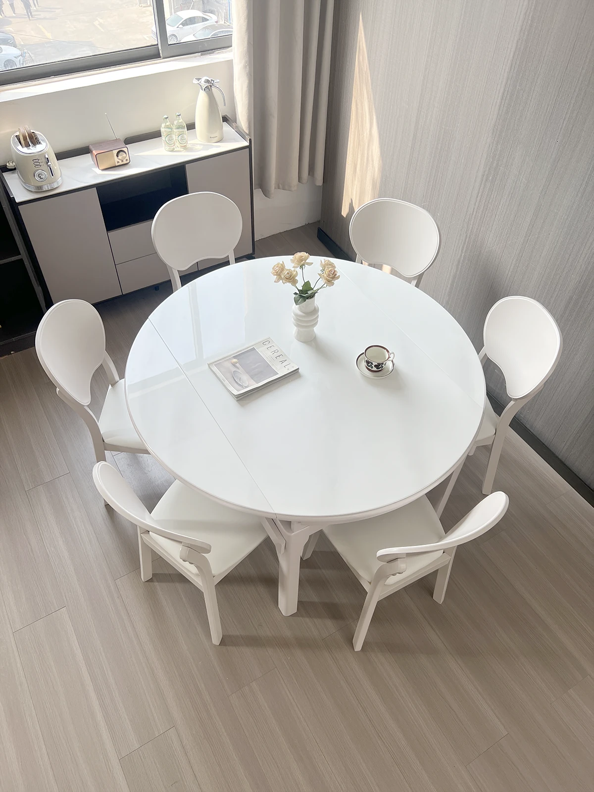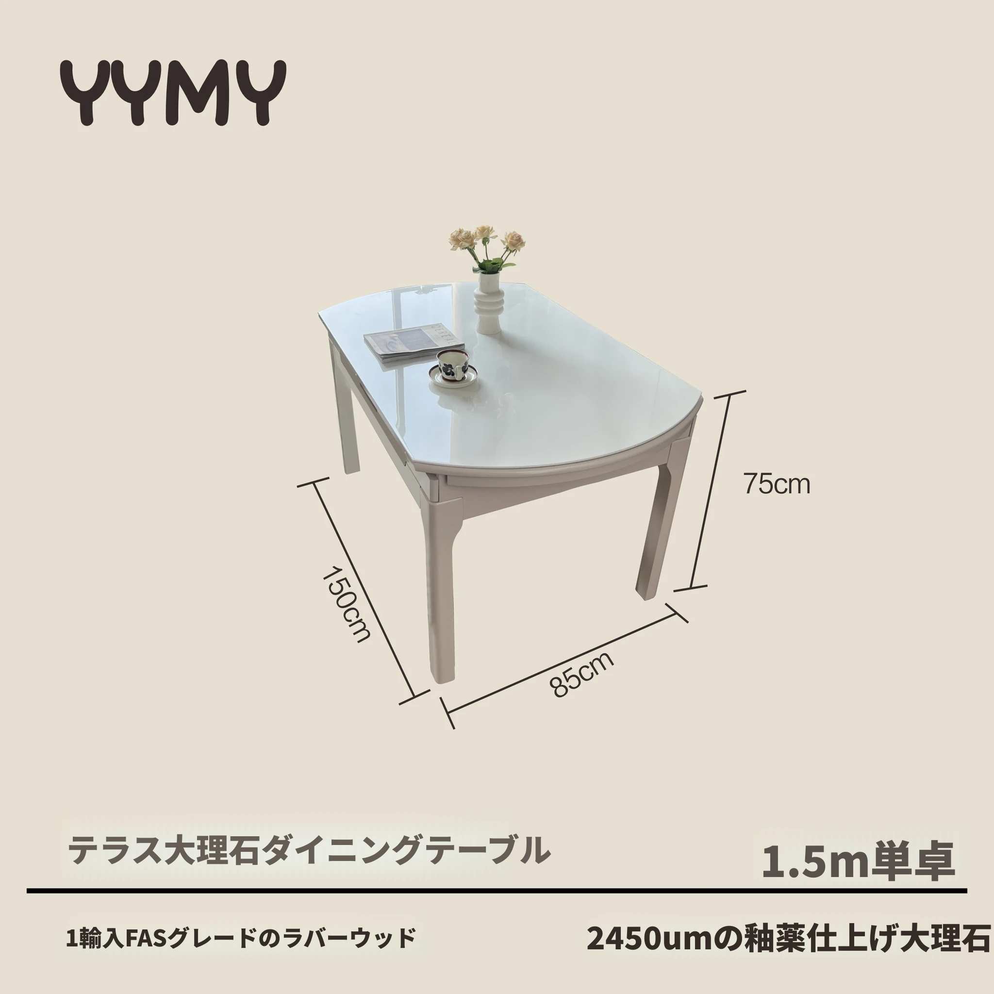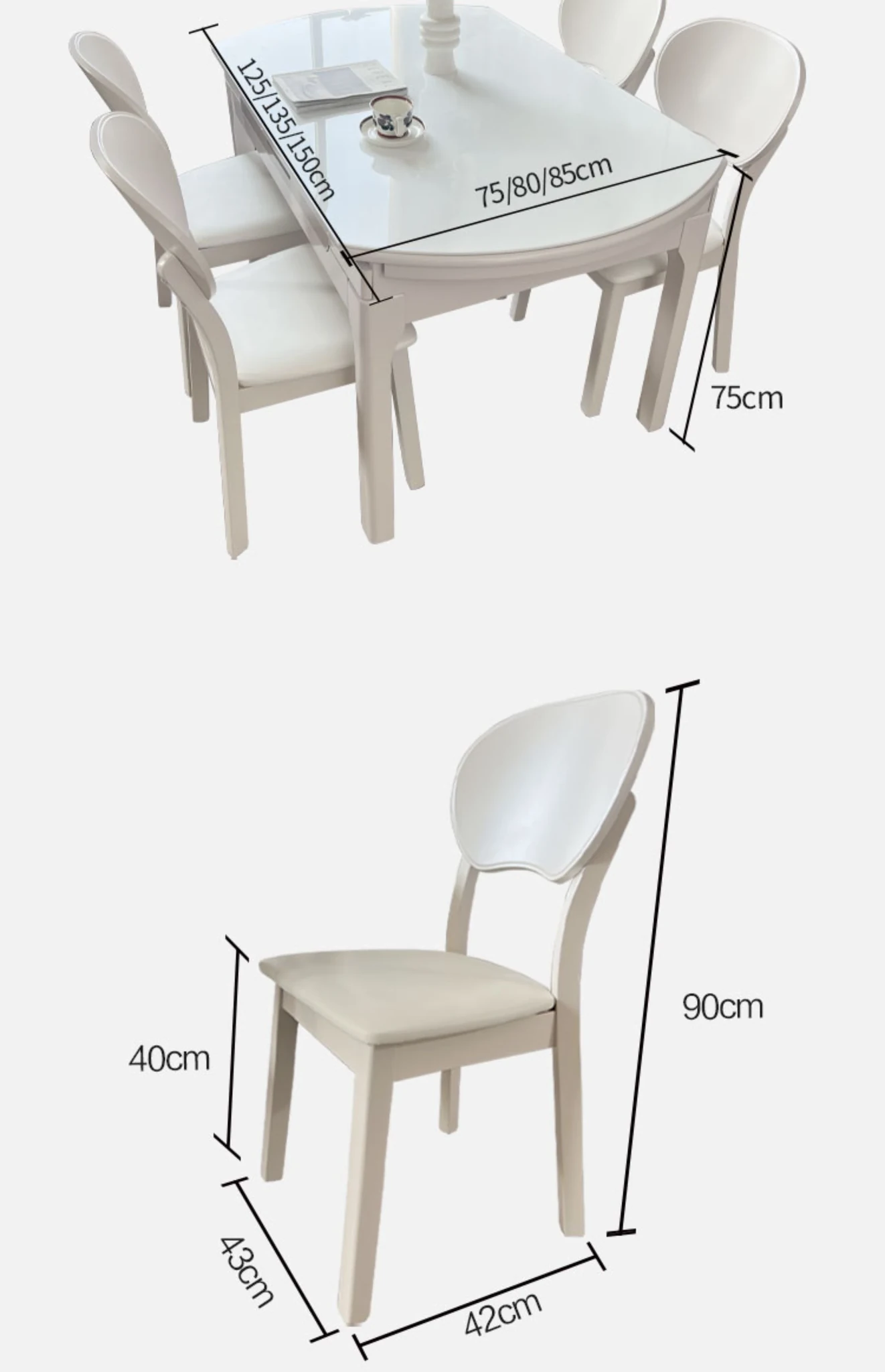 天然大理石製ダイニングテーブル&チェアセット|伸縮可能でラウンド形状に変化|高級感あふれるライトラグジュアリーなクリームカラー|頑丈な無垢材使用|おしゃれで快適な食卓を演出します!