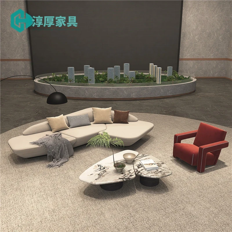 販売センター向けの魅力的なソファセット!ホテルのロビーや美容院の待合室にぴったりのアーチ型レセプションソファ。快適さとスタイルを兼ね備えた空間を演出し、顧客を惹きつける理想的なアイテムです。