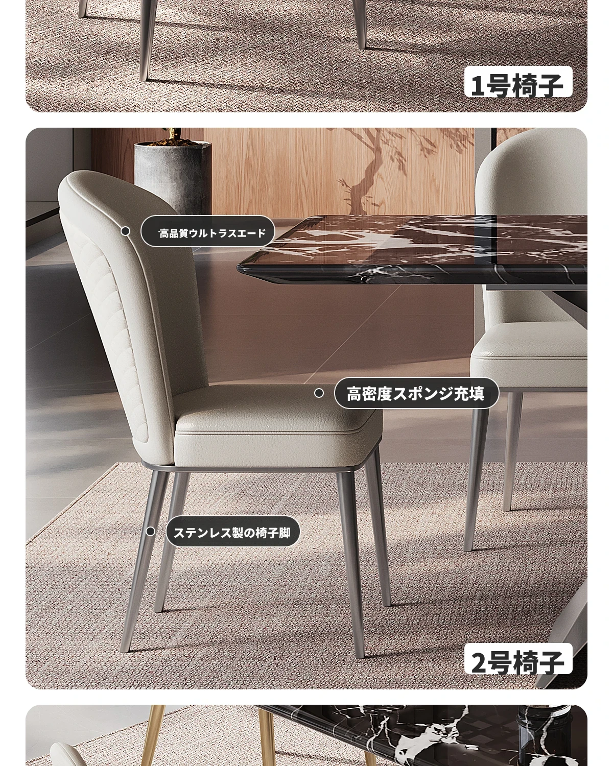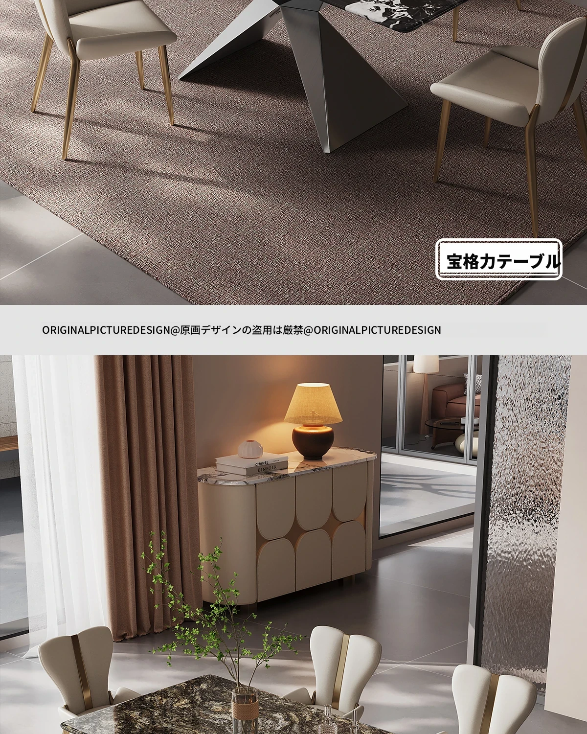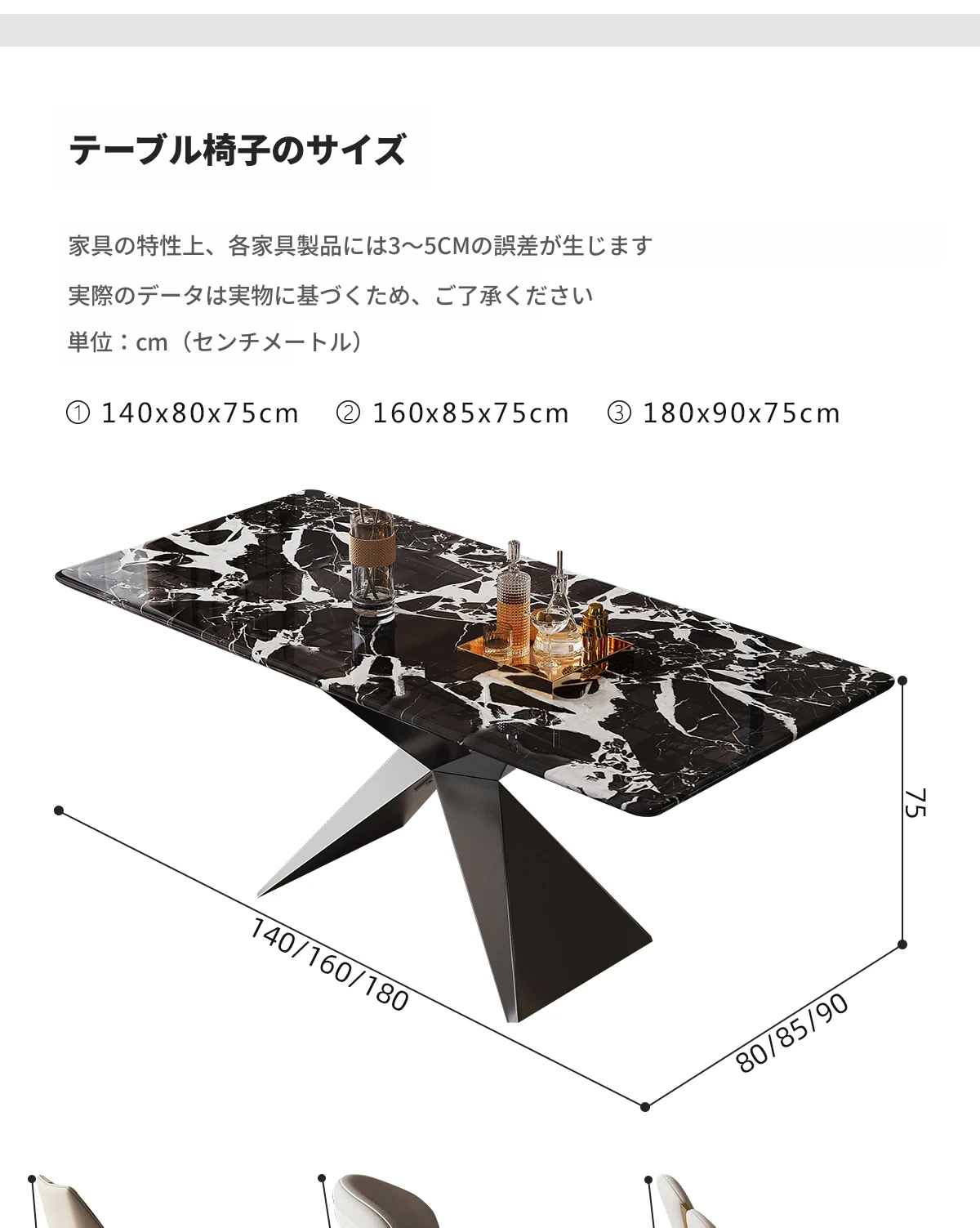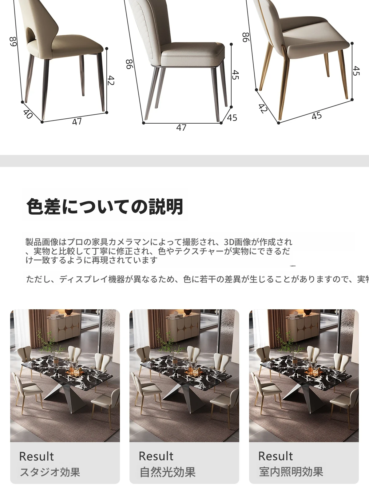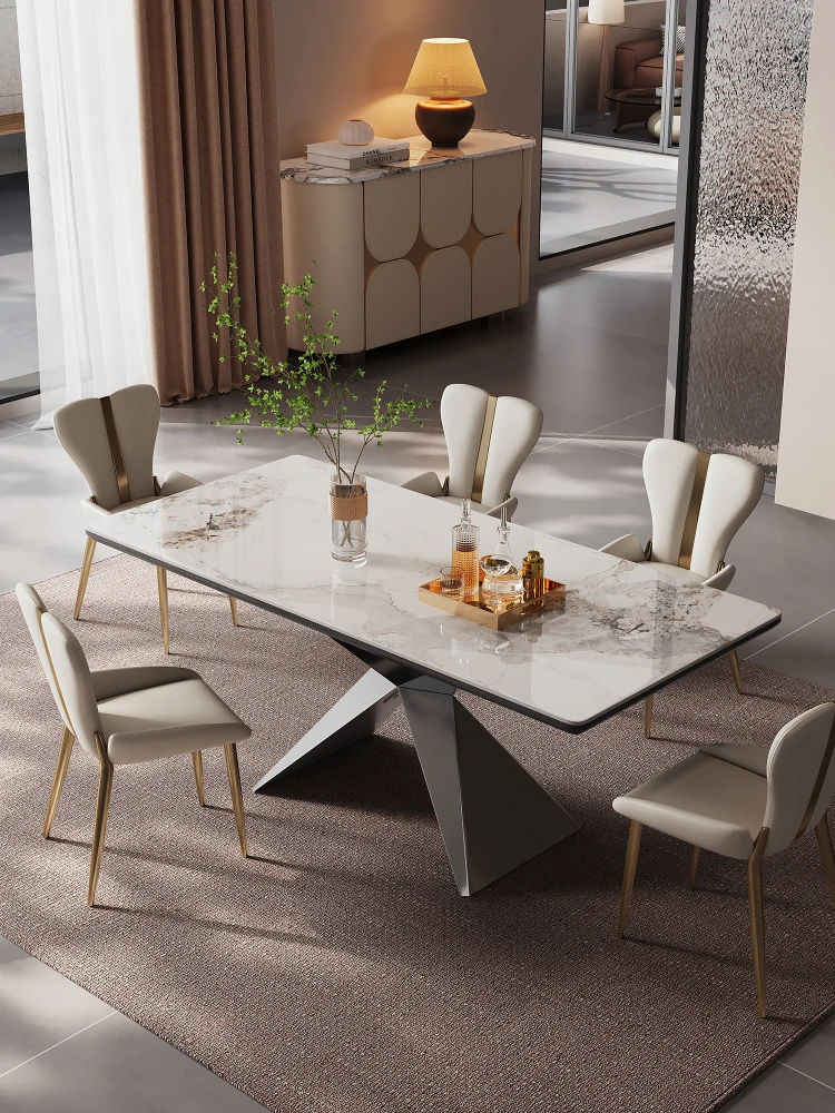 イタリアンミニマリズムの岩板ダイニングテーブル|高級感あふれるステンレス製の長方形テーブル|小さなスペースにもぴったり!モダンでエレガントなデザインで、あなたの食卓を格上げします。