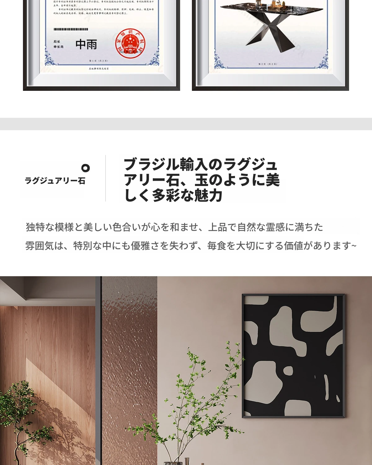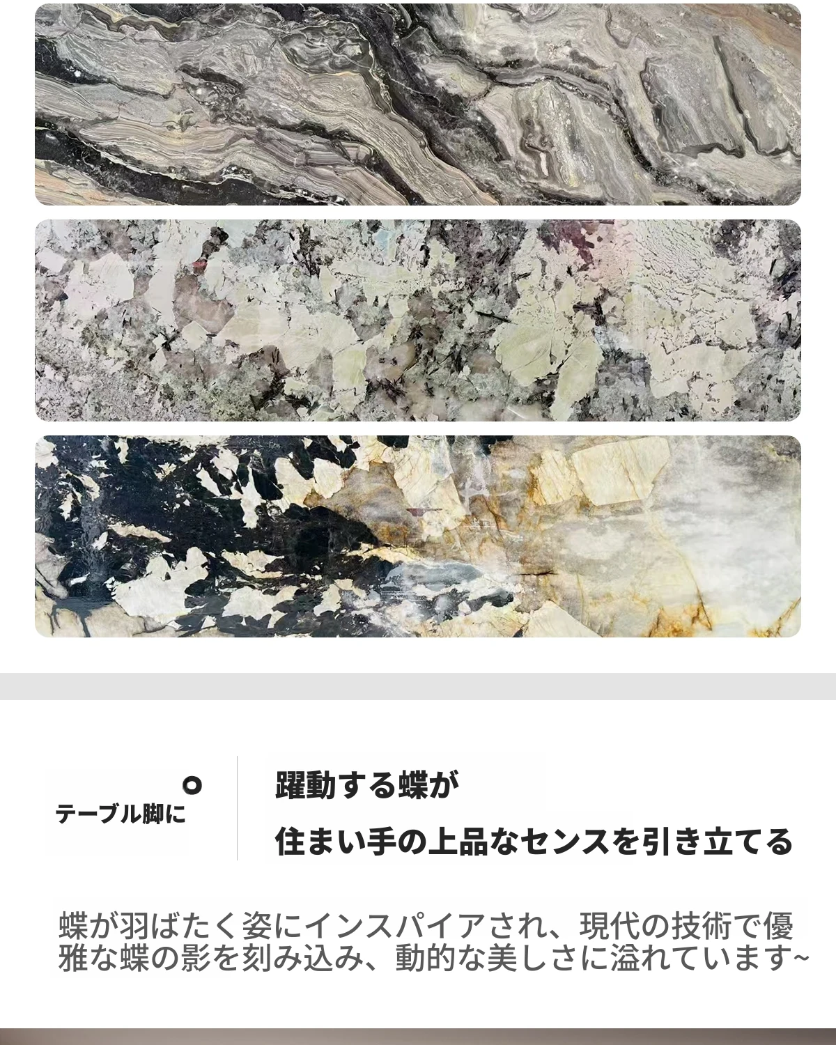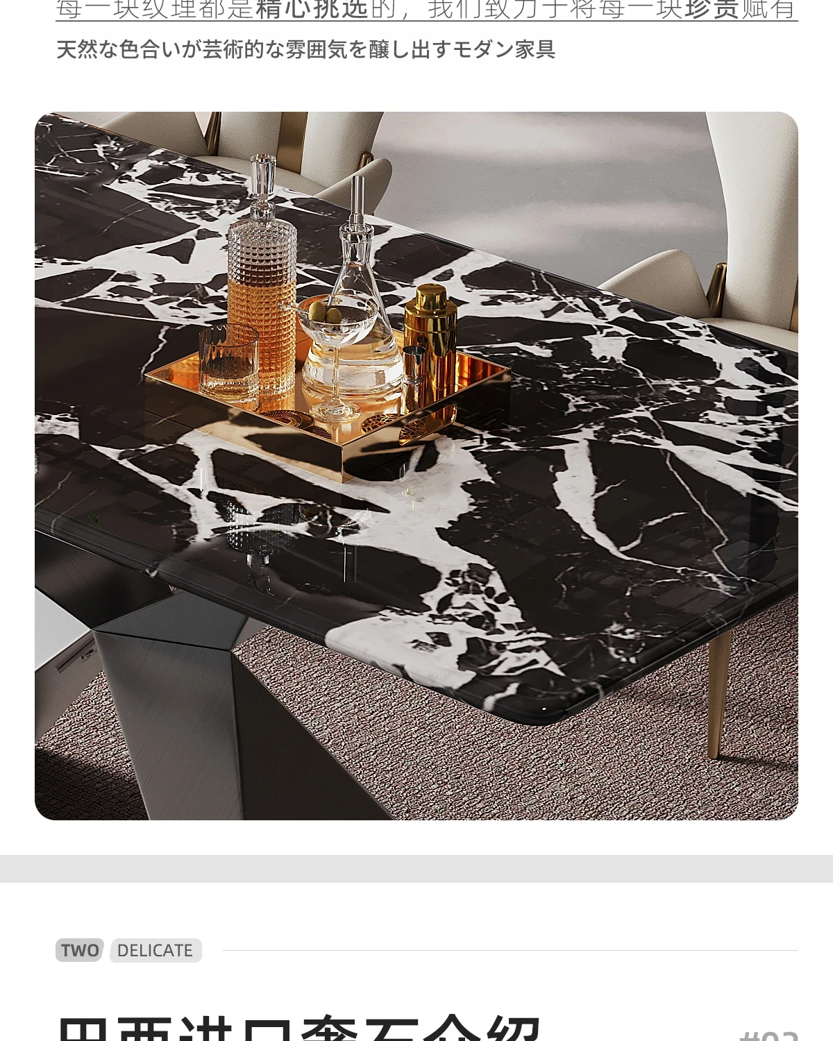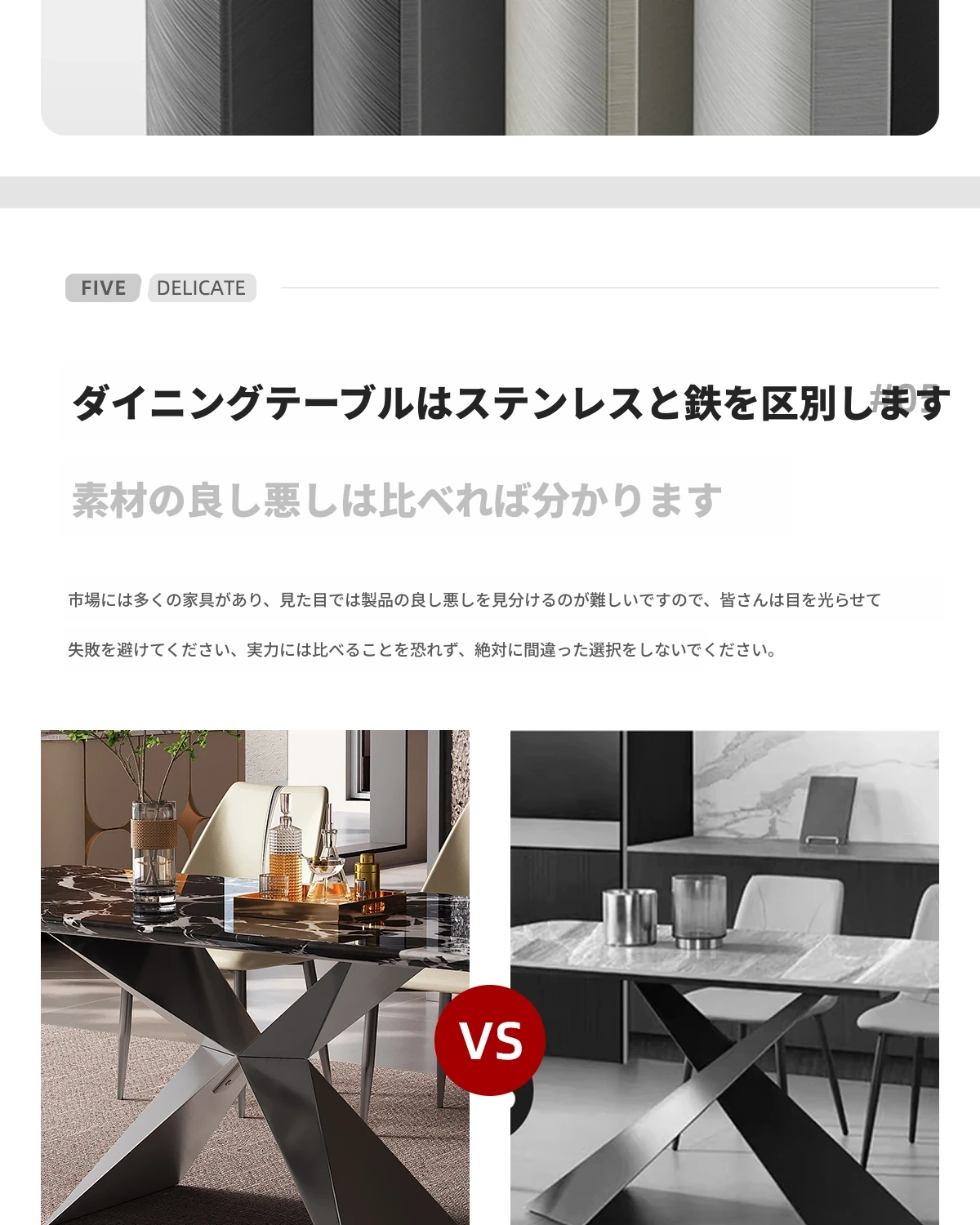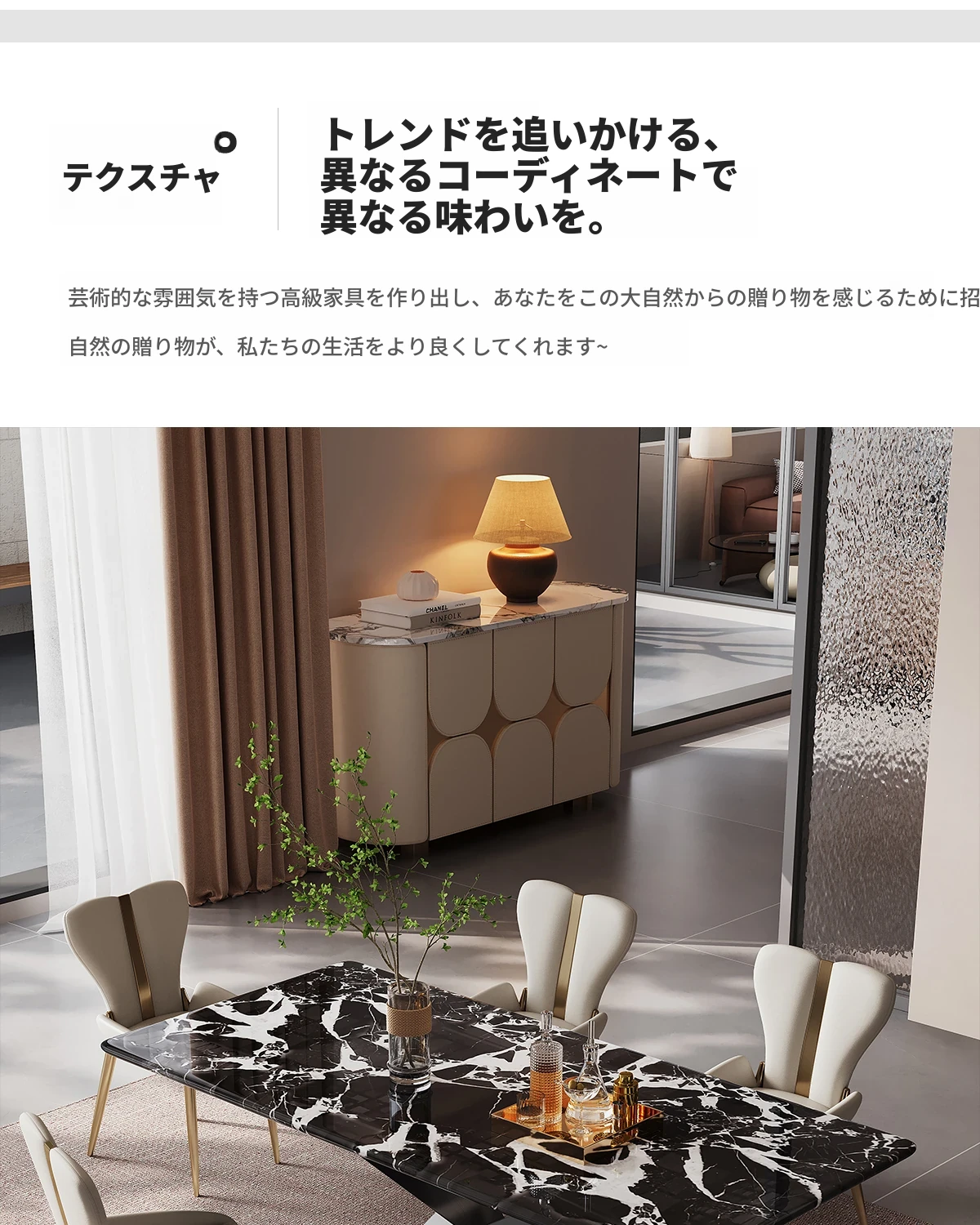イタリアンミニマリズムの岩板ダイニングテーブル|高級感あふれるステンレス製の長方形テーブル|小さなスペースにもぴったり!モダンでエレガントなデザインで、あなたの食卓を格上げします。