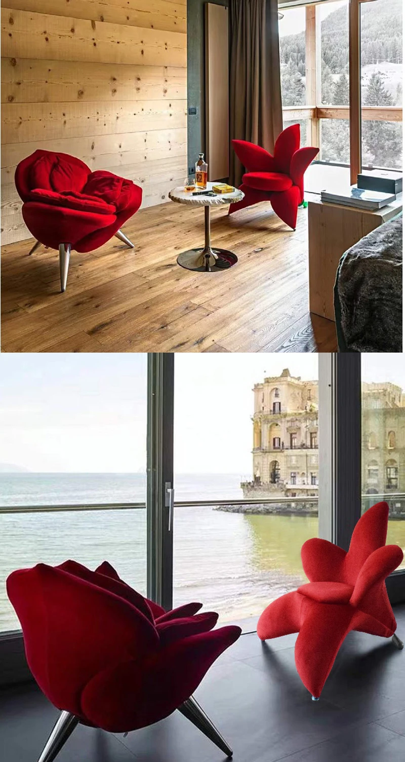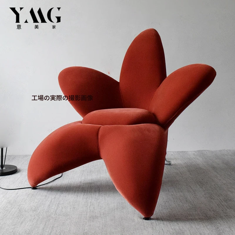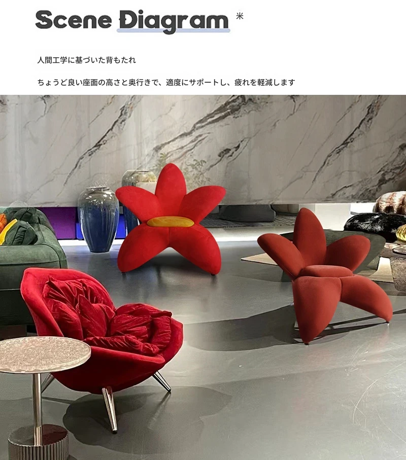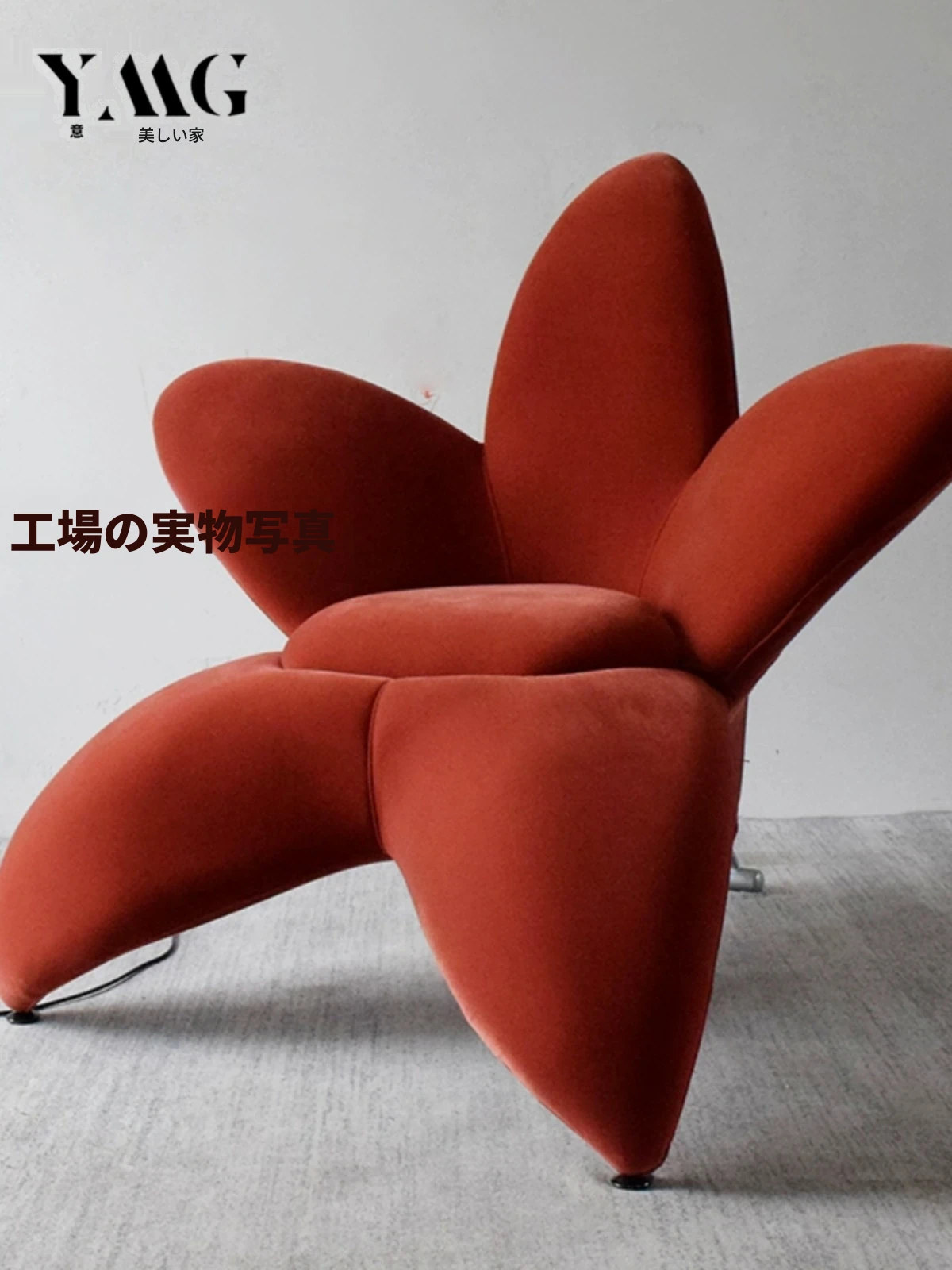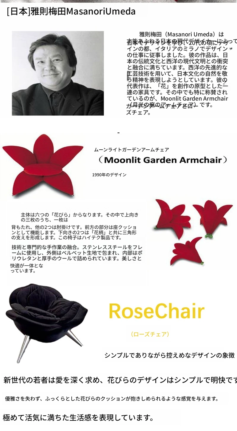 意美家の和風デザイナーズチェア、ユニークなリリーフラワーとバラの生地を使用したおしゃれなカジュアルチェア。モデルルームにもぴったりな、インスタ映え間違いなしの一品!