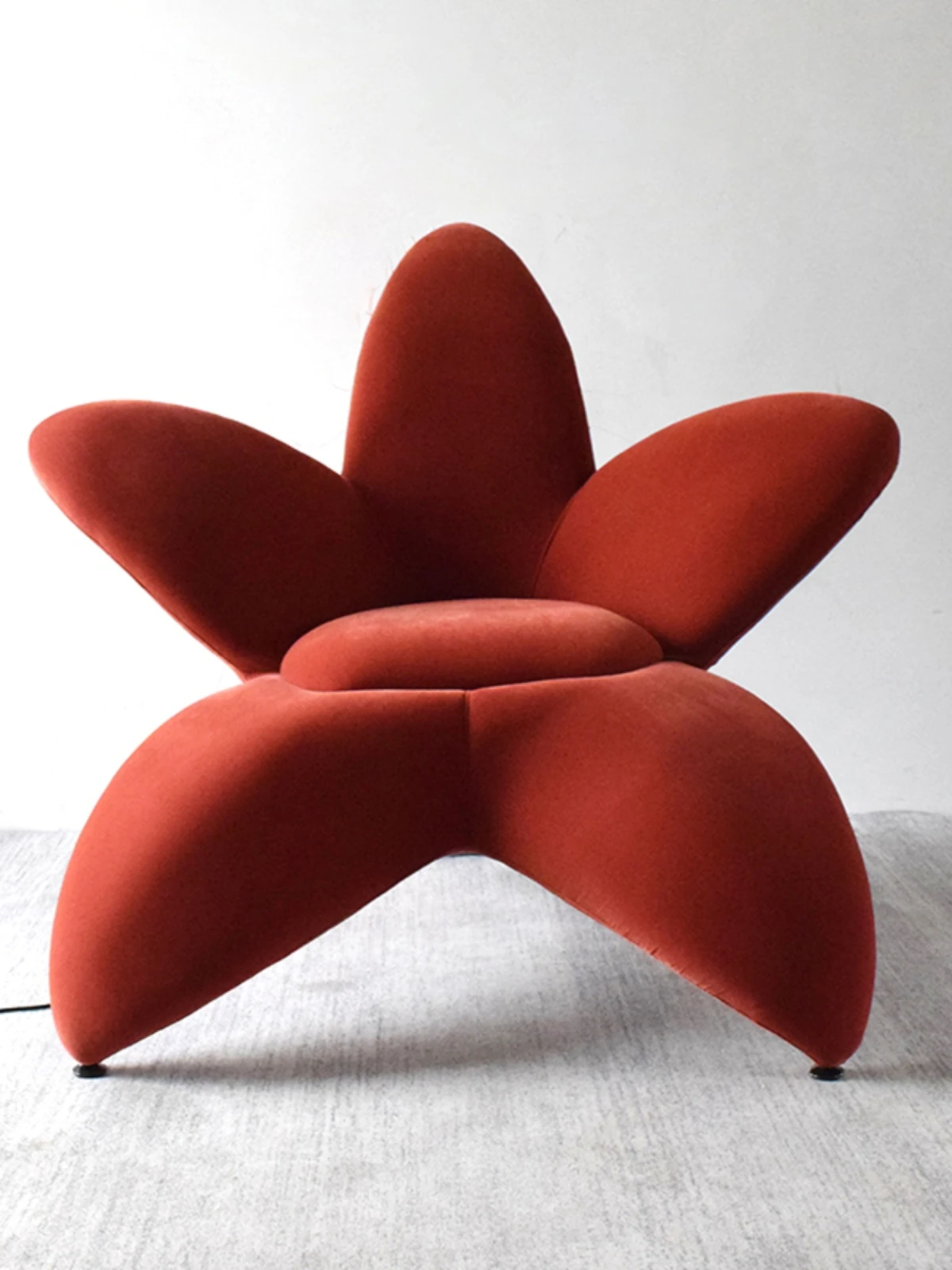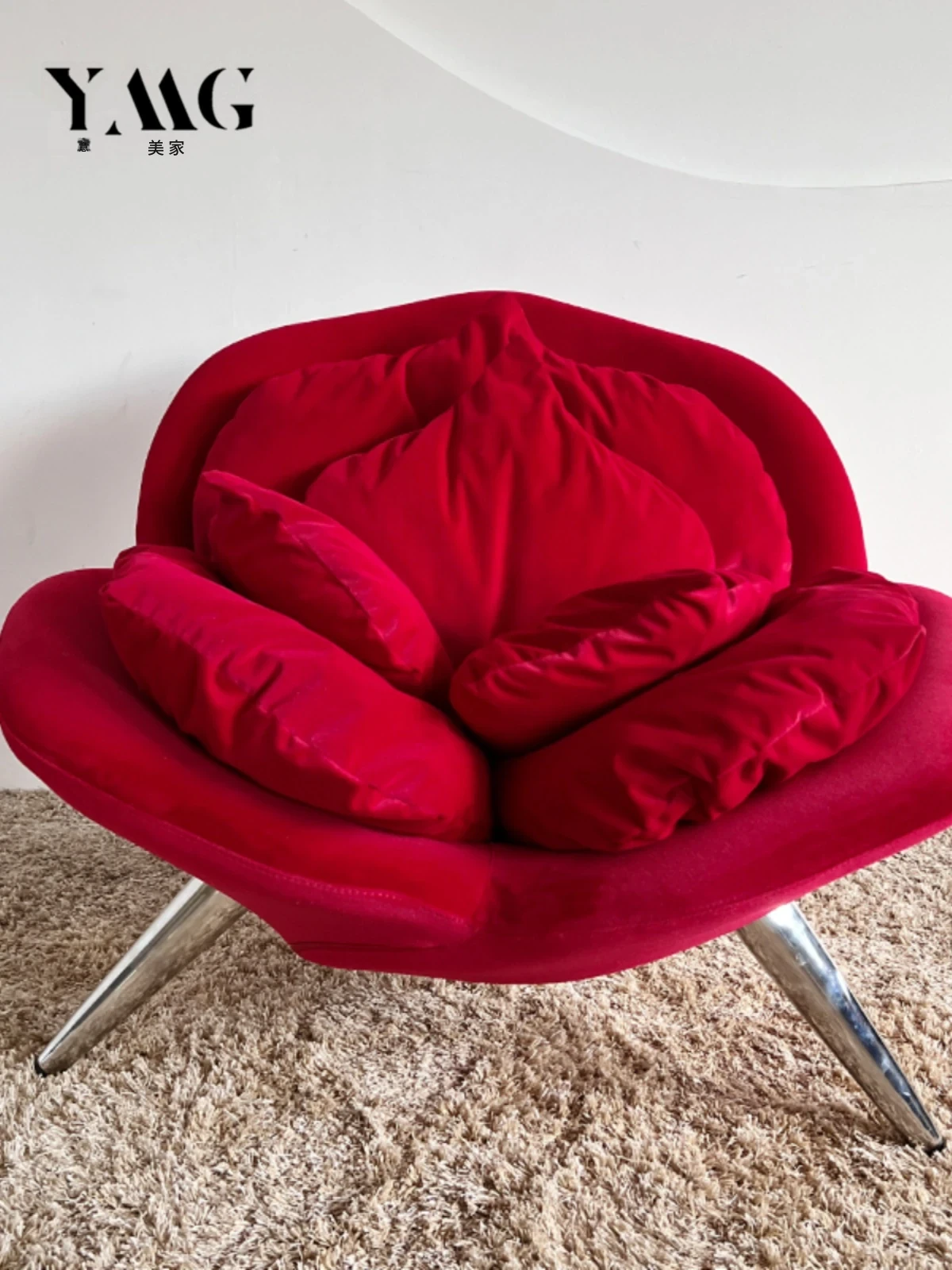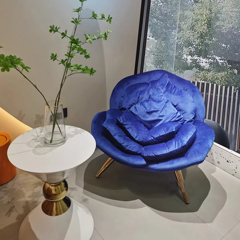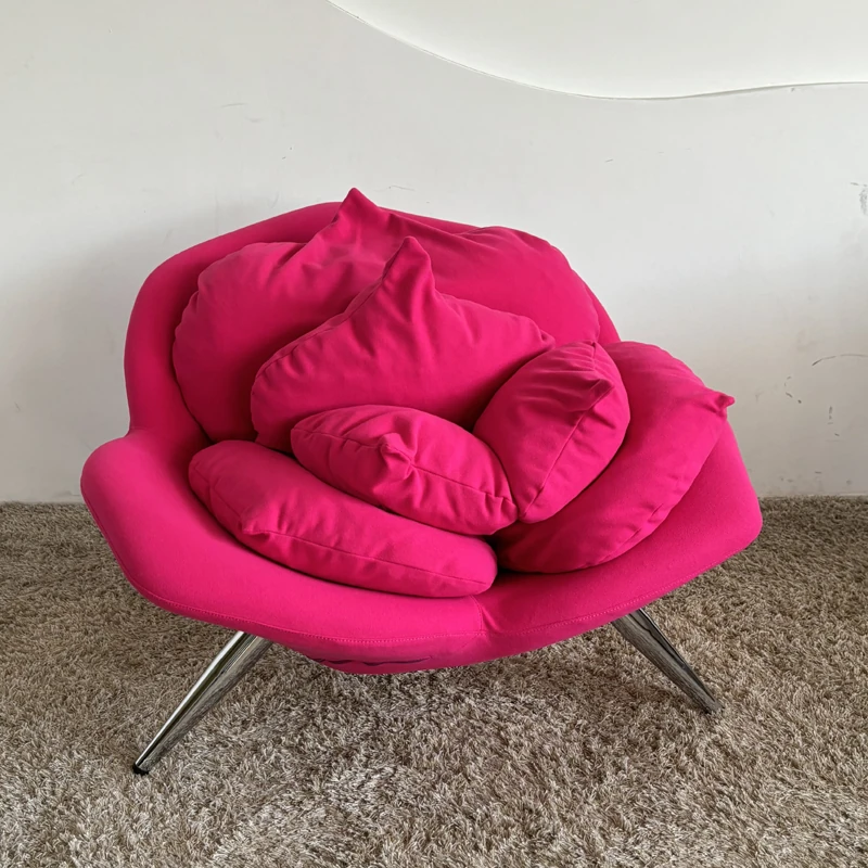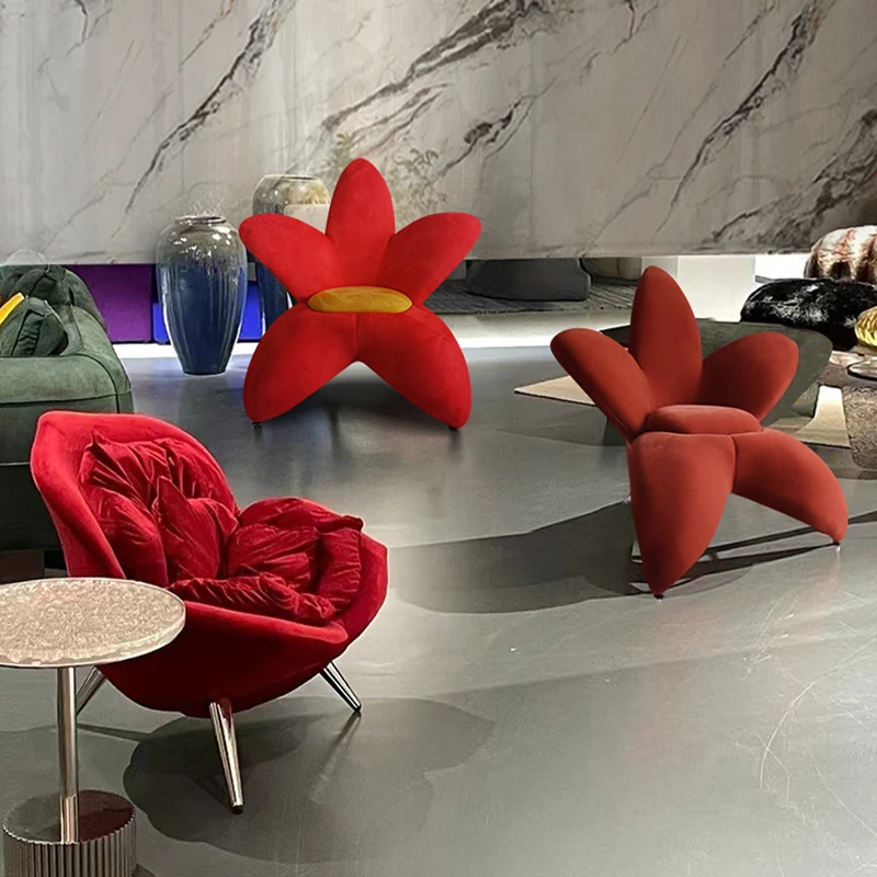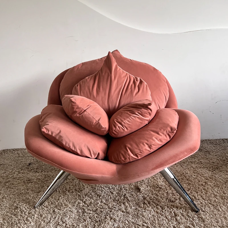 意美家の和風デザイナーズチェア、ユニークなリリーフラワーとバラの生地を使用したおしゃれなカジュアルチェア。モデルルームにもぴったりな、インスタ映え間違いなしの一品!
