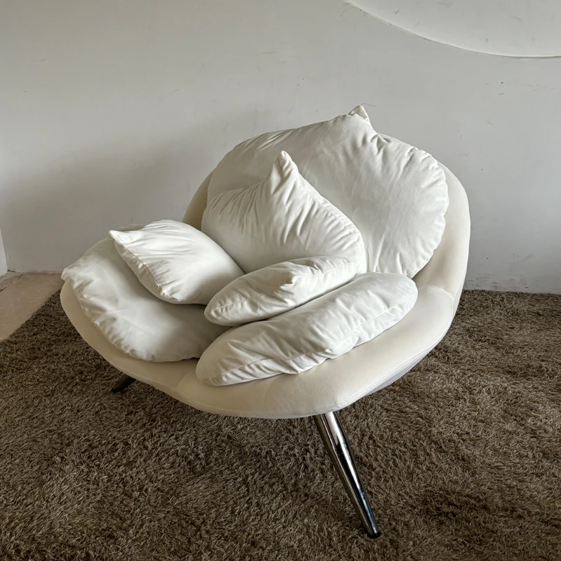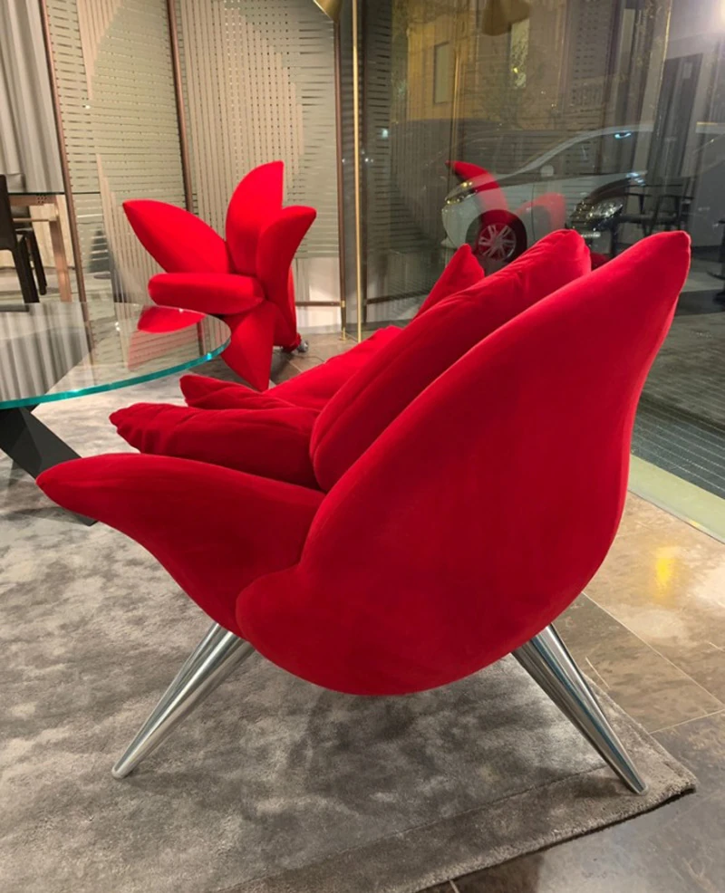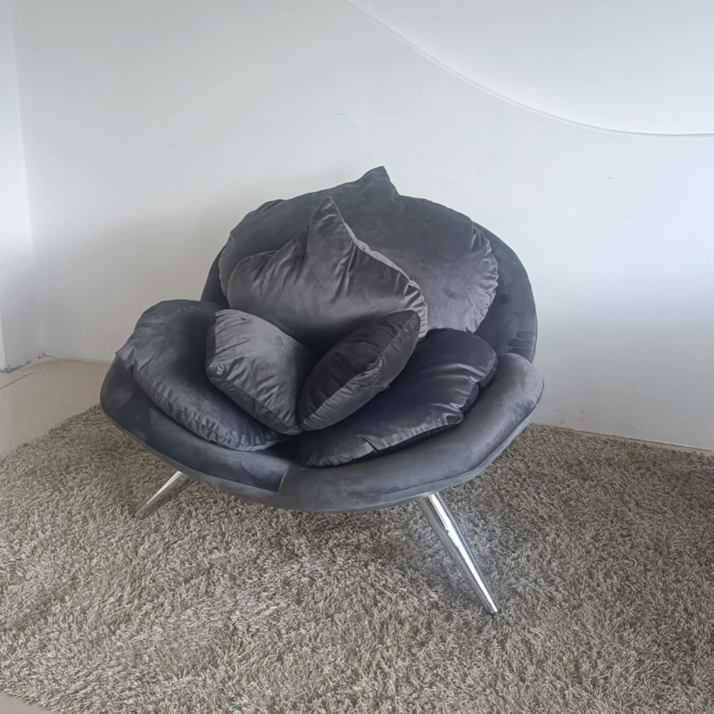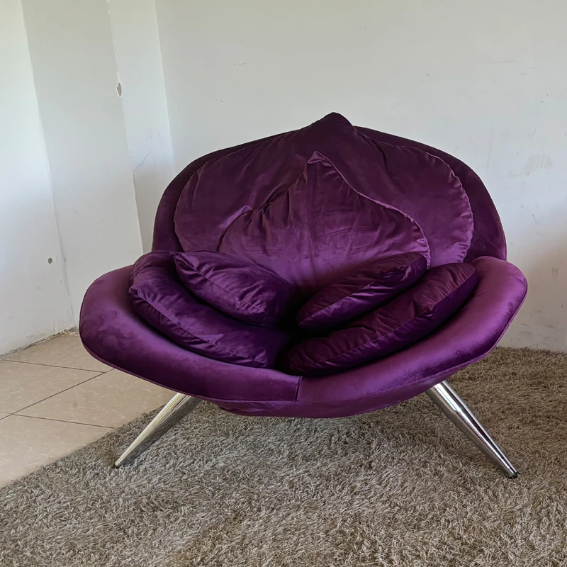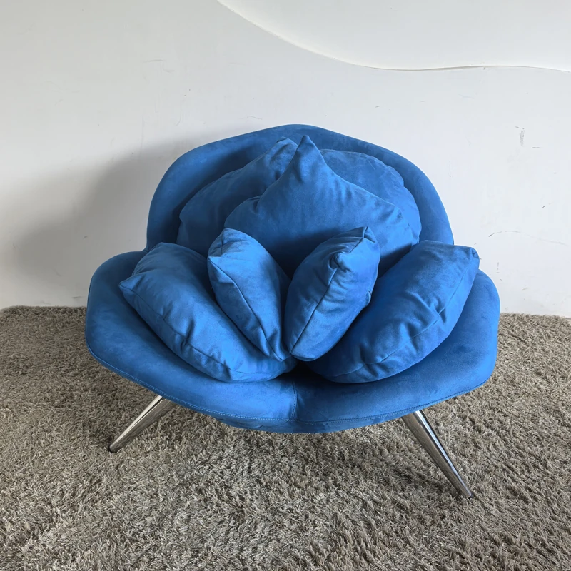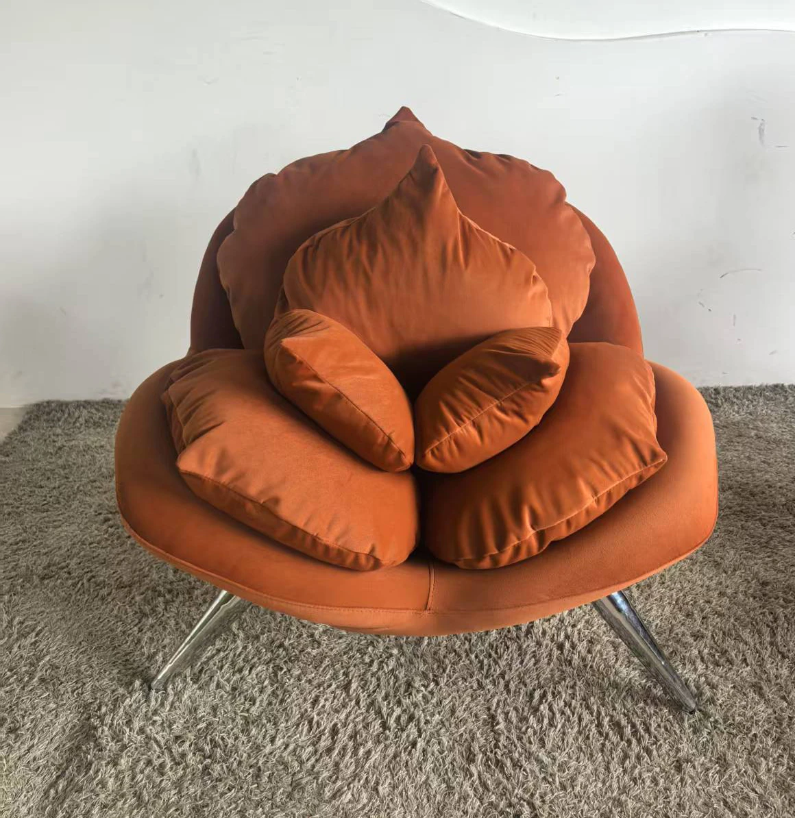意美家の和風デザイナーズチェア、ユニークなリリーフラワーとバラの生地を使用したおしゃれなカジュアルチェア。モデルルームにもぴったりな、インスタ映え間違いなしの一品!
