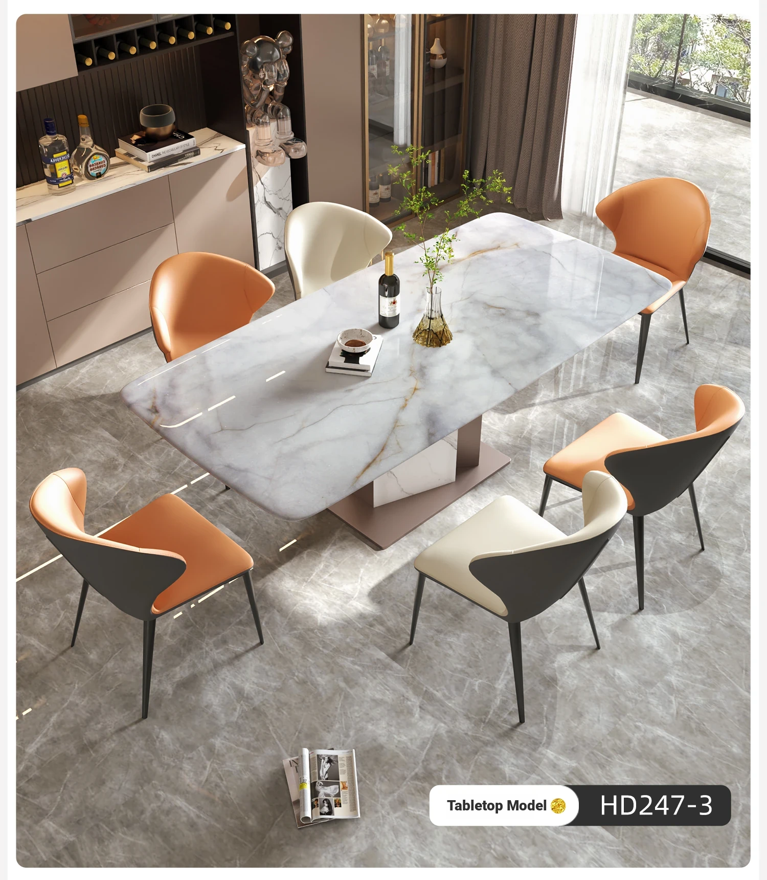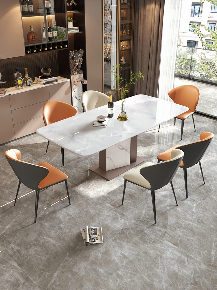 Elegant Luxury Natural Marble Dining Table and Chair Set - High-End Rectangular Gemstone Dining Table for Home Use