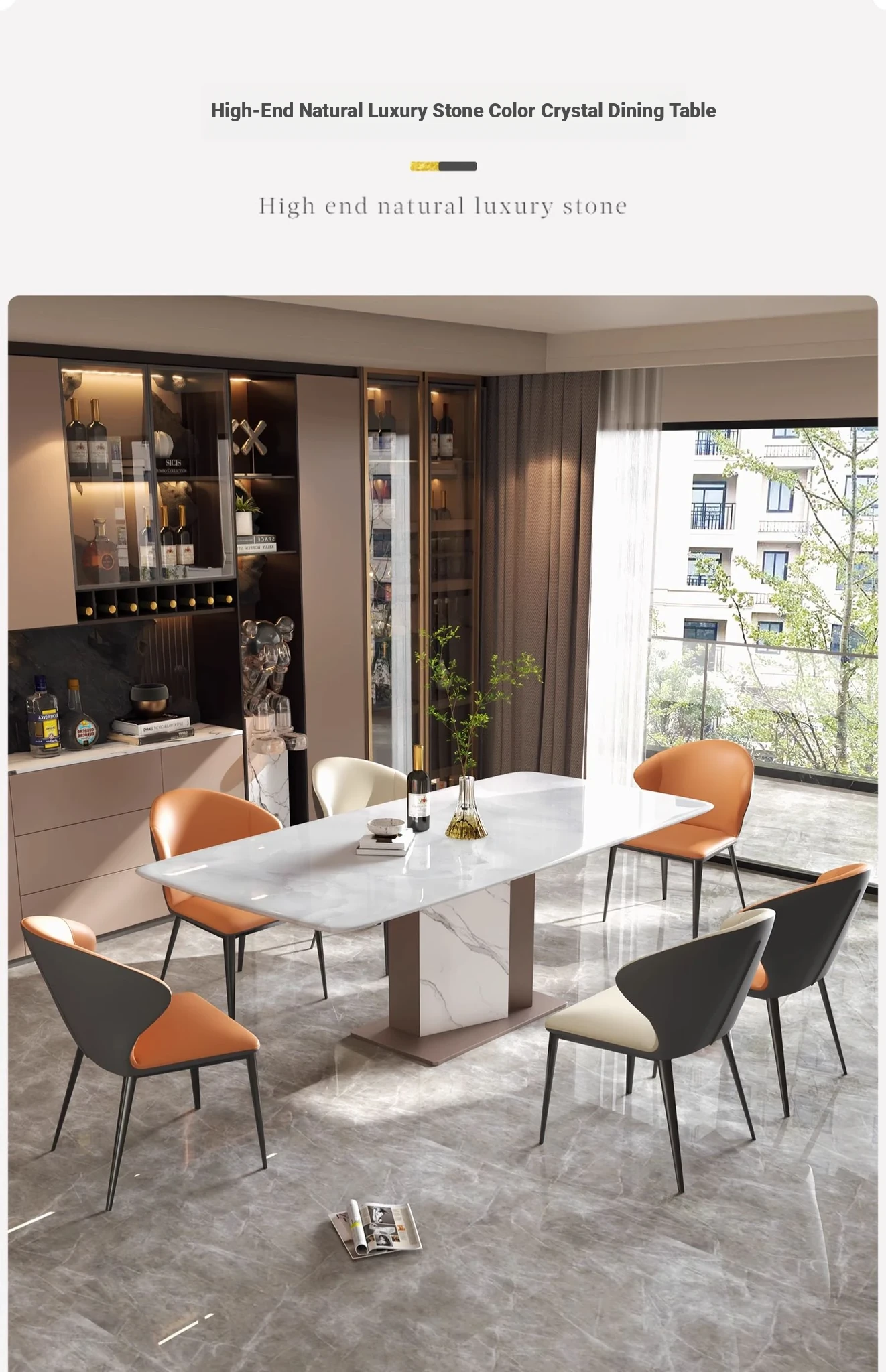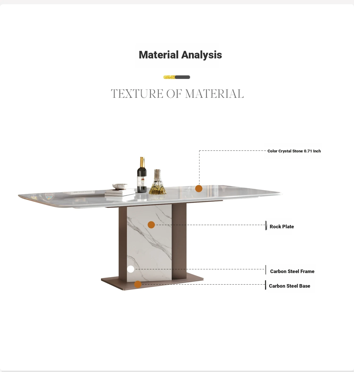 [Luxury Stone-Natural Color Crystal Stone] 70.87in Single Dining Table
