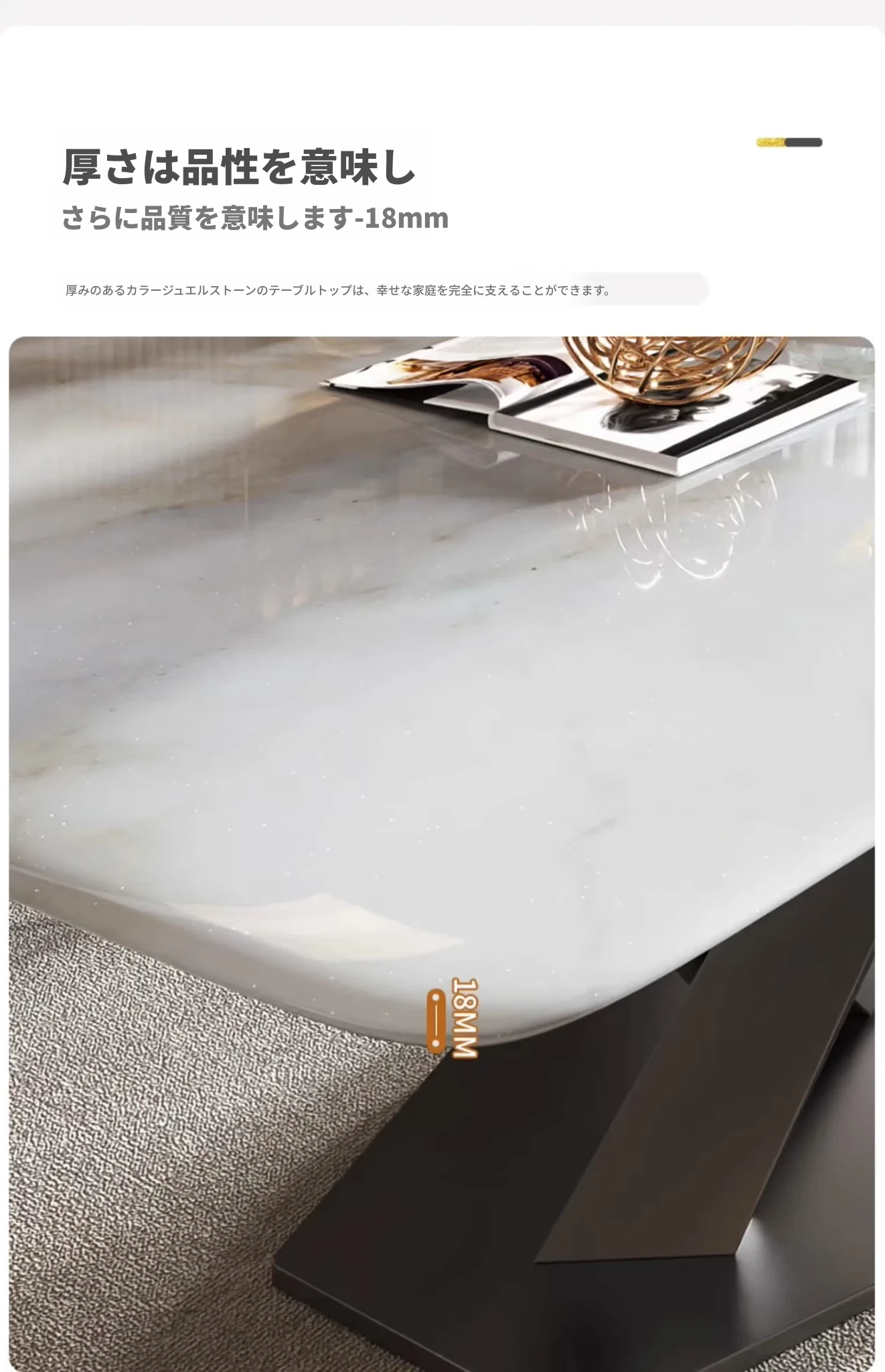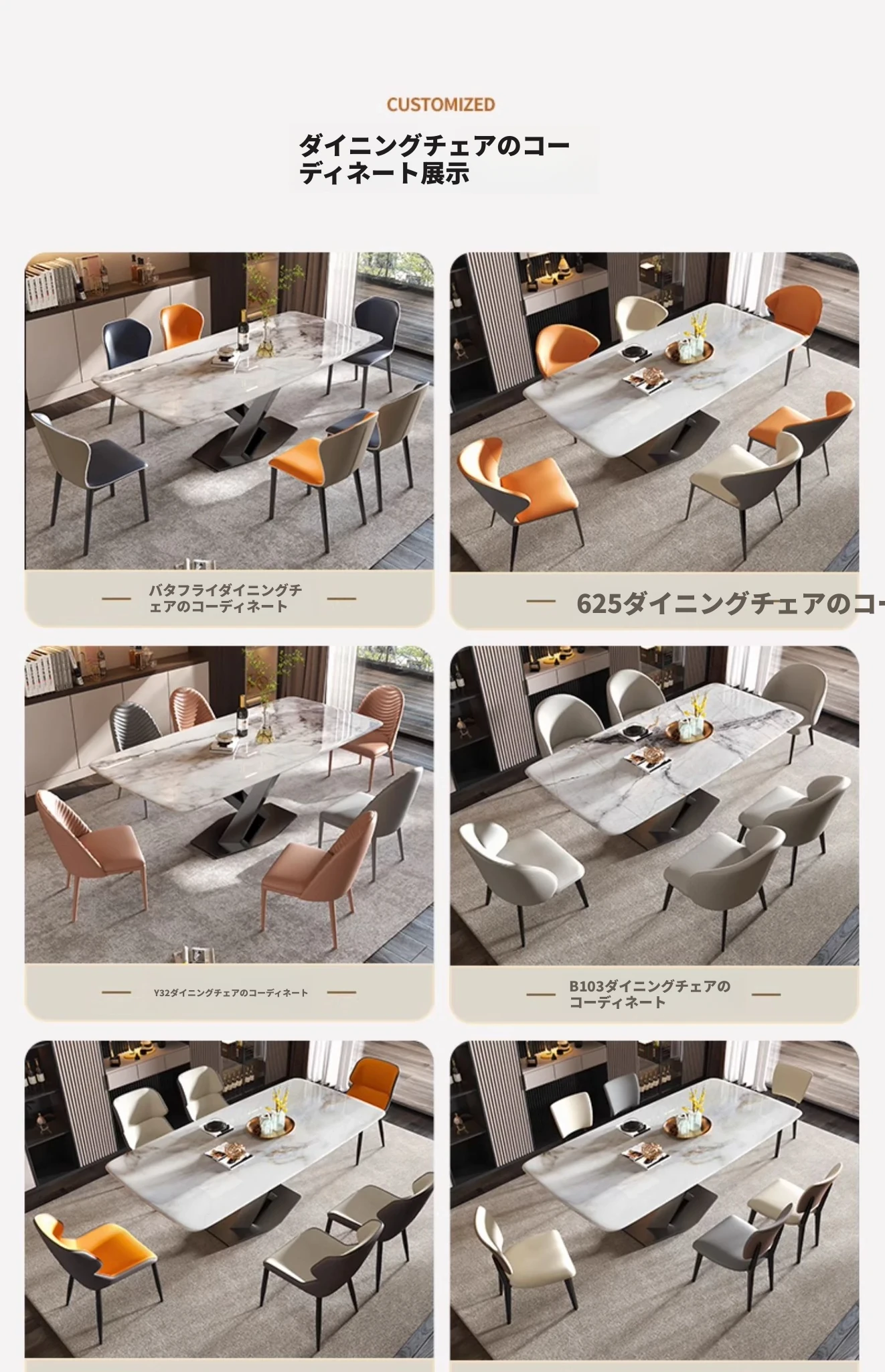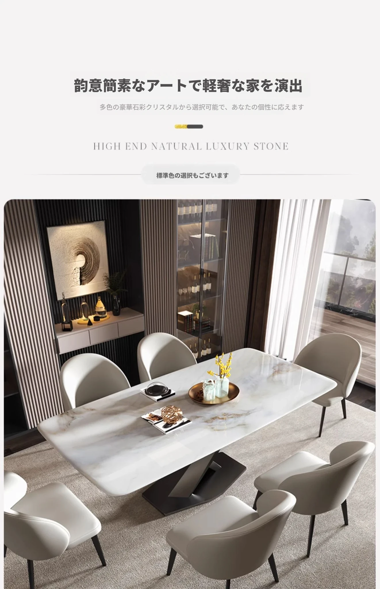 高級感あふれる軽奢大理石ダイニングテーブル&チェアセット!天然の彩色クリスタルストーンを使用した長方形の美しいテーブル。微晶石の魅力で、食事の時間を特別なひとときに。