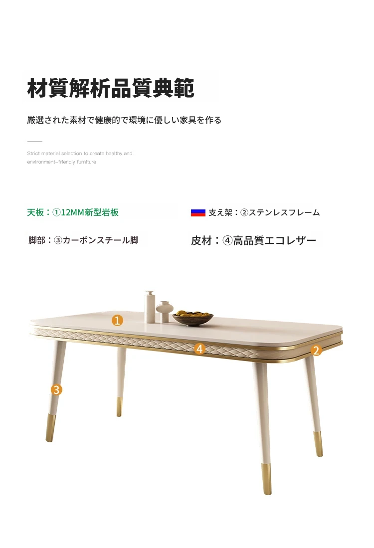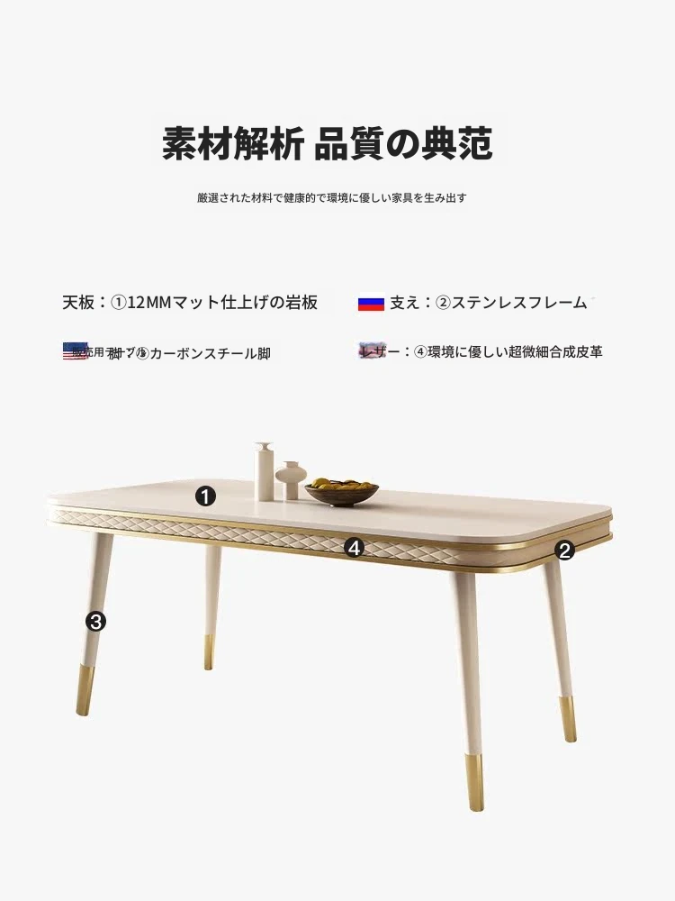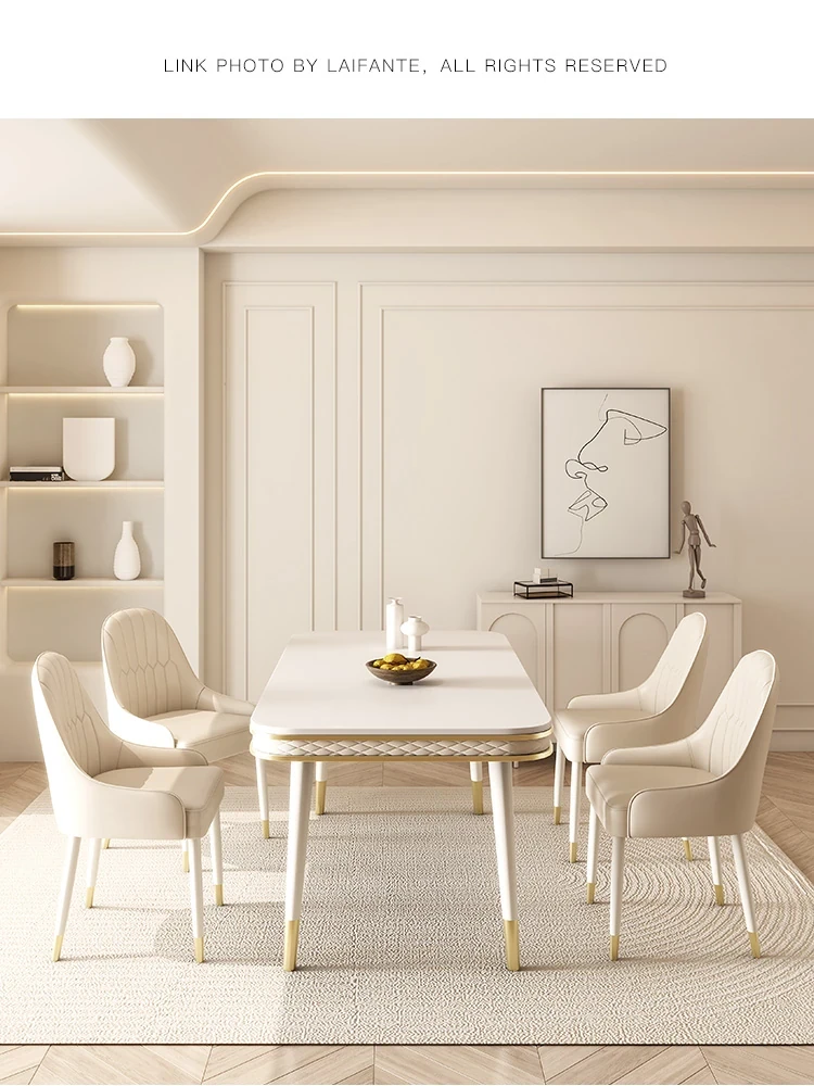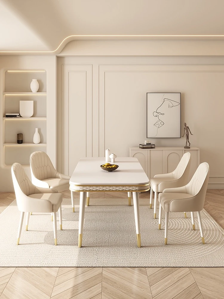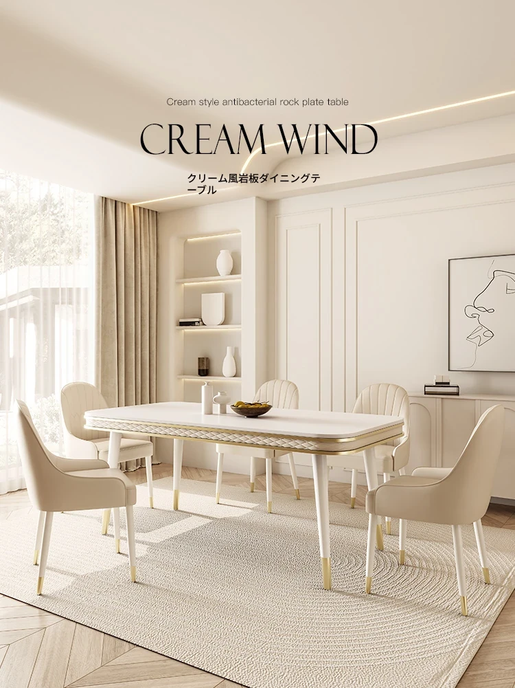 現代的な軽奢スタイルの岩板ダイニングテーブルセット - シンプルでおしゃれな小型リビング向け、人気のフレンチクリーム風デザイン。お家でくつろげる素敵な食卓を演出します!