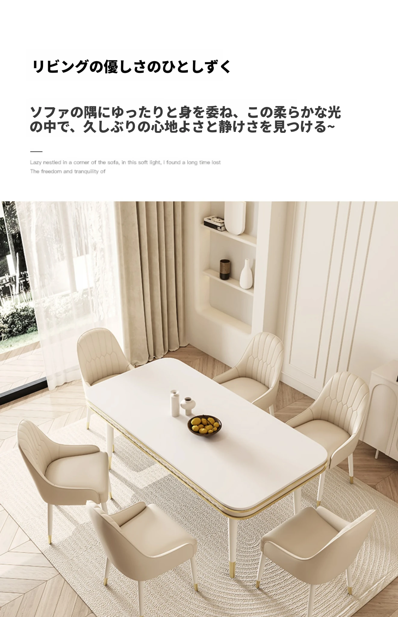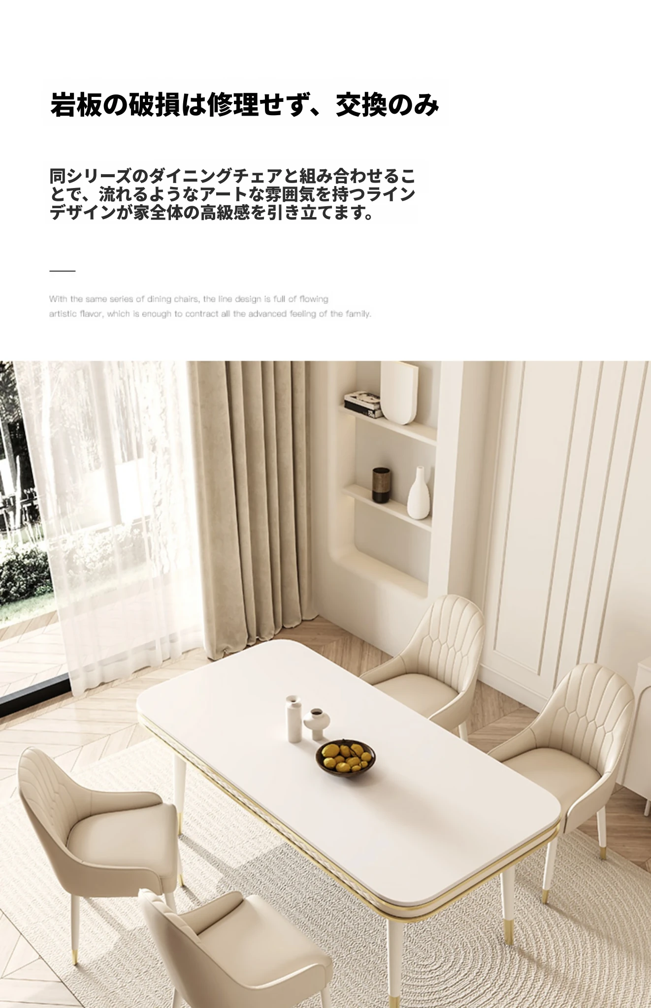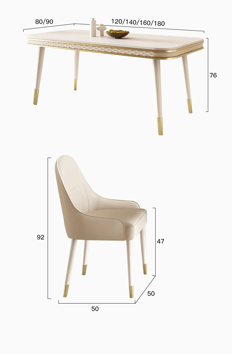 現代的な軽奢スタイルの岩板ダイニングテーブルセット - シンプルでおしゃれな小型リビング向け、人気のフレンチクリーム風デザイン。お家でくつろげる素敵な食卓を演出します!